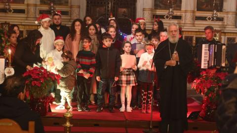 Τα παιδιά των Κατηχητικών, υπό την καθοδήγηση του Κατηχητού τους και Προϊσταμένου του Ναού Αρχιμ. Βενέδικτου Φραγκογιάννη , και των Κατηχητών- βοηθών του, παρουσίασαν διδακτικά δρώμενα, Χριστουγεννιάτικα ποιήματα και τραγούδια, με συνοδεία αρμονίου και ακορντεόν.