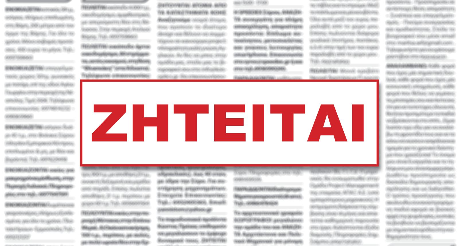 Ζητείται εργάτης για μεταφορική εταιρεία, με δίπλωμα αυτοκινήτου. Πληροφορίες στο τηλέφωνο: 6977047591