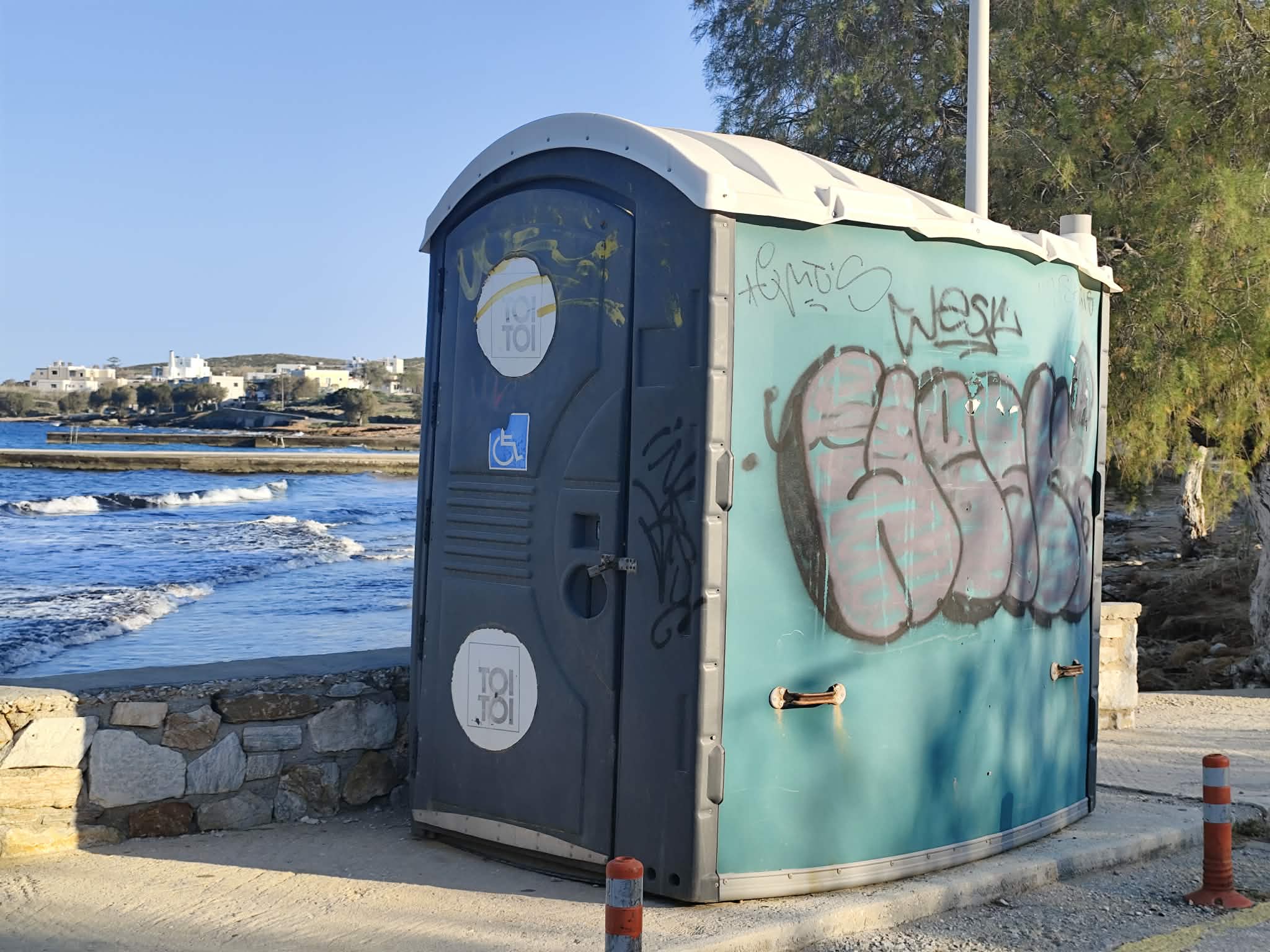 Τέλος, χρήσιμο θα είναι να τοποθετηθεί μία νέα ξύλινη επιγραφή που να προσδιορίζει πως πρόκειται για δημοτικές τουαλέτες στην παραλία της Αζολίμνου.