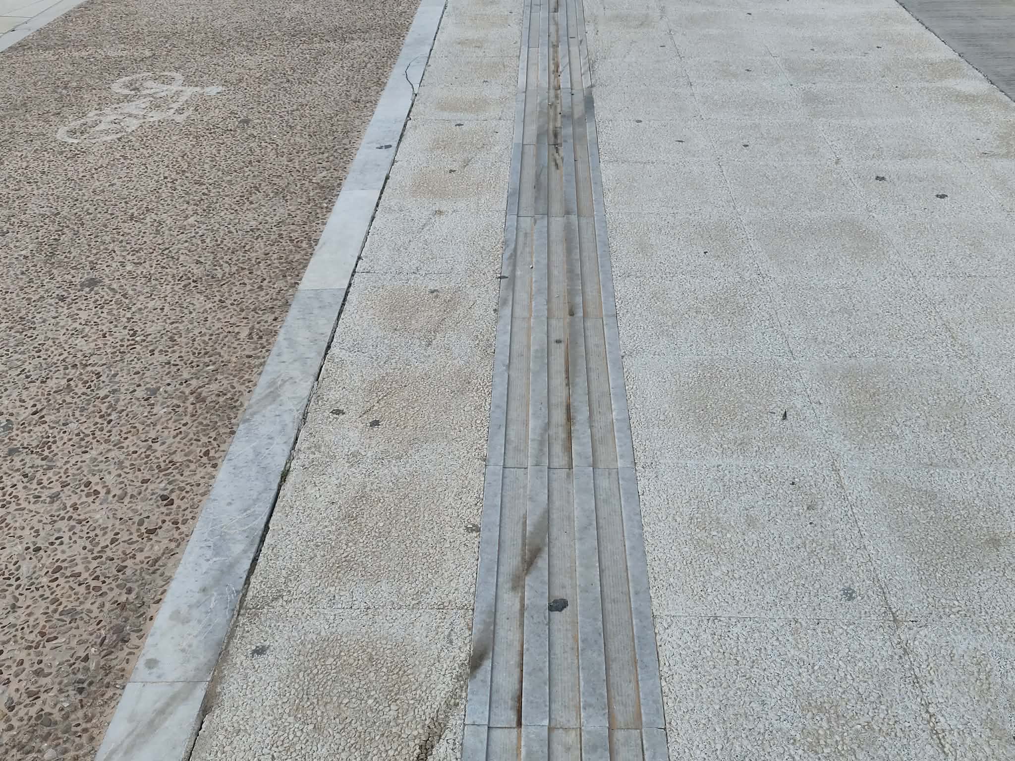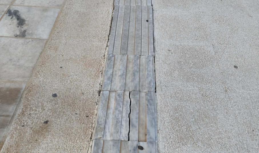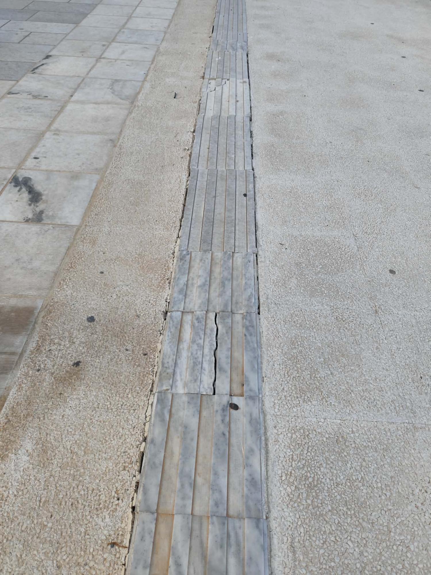 Σοβαρές φθορές φέρουν οι οδηγοί όδευσης τυφλών στην παραλιακή ζώνη της Ερμούπολης και σε όλο το μήκος του πεζοδρομίου, καθώς από την τοποθέτησή τους και μετά, δεν έχει γίνει συντήρηση και αποκατάσταση, όπου χρειάζεται. Συγκεκριμένα, διαπιστώνονται αποκολλήσεις μαρμάρινων πλακών, καθώς επίσης σπασίματα σε βαθμό που μπορούν να “εγκλωβίσουν” ένα μπαστούνι συμπολίτη μας, ενώ επίσης, αρκετές εξ αυτώ