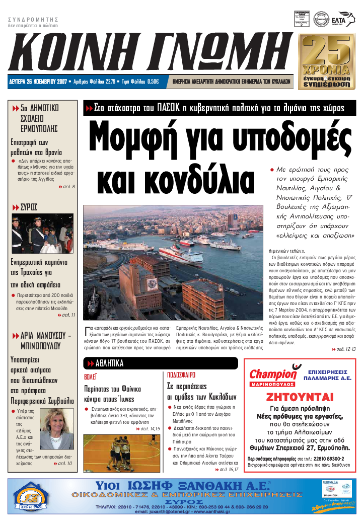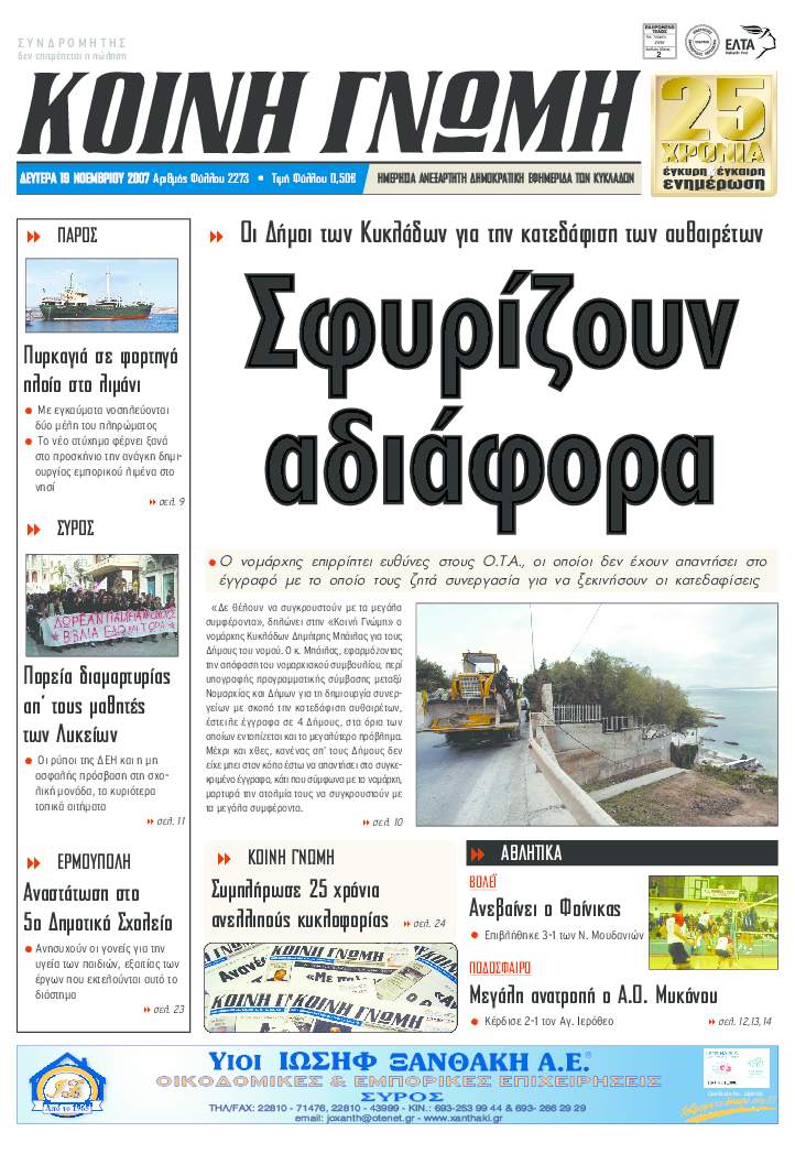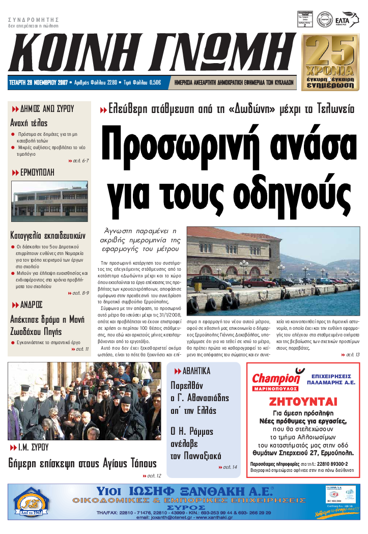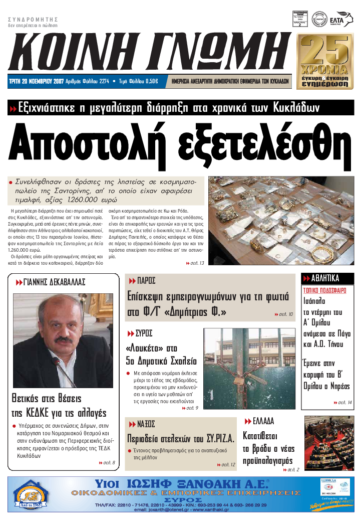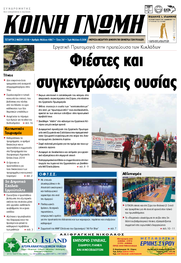 ΚΟΙΝΗ ΓΝΩΜΗ ΚΟΙΝΗ ΓΝΩΜΗ Ημερησια Εφημεριδα των Κυκλαδων