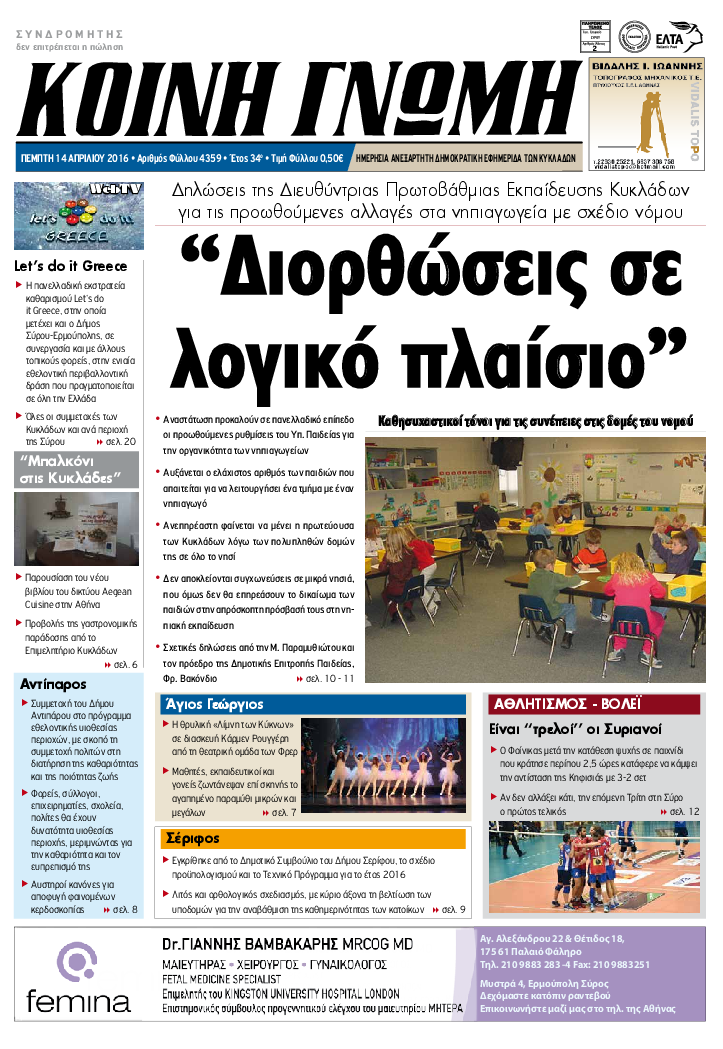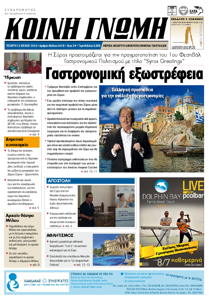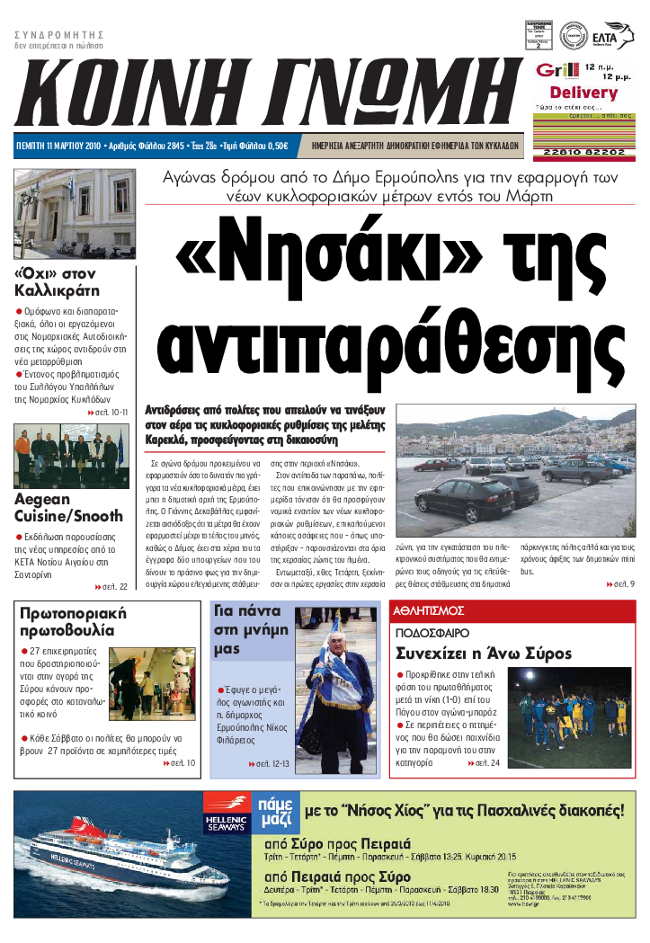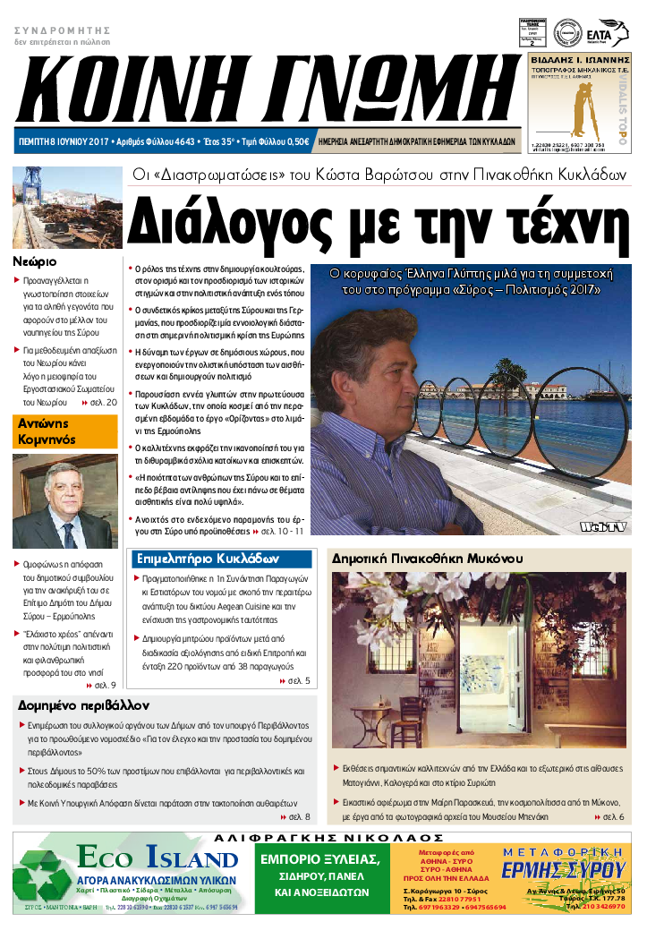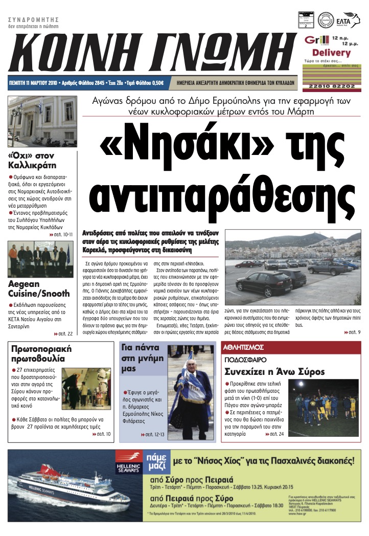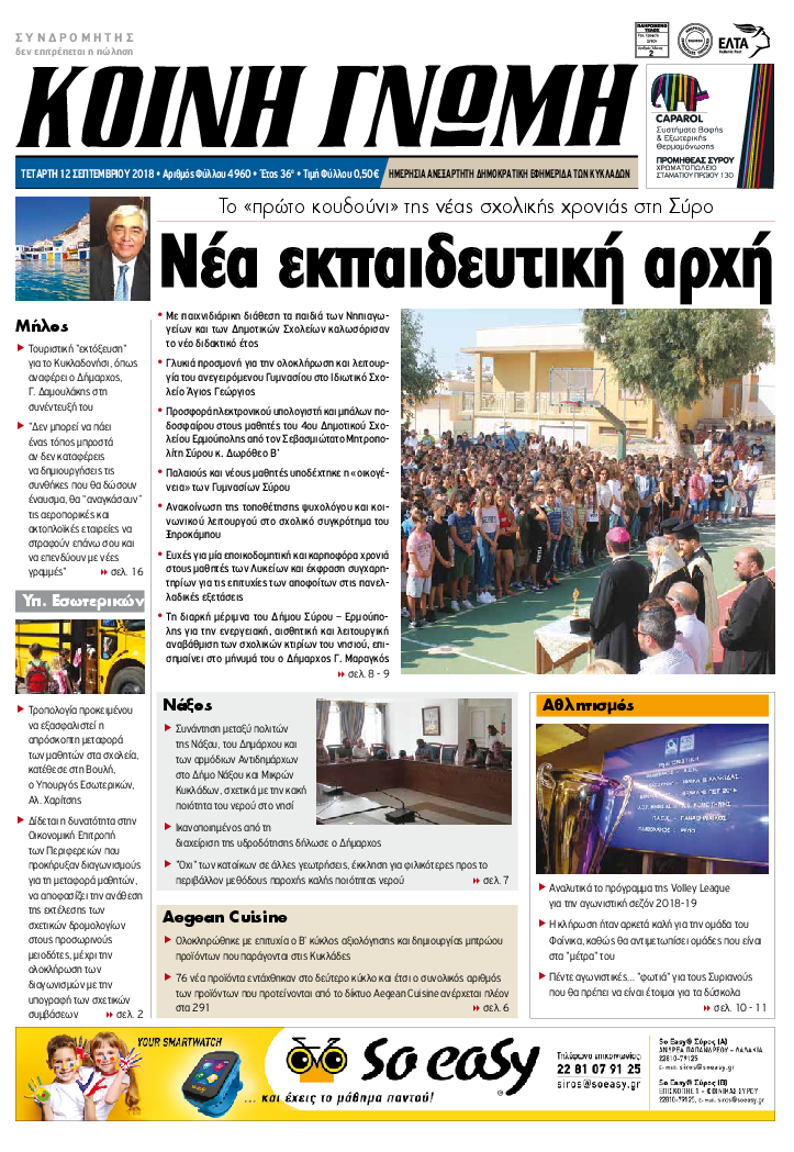 ΚΟΙΝΗ ΓΝΩΜΗ ΚΟΙΝΗ ΓΝΩΜΗ Ημερησια Εφημεριδα των Κυκλαδων