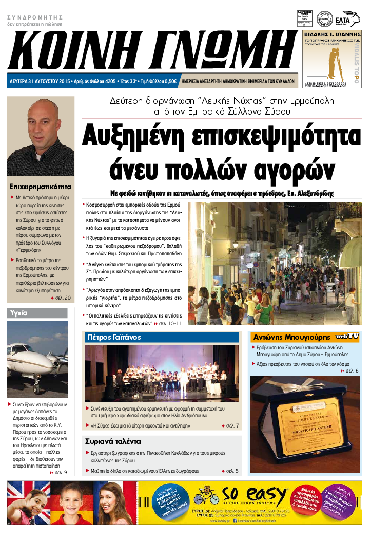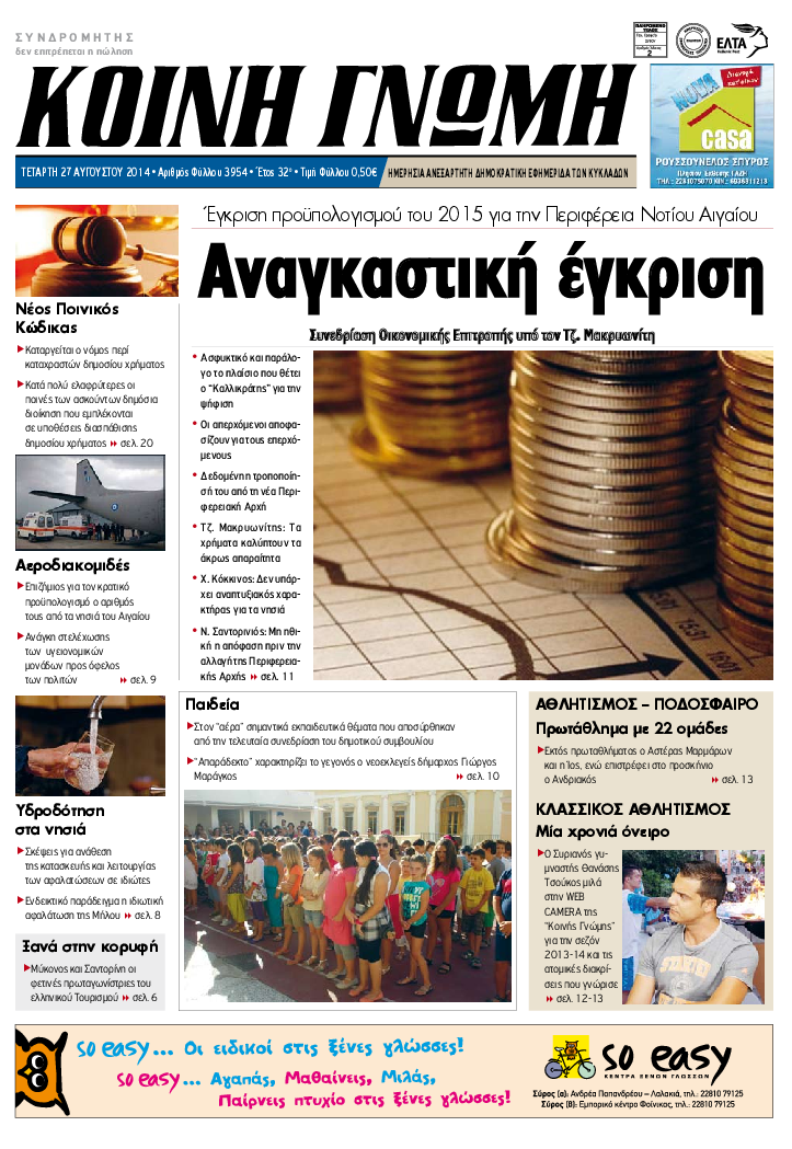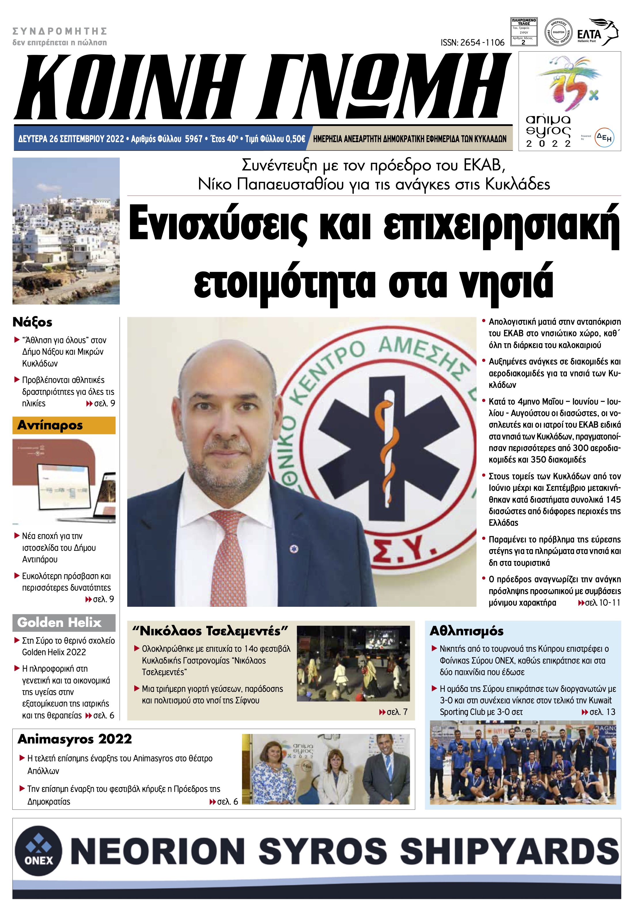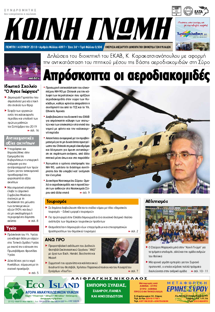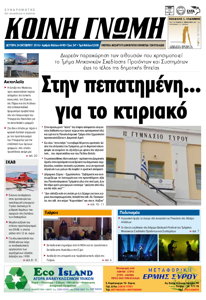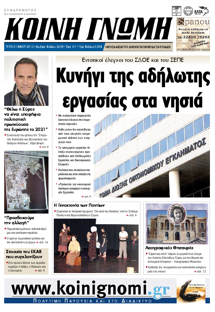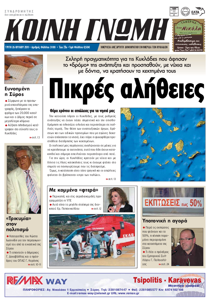 ΚΟΙΝΗ ΓΝΩΜΗ ΚΟΙΝΗ ΓΝΩΜΗ Ημερησια Εφημεριδα των Κυκλαδων