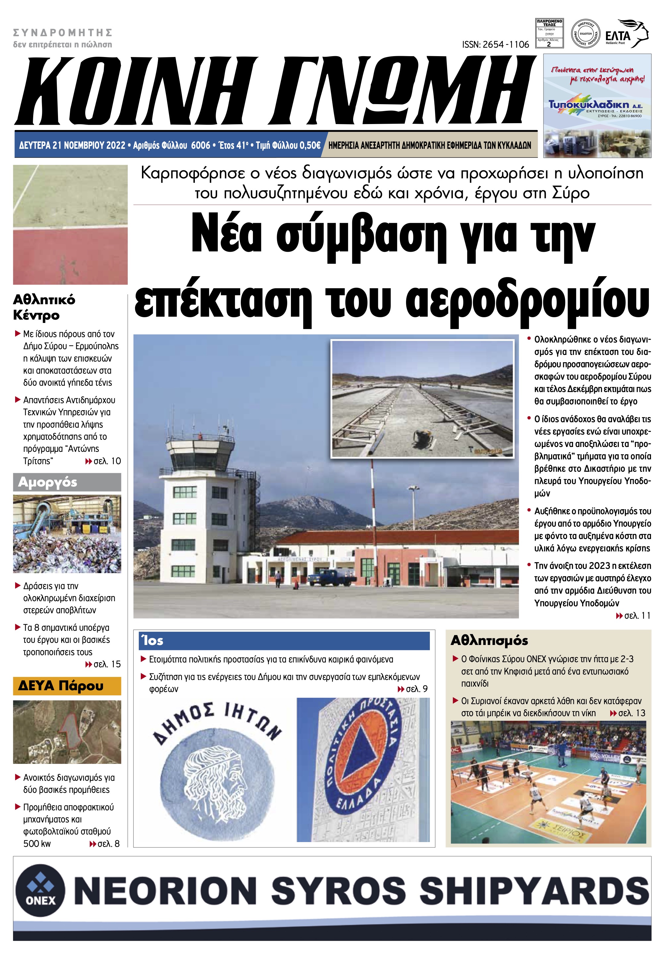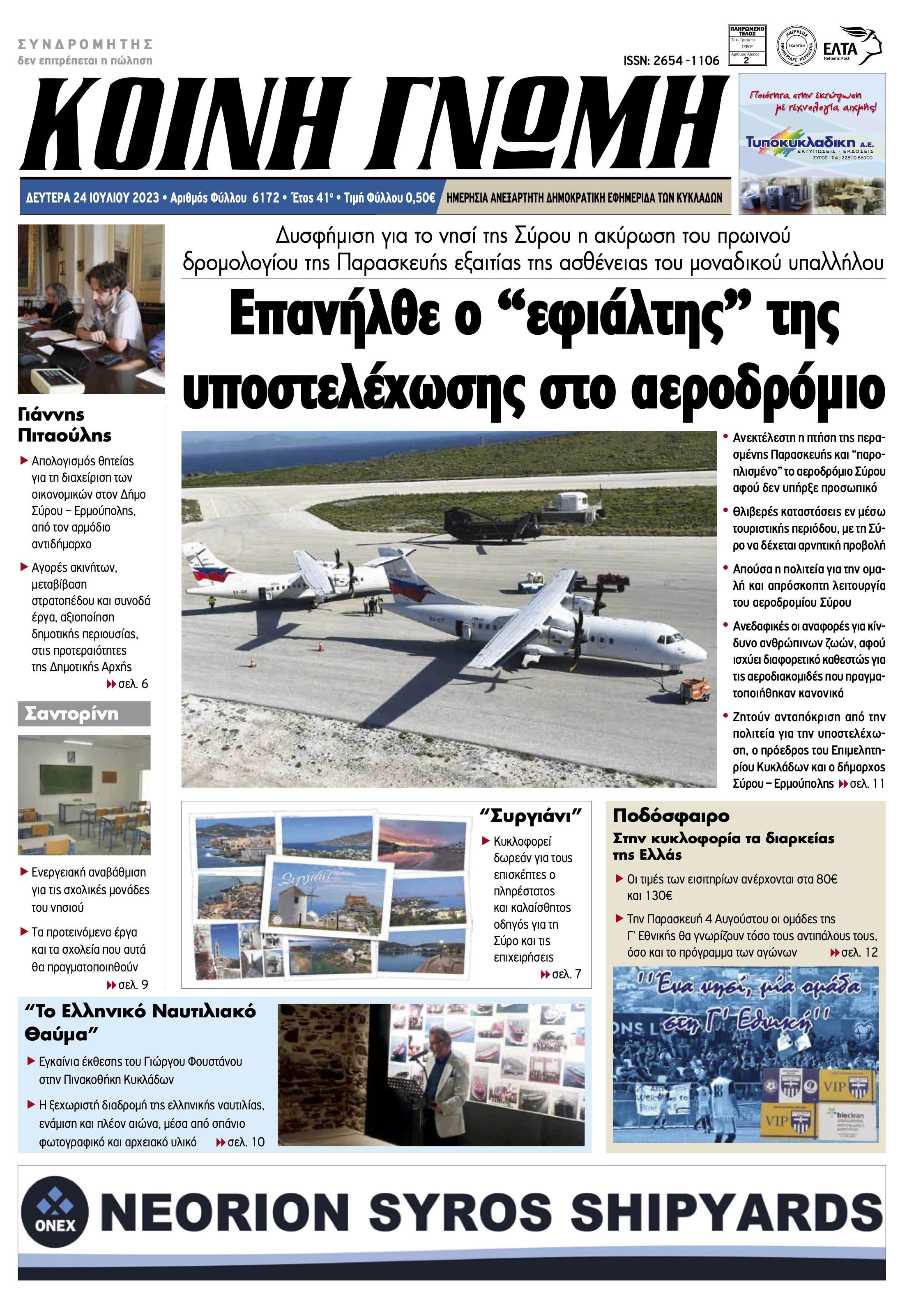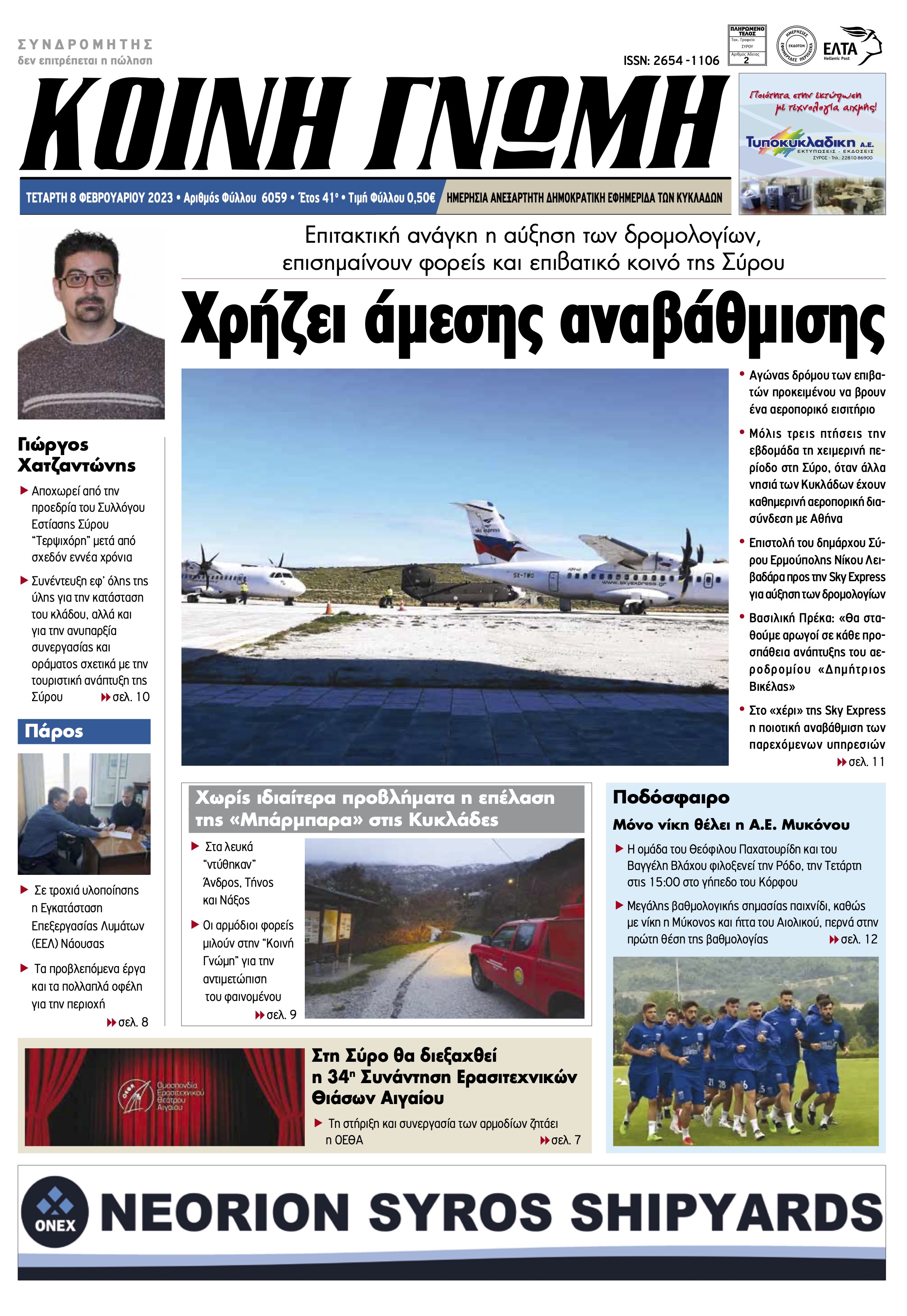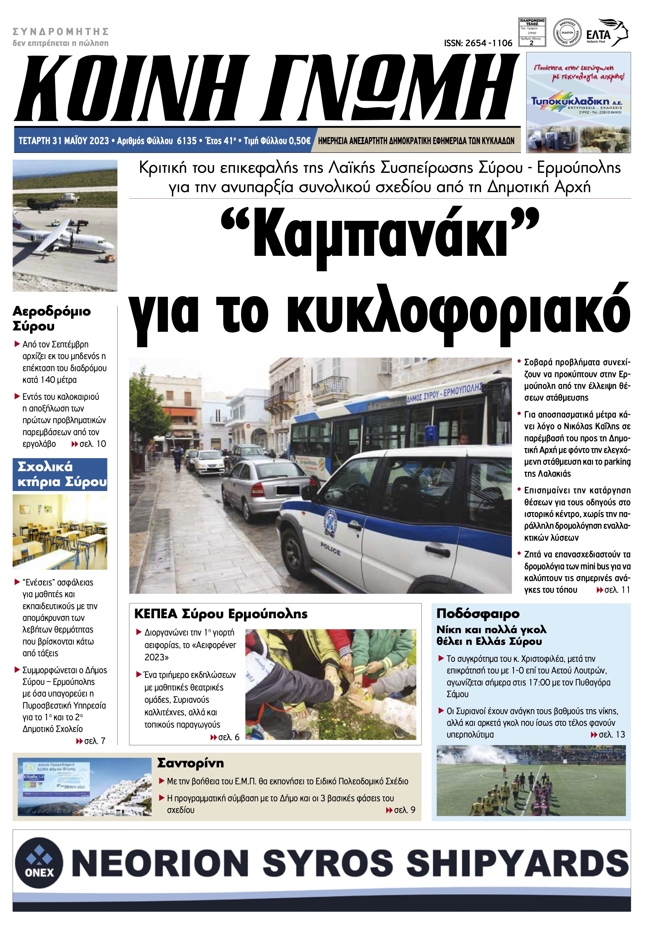 ΚΟΙΝΗ ΓΝΩΜΗ ΚΟΙΝΗ ΓΝΩΜΗ Ημερησια Εφημεριδα των Κυκλαδων