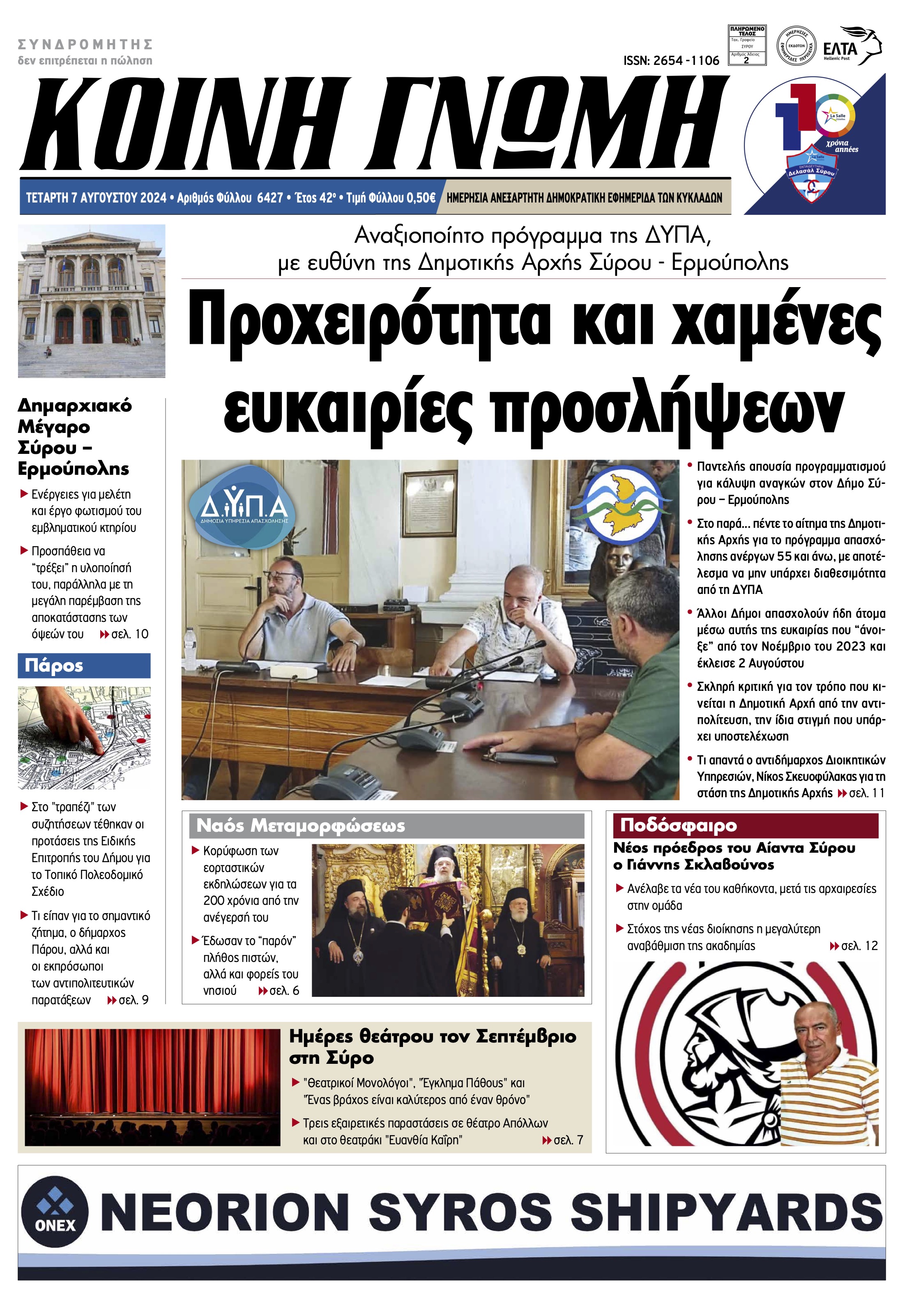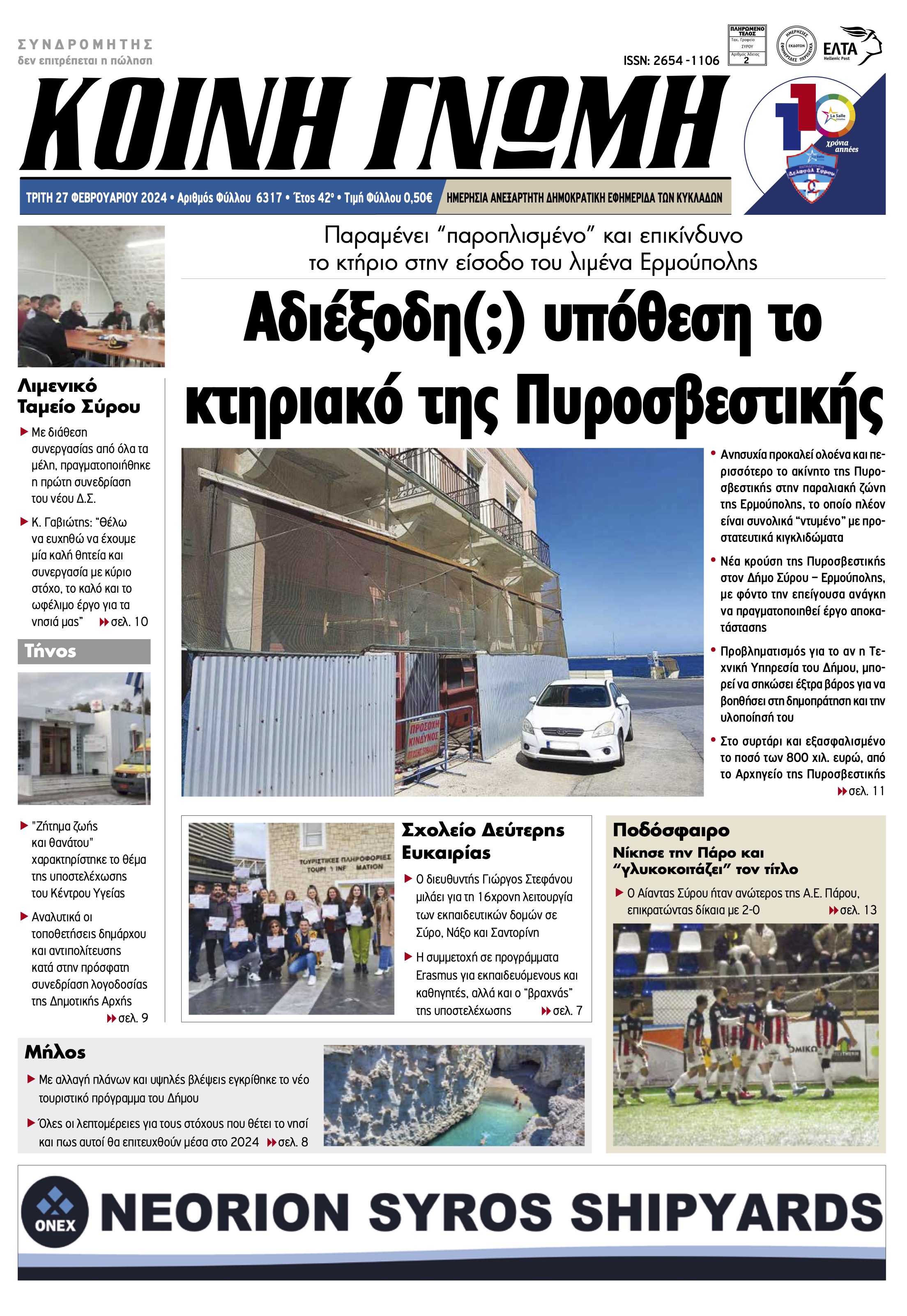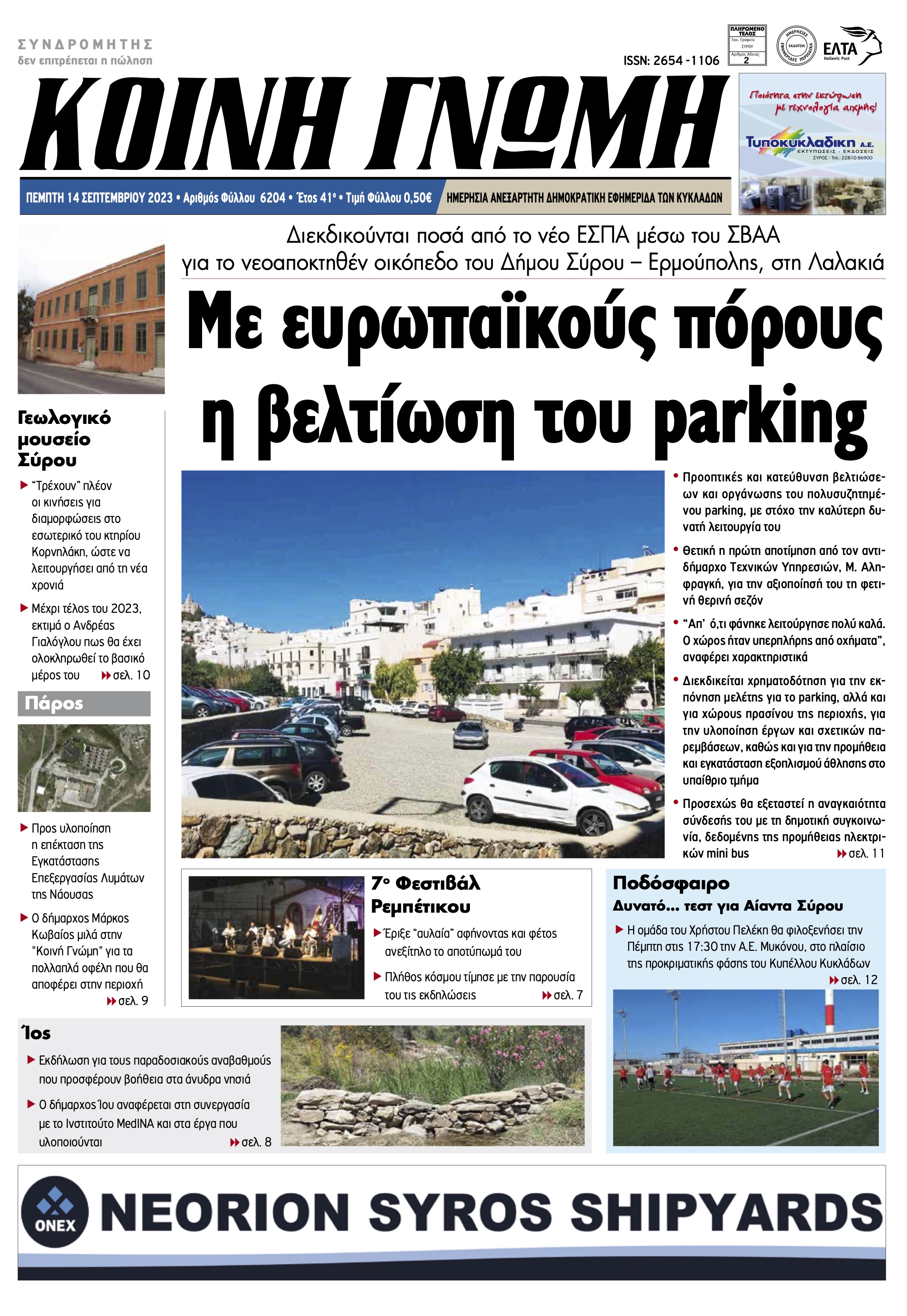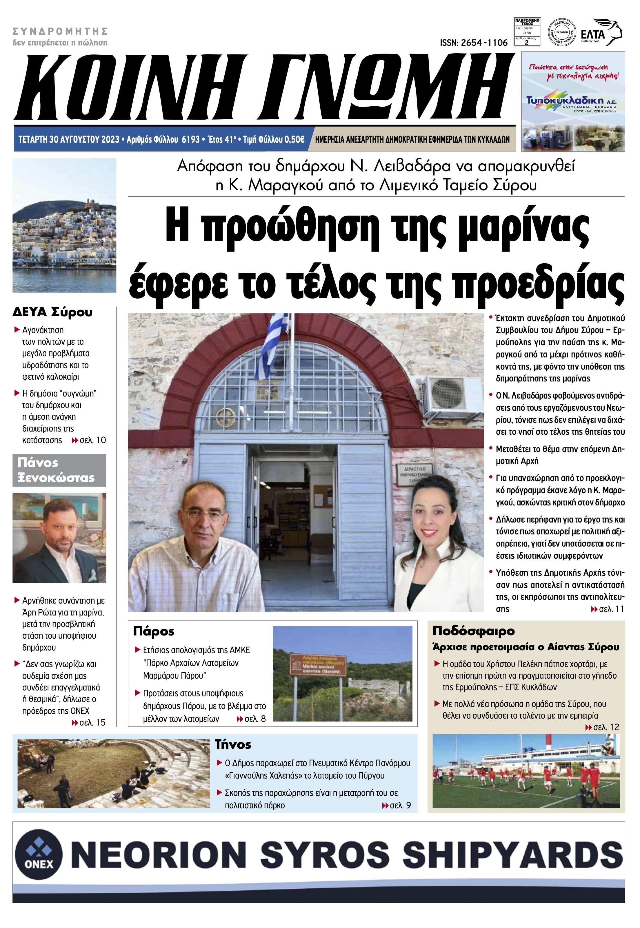 ΚΟΙΝΗ ΓΝΩΜΗ ΚΟΙΝΗ ΓΝΩΜΗ Ημερησια Εφημεριδα των Κυκλαδων