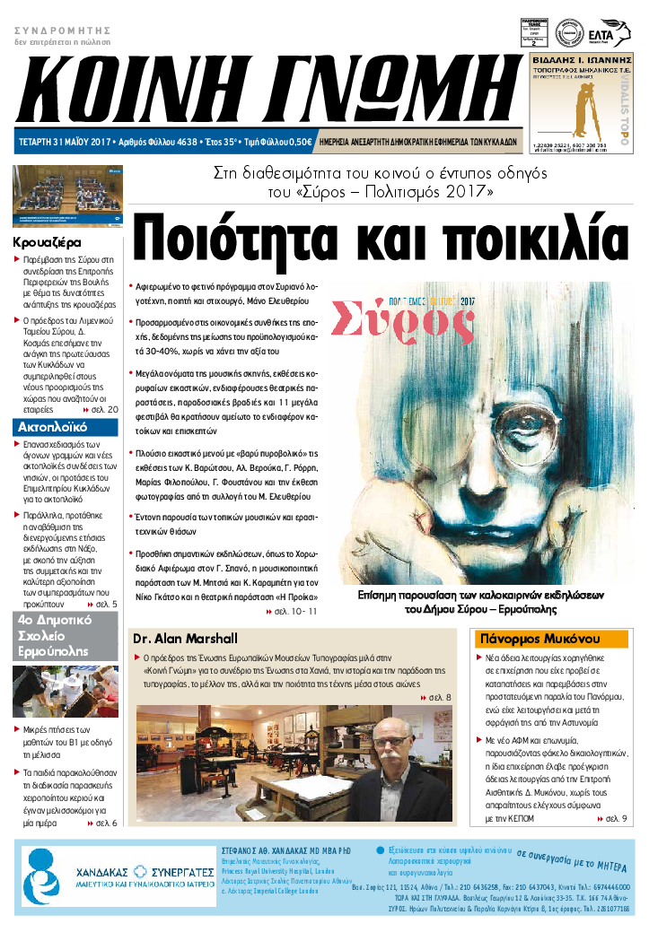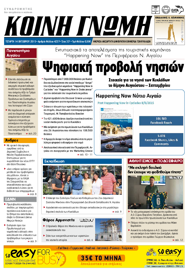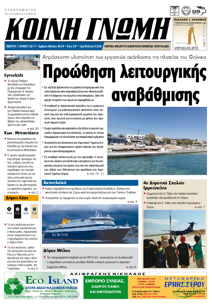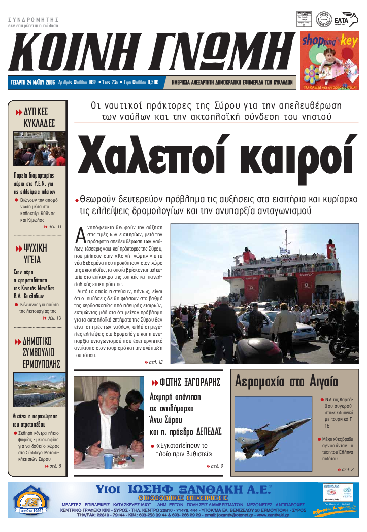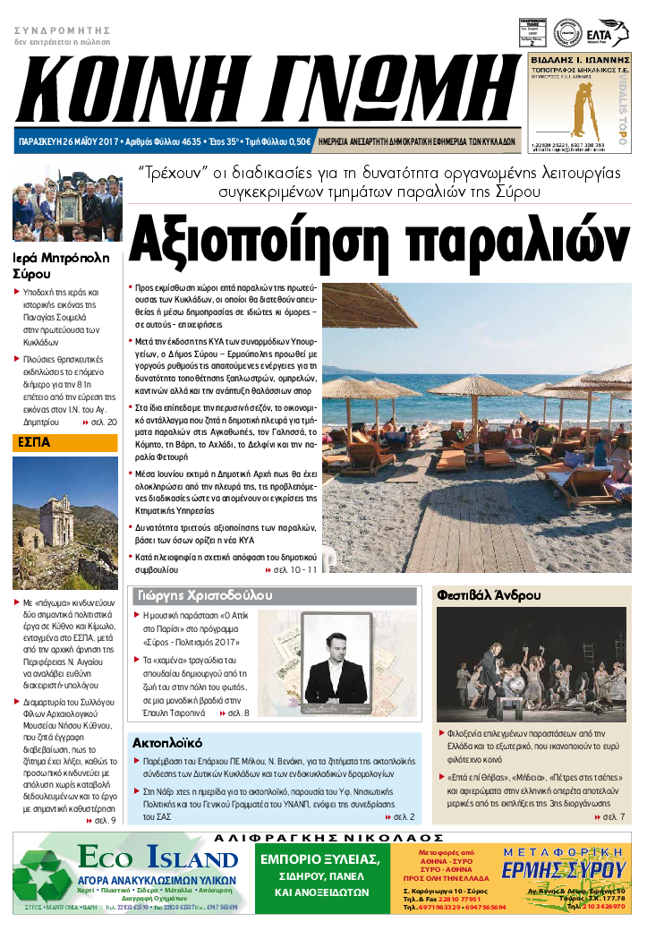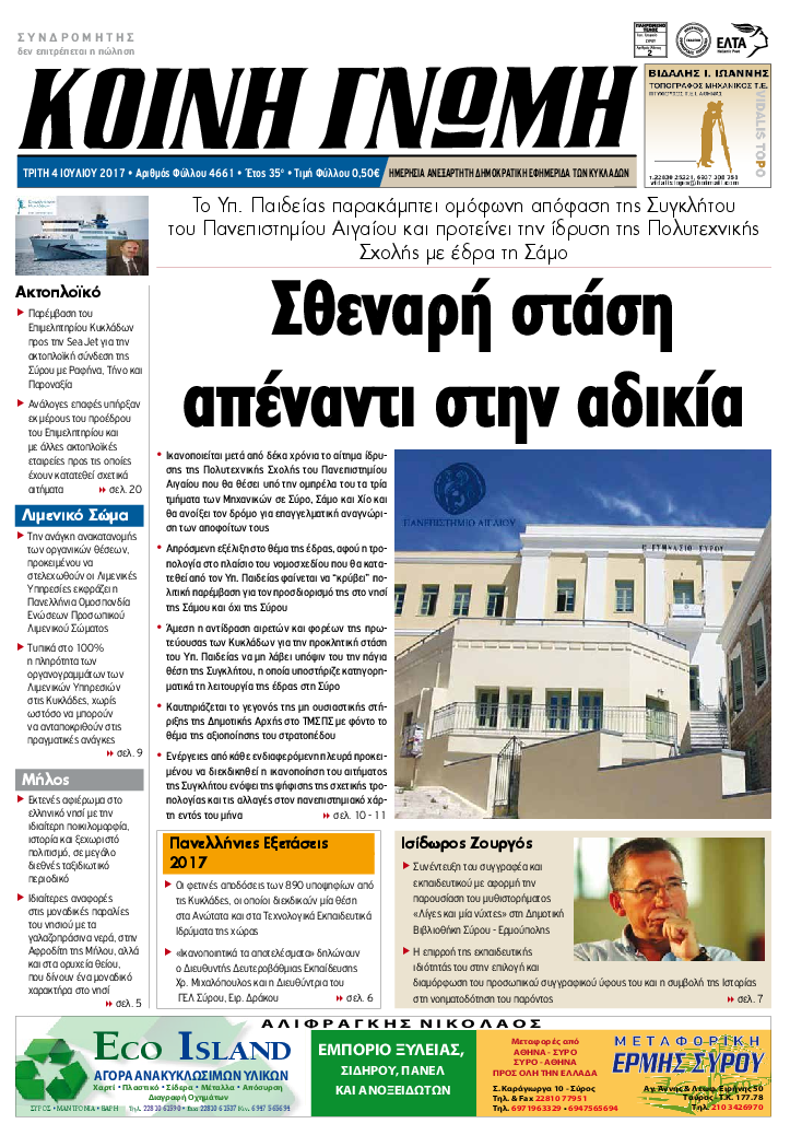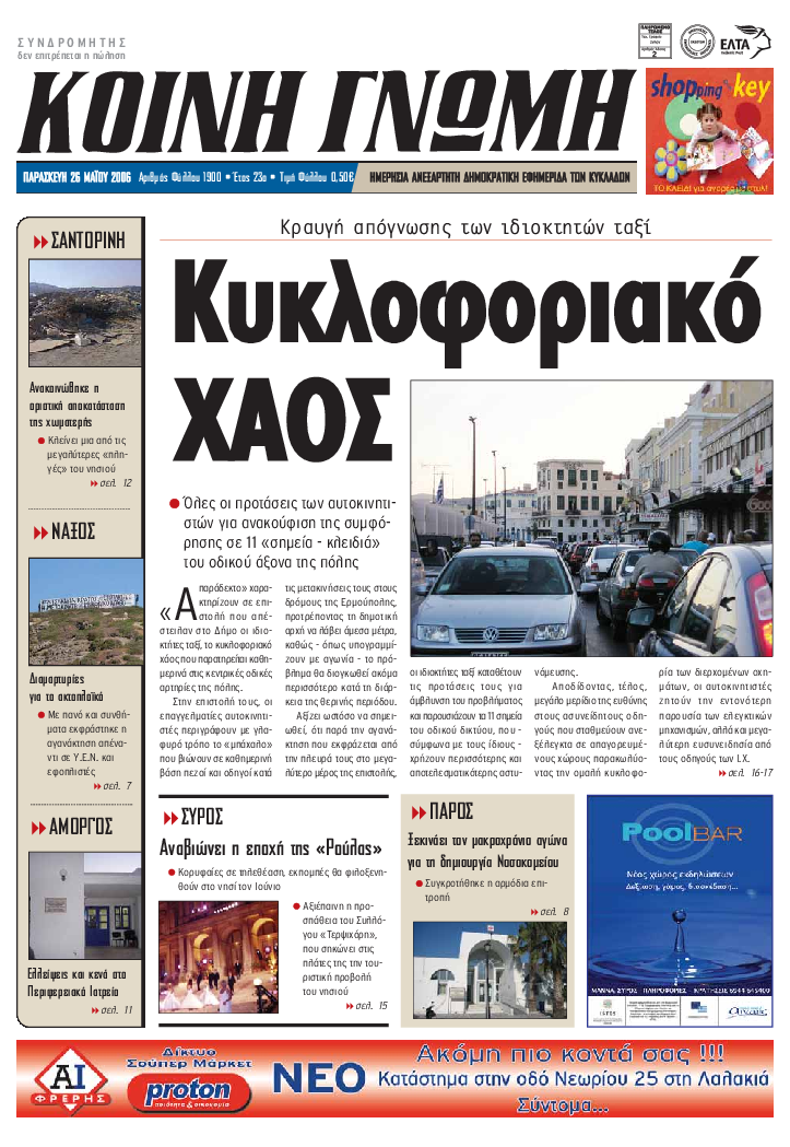 ΚΟΙΝΗ ΓΝΩΜΗ ΚΟΙΝΗ ΓΝΩΜΗ Ημερησια Εφημεριδα των Κυκλαδων
