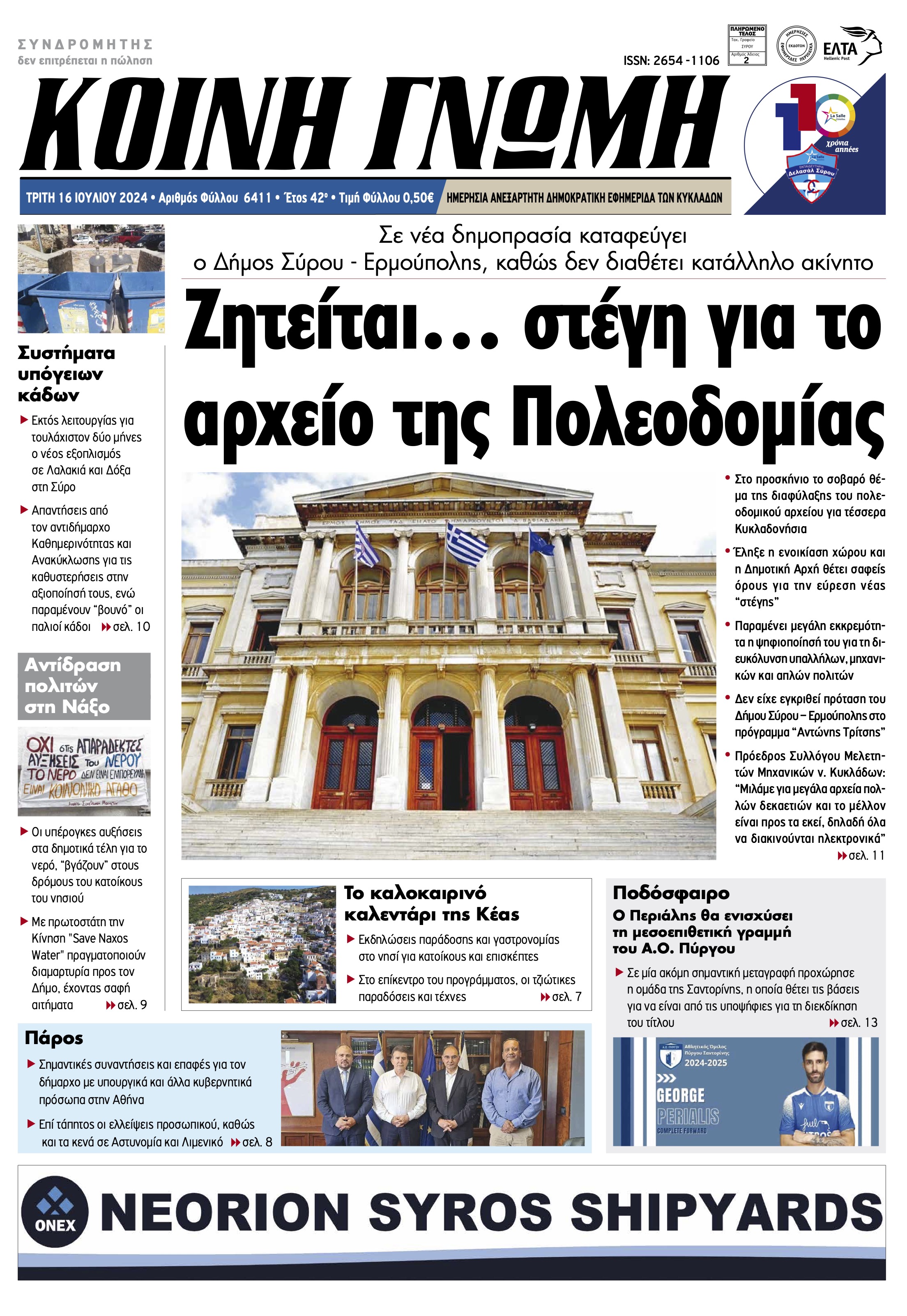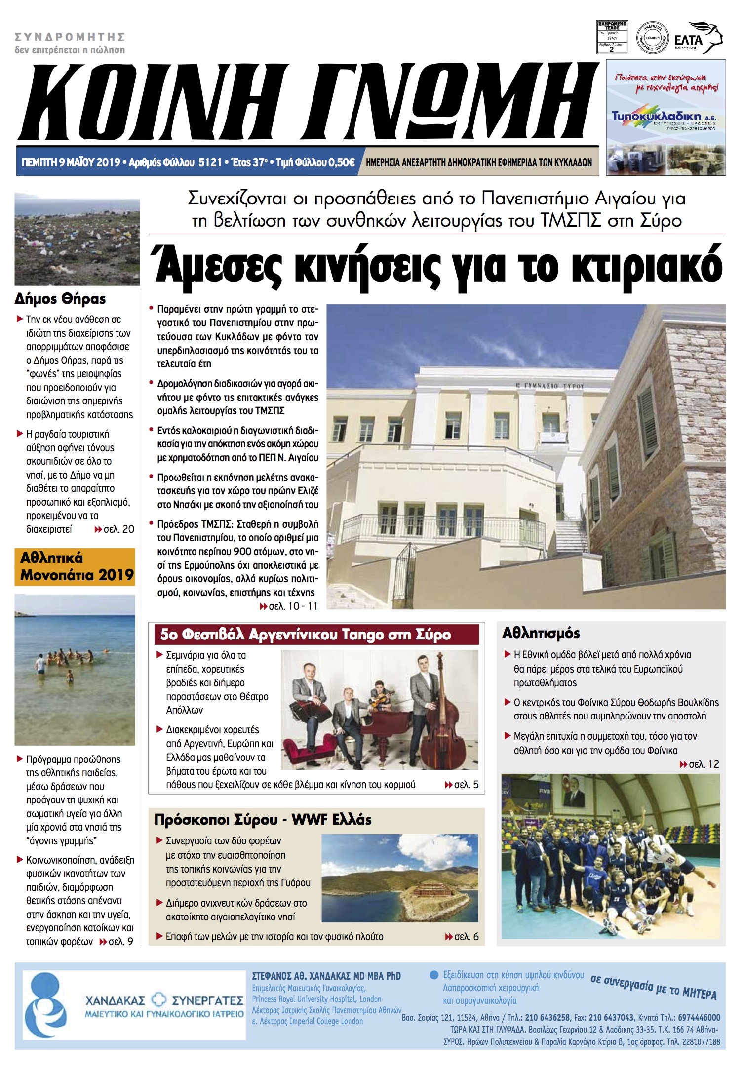 ΚΟΙΝΗ ΓΝΩΜΗ ΚΟΙΝΗ ΓΝΩΜΗ Ημερησια Εφημεριδα των Κυκλαδων