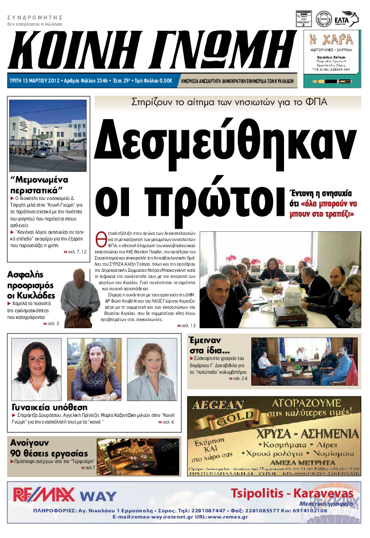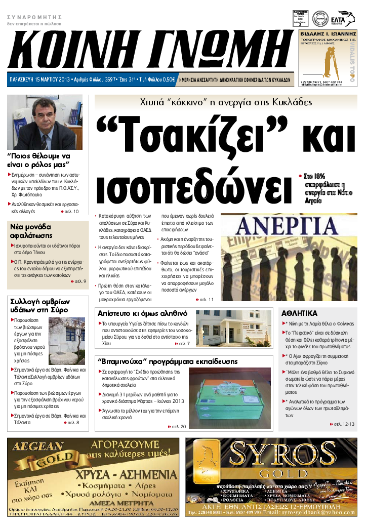 ΚΟΙΝΗ ΓΝΩΜΗ ΚΟΙΝΗ ΓΝΩΜΗ Ημερησια Εφημεριδα των Κυκλαδων