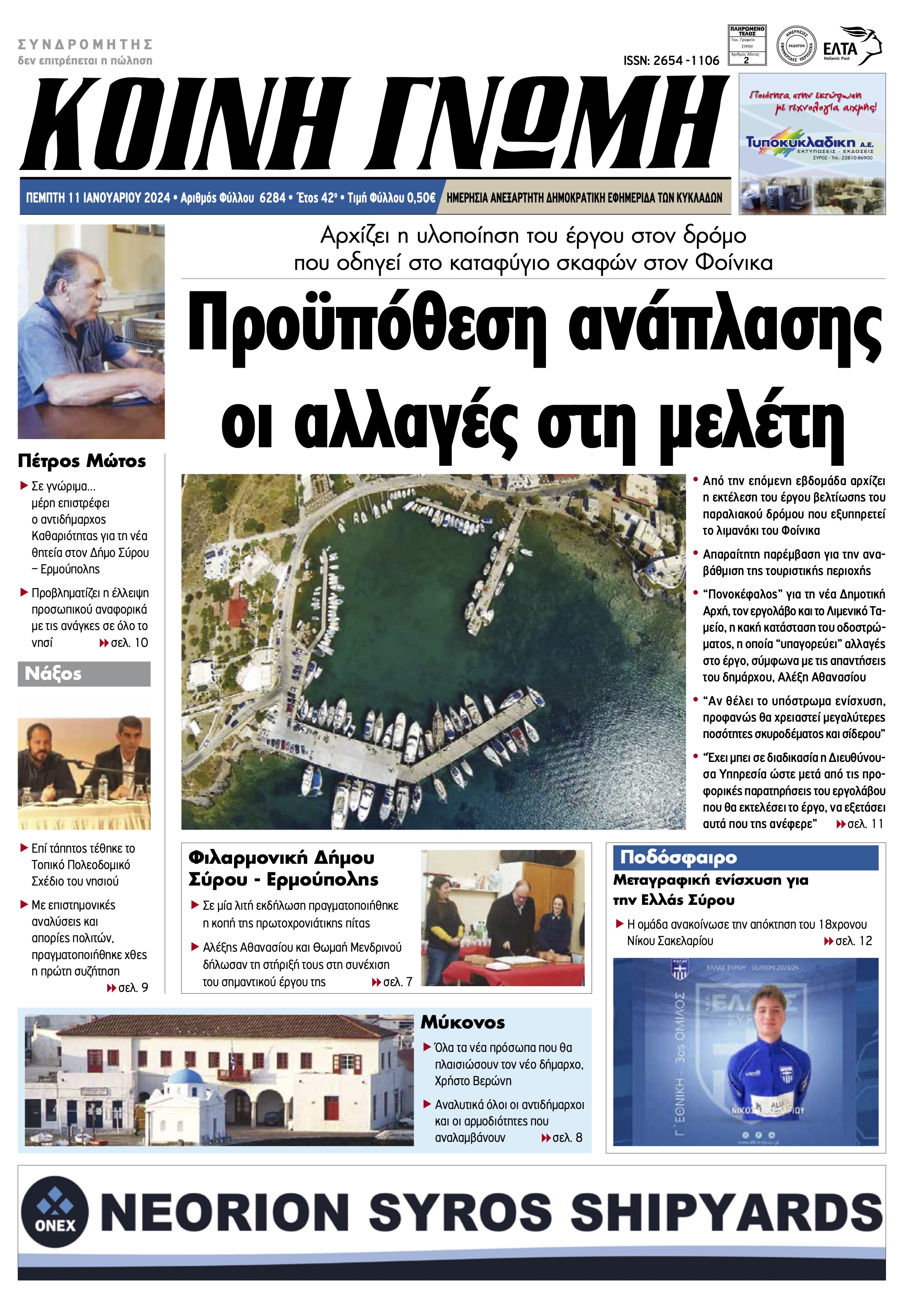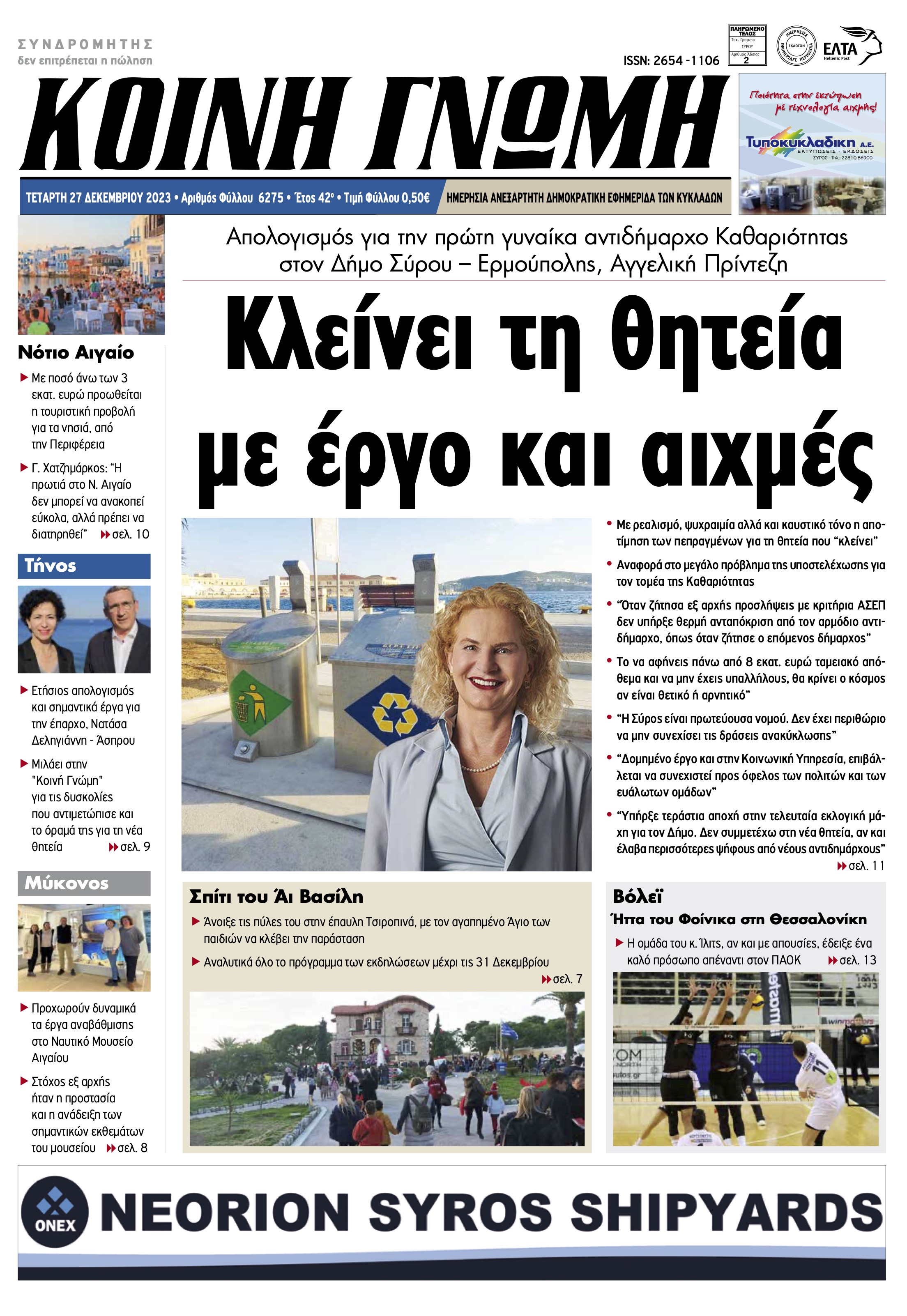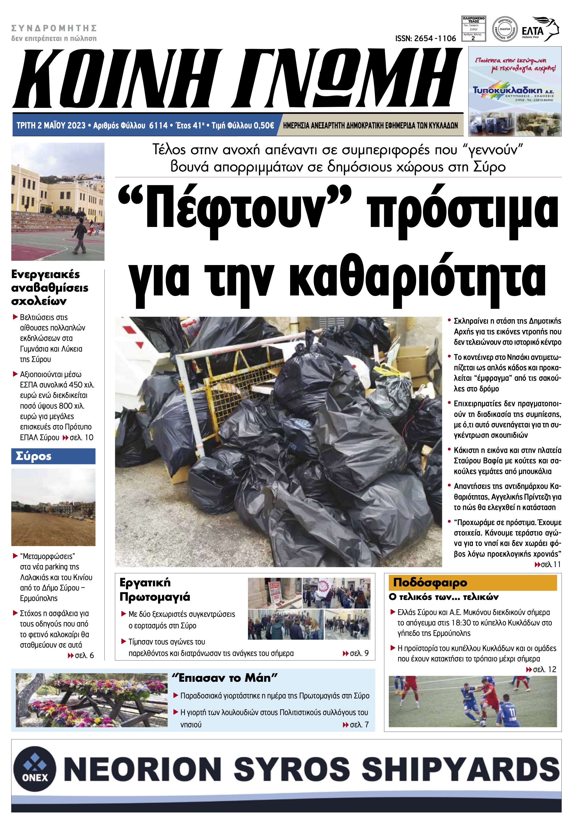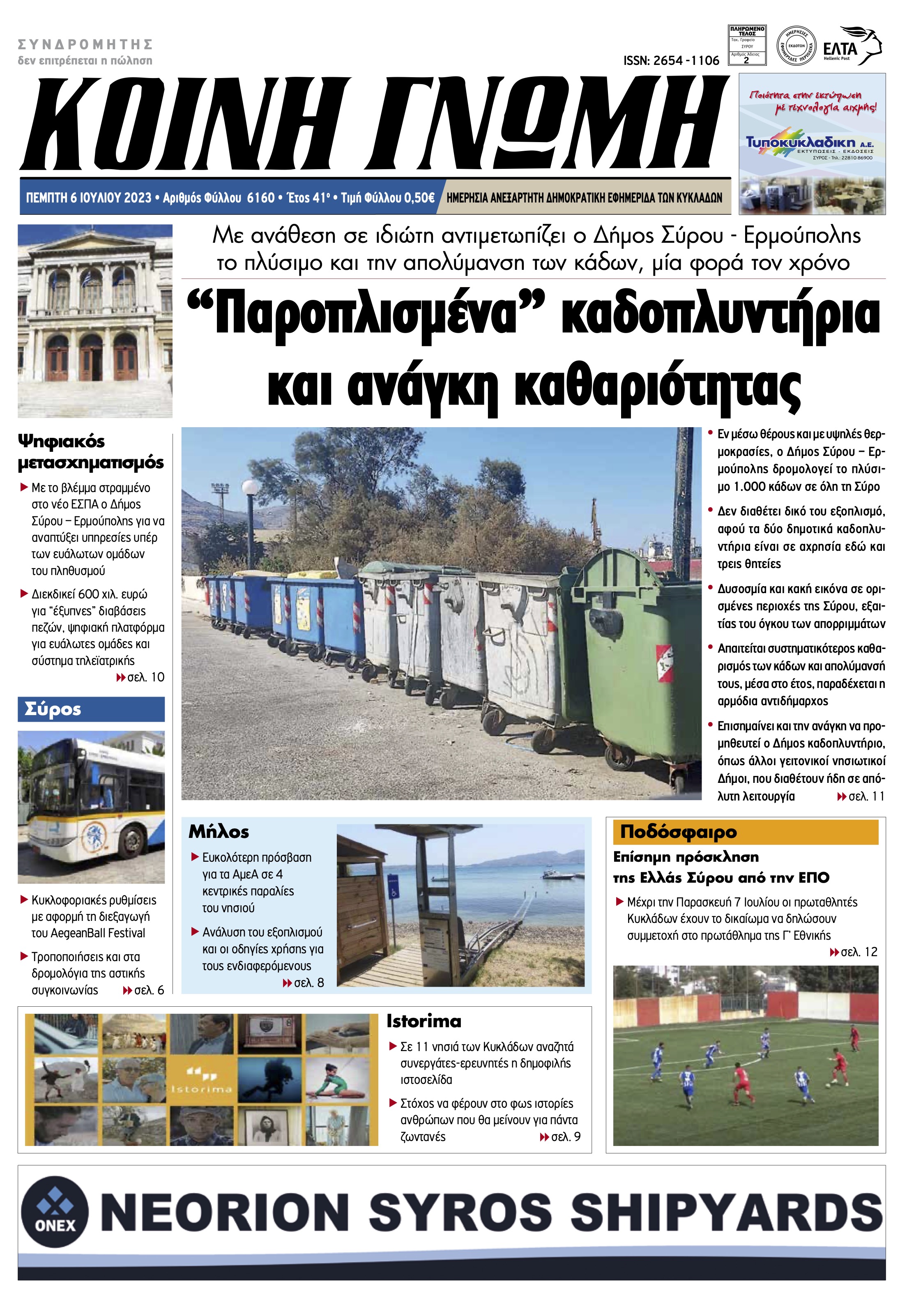 ΚΟΙΝΗ ΓΝΩΜΗ ΚΟΙΝΗ ΓΝΩΜΗ Ημερησια Εφημεριδα των Κυκλαδων