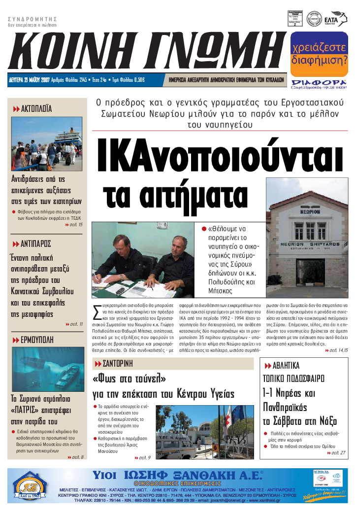 Ημερησια Εφημεριδα των Κυκλαδων