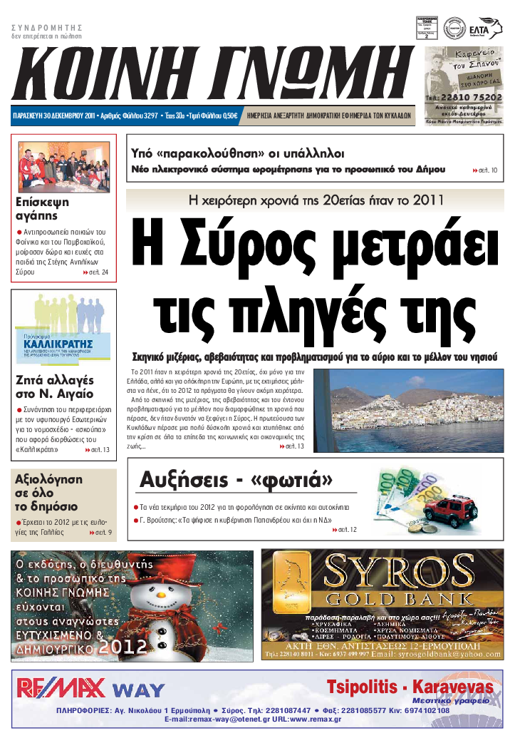 ΚΟΙΝΗ ΓΝΩΜΗ ΚΟΙΝΗ ΓΝΩΜΗ Ημερησια Εφημεριδα των Κυκλαδων