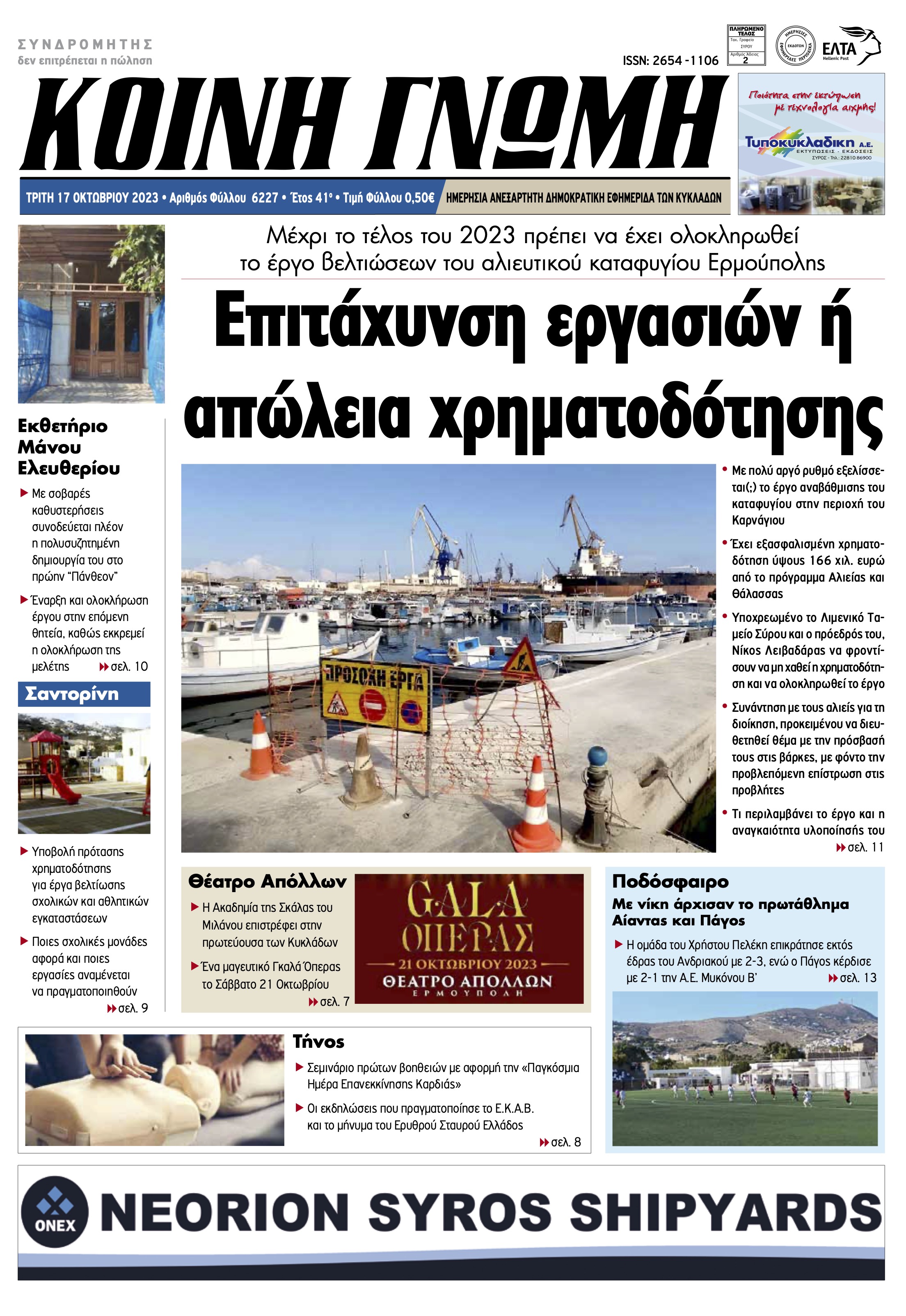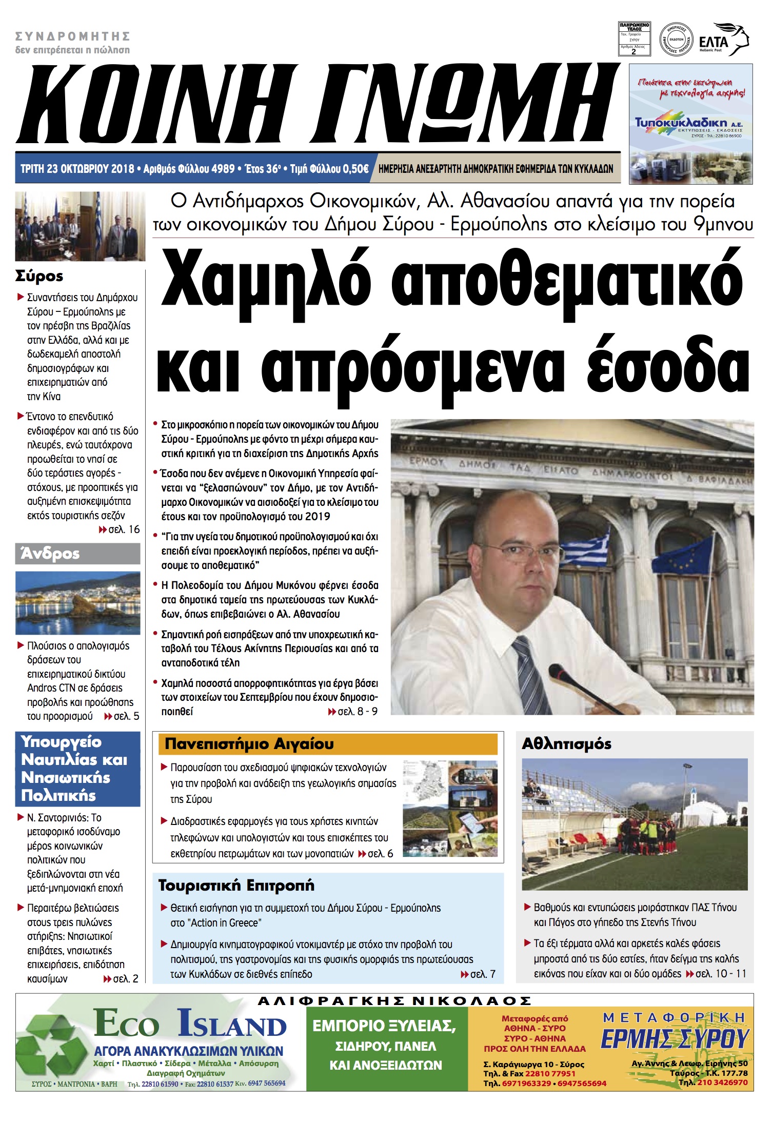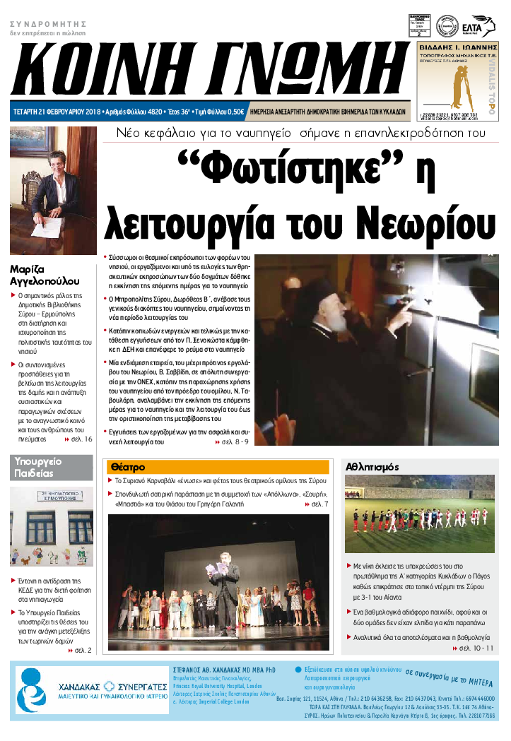 ΚΟΙΝΗ ΓΝΩΜΗ ΚΟΙΝΗ ΓΝΩΜΗ Ημερησια Εφημεριδα των Κυκλαδων
