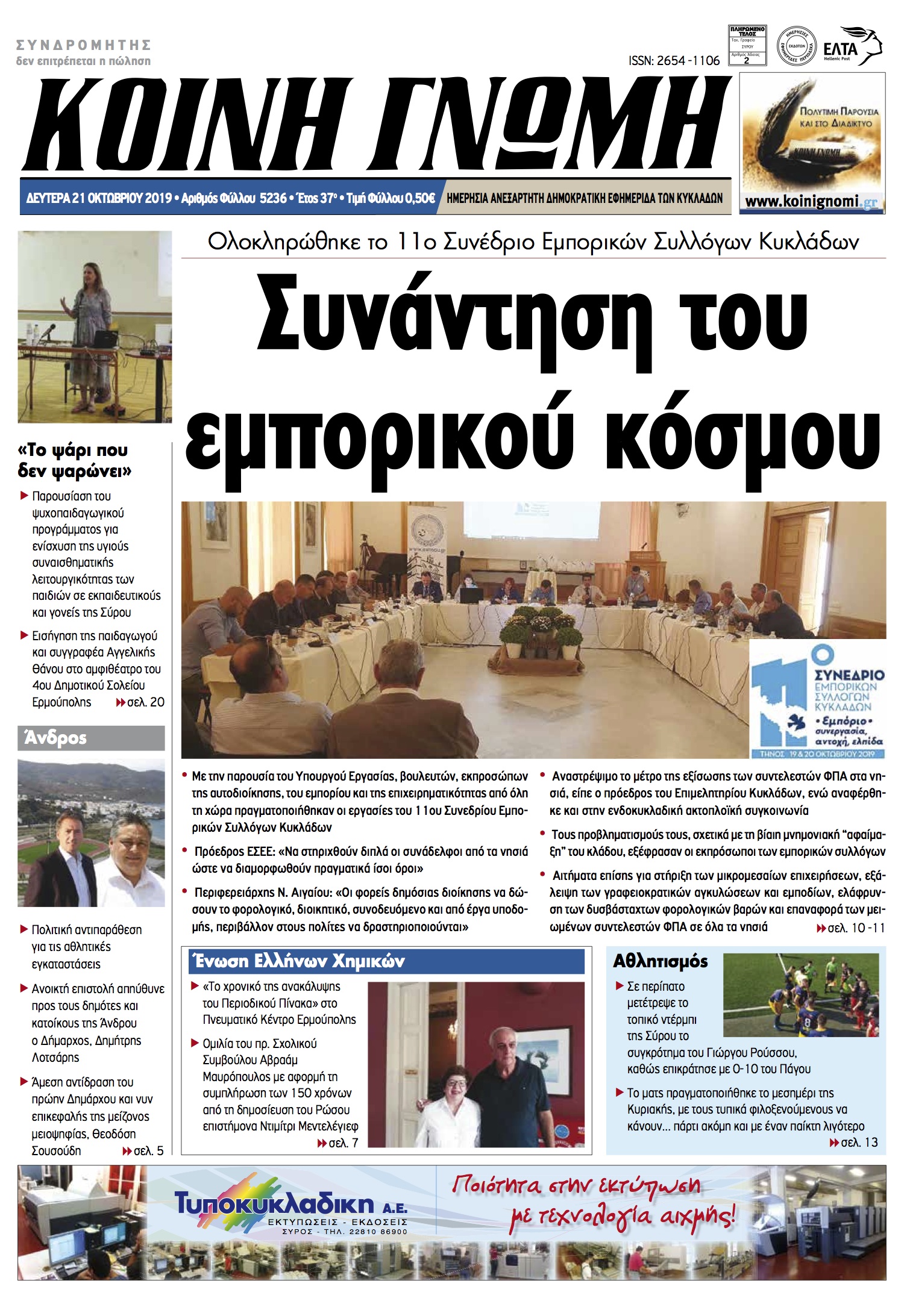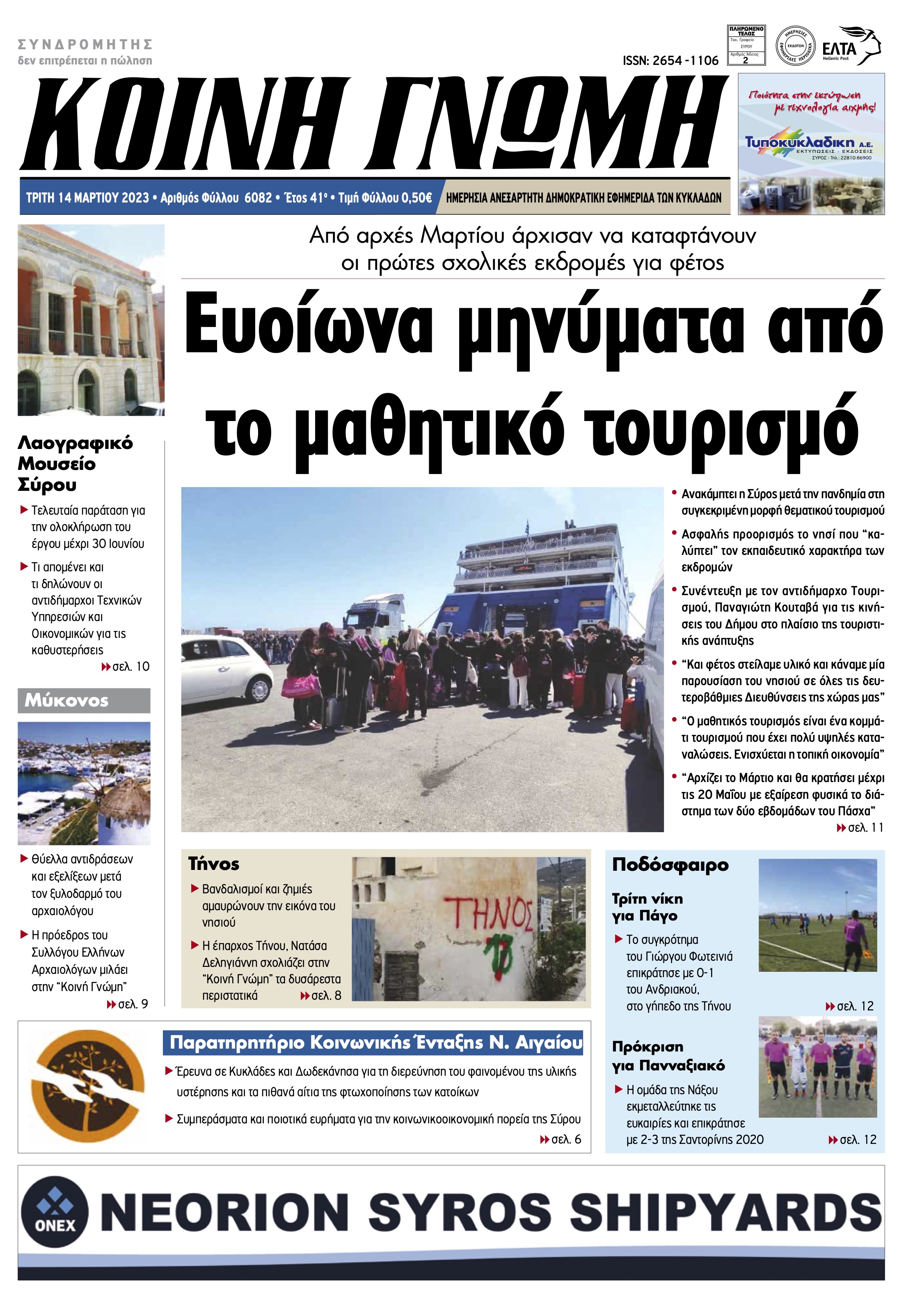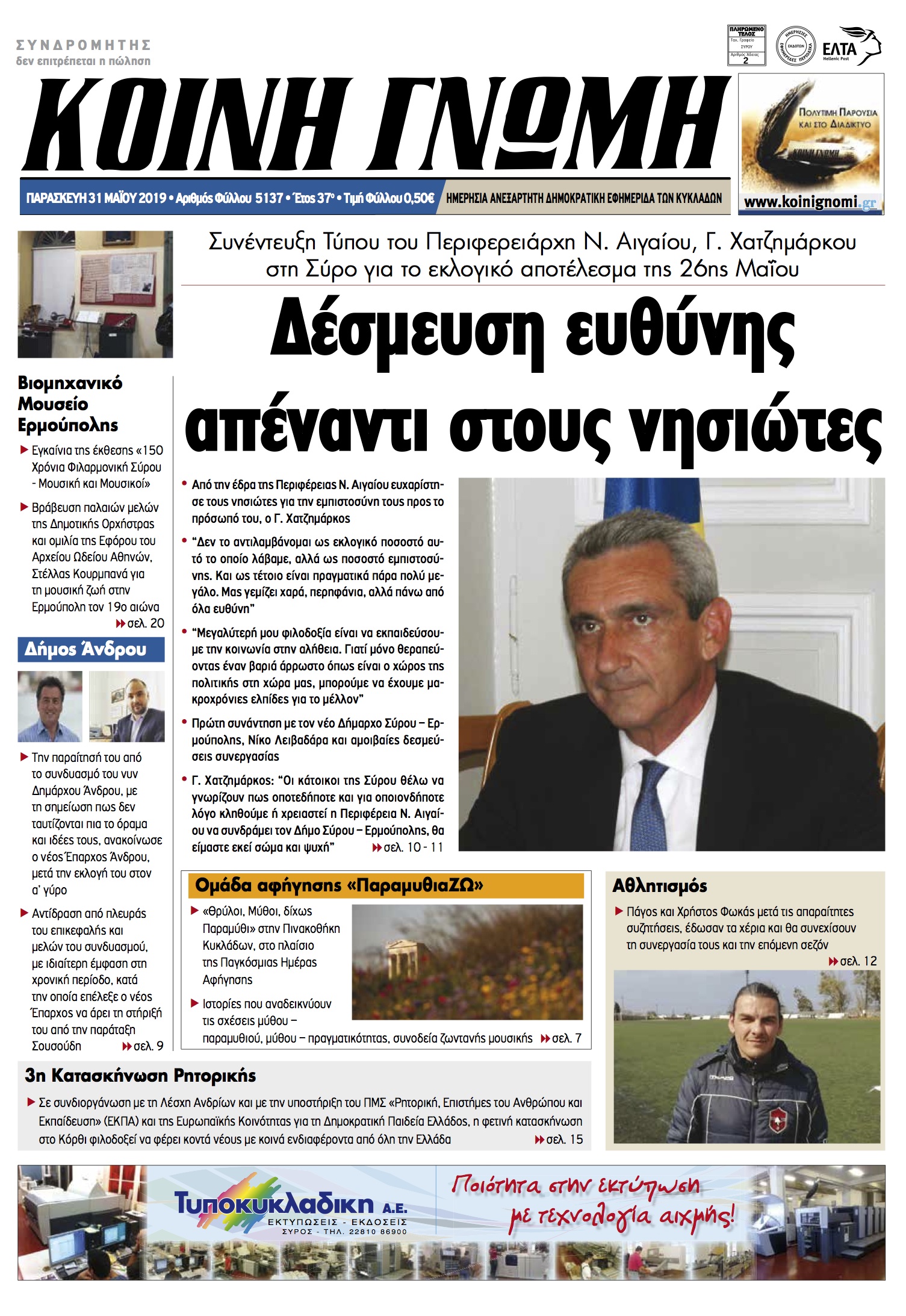 ΚΟΙΝΗ ΓΝΩΜΗ ΚΟΙΝΗ ΓΝΩΜΗ Ημερησια Εφημεριδα των Κυκλαδων