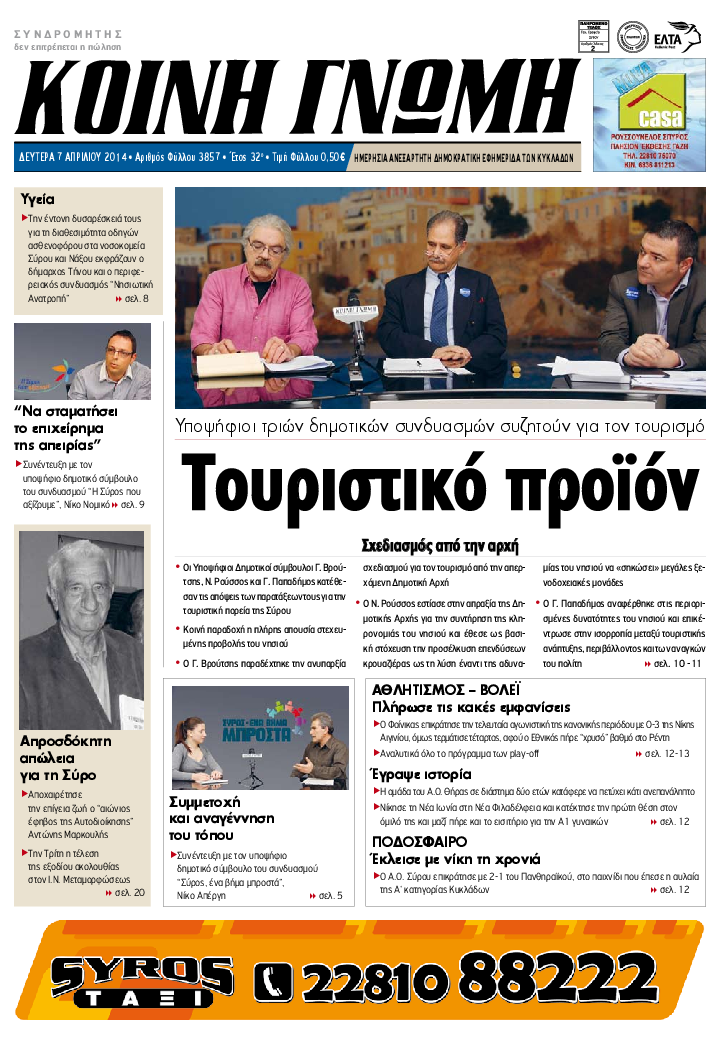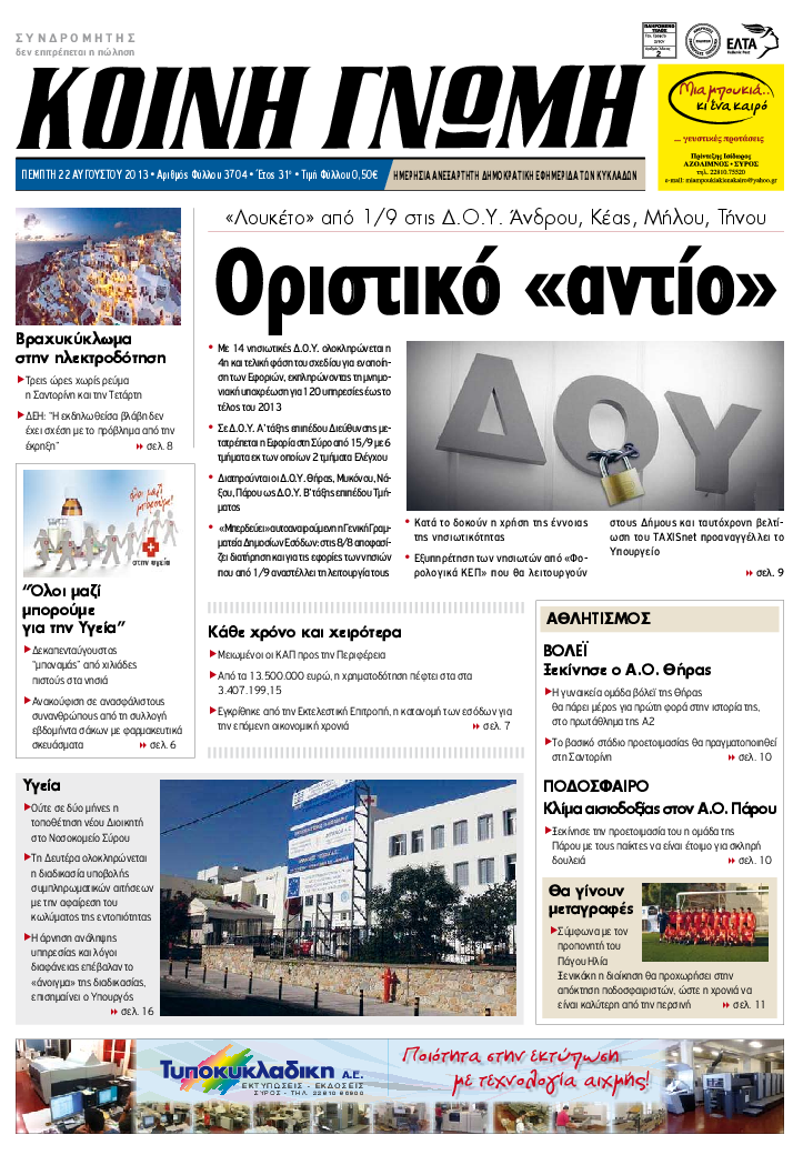 ΚΟΙΝΗ ΓΝΩΜΗ ΚΟΙΝΗ ΓΝΩΜΗ Ημερησια Εφημεριδα των Κυκλαδων