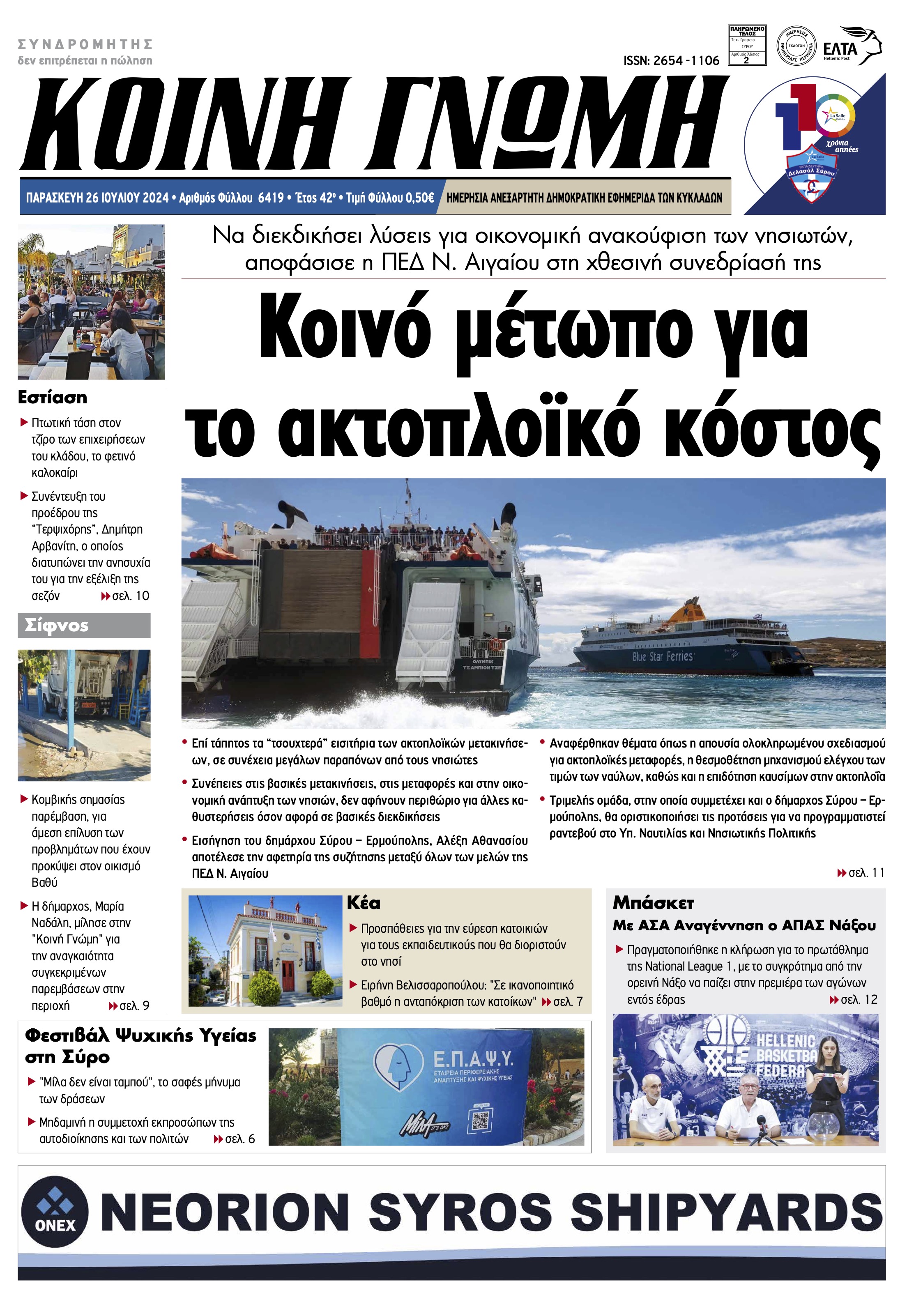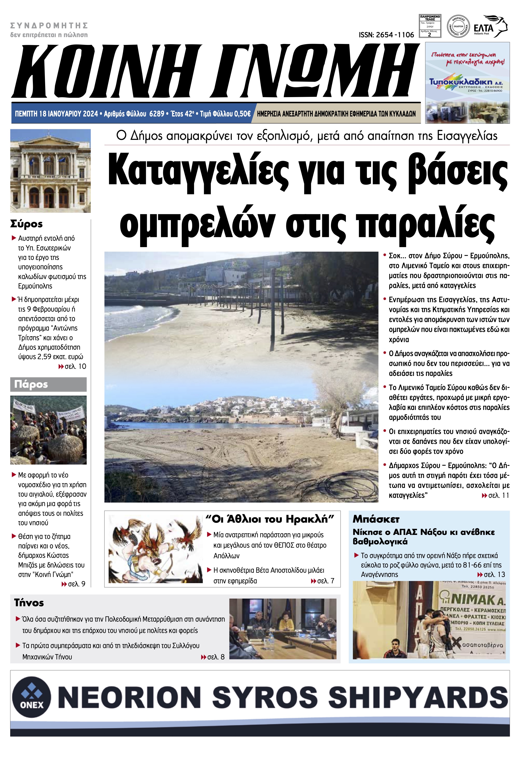 ΚΟΙΝΗ ΓΝΩΜΗ ΚΟΙΝΗ ΓΝΩΜΗ Ημερησια Εφημεριδα των Κυκλαδων