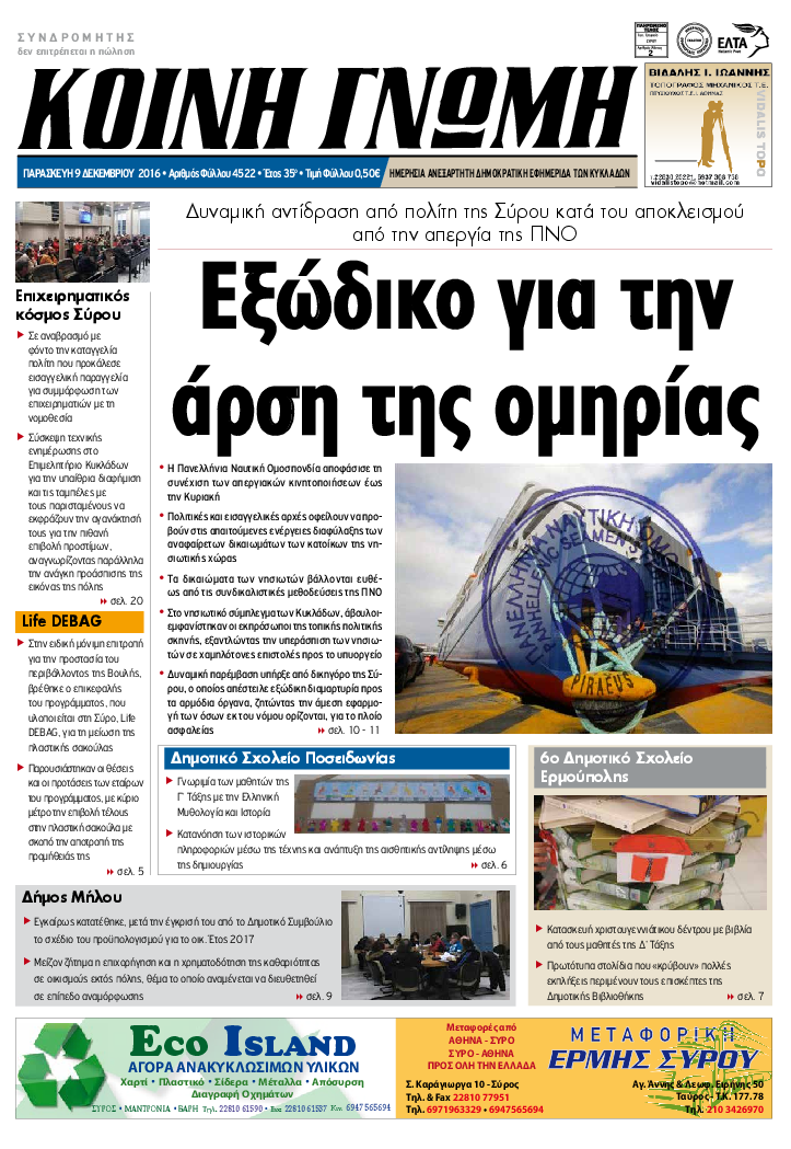 ΚΟΙΝΗ ΓΝΩΜΗ ΚΟΙΝΗ ΓΝΩΜΗ Ημερησια Εφημεριδα των Κυκλαδων