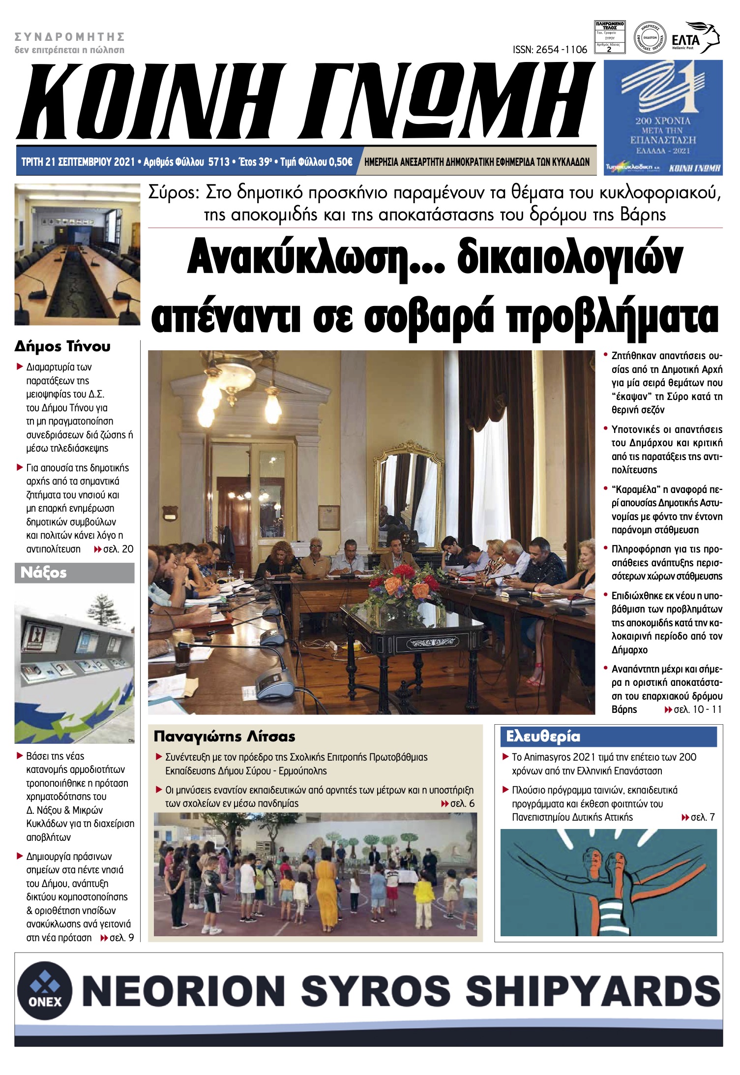 ΚΟΙΝΗ ΓΝΩΜΗ ΚΟΙΝΗ ΓΝΩΜΗ Ημερησια Εφημεριδα των Κυκλαδων