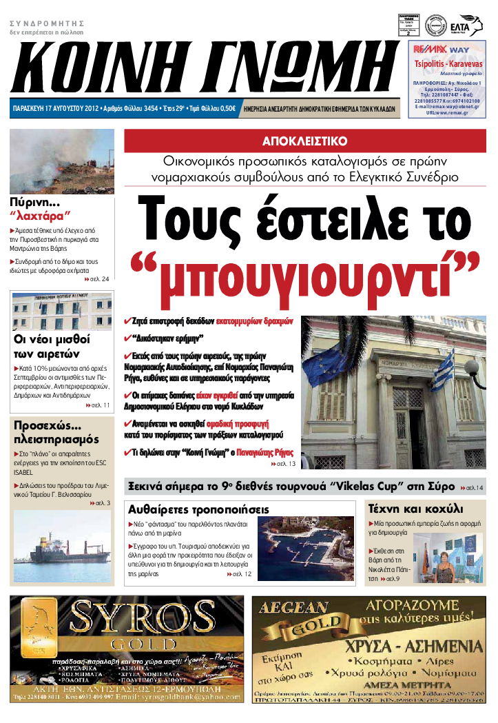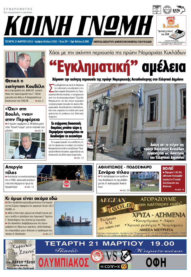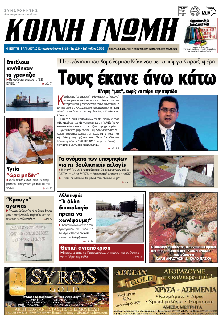 ΚΟΙΝΗ ΓΝΩΜΗ ΚΟΙΝΗ ΓΝΩΜΗ Ημερησια Εφημεριδα των Κυκλαδων