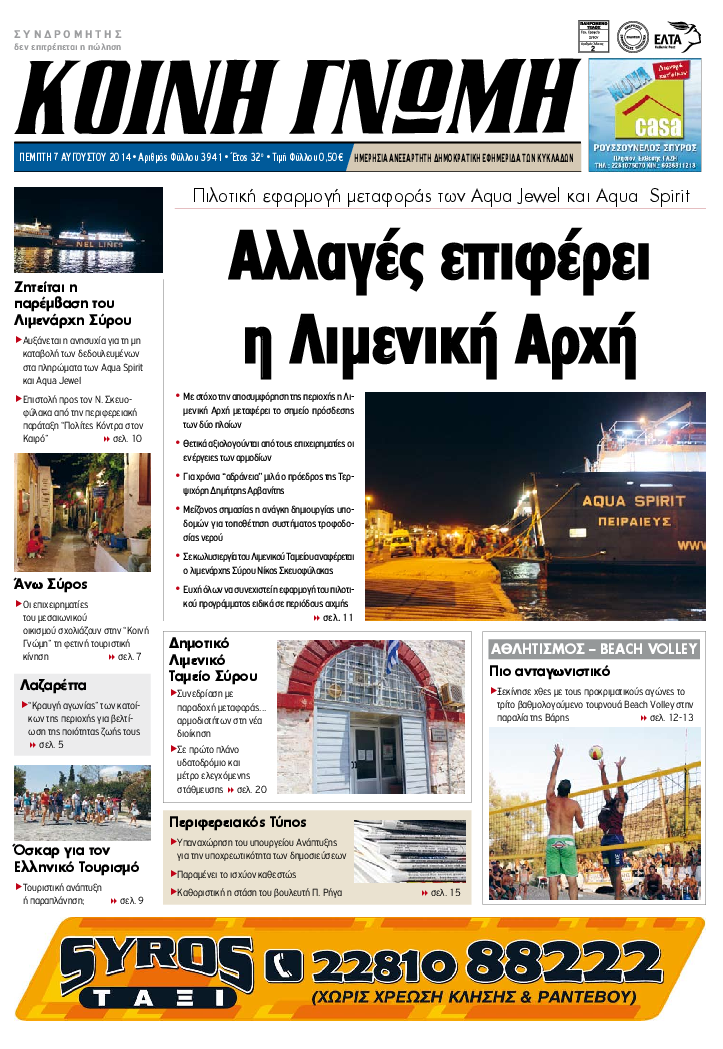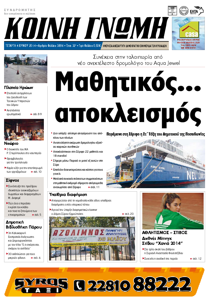 ΚΟΙΝΗ ΓΝΩΜΗ ΚΟΙΝΗ ΓΝΩΜΗ Ημερησια Εφημεριδα των Κυκλαδων