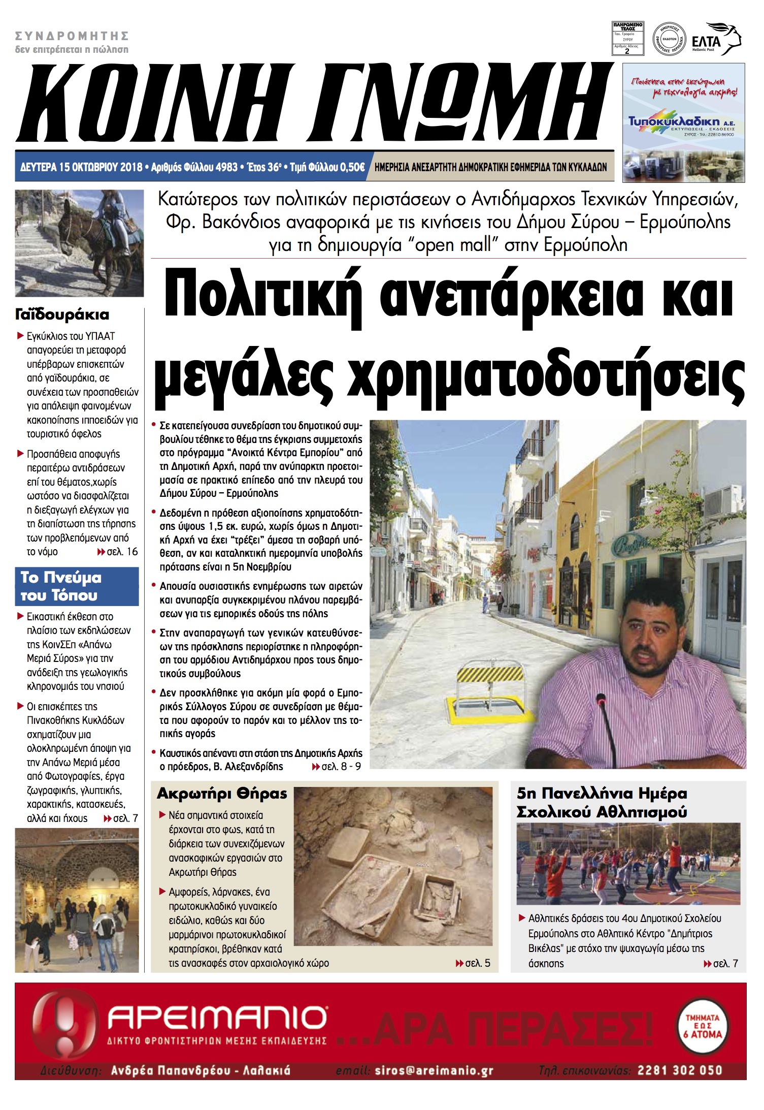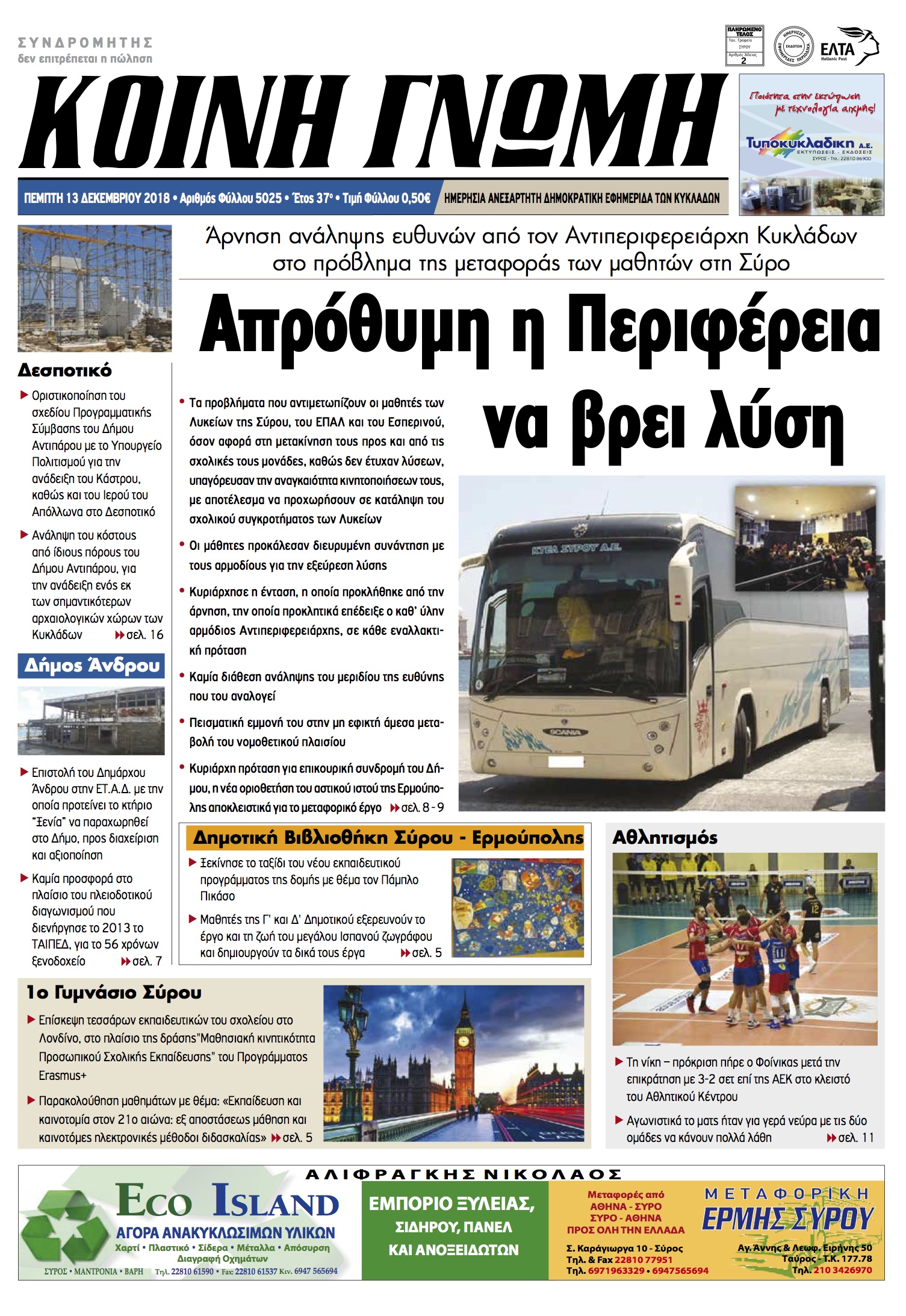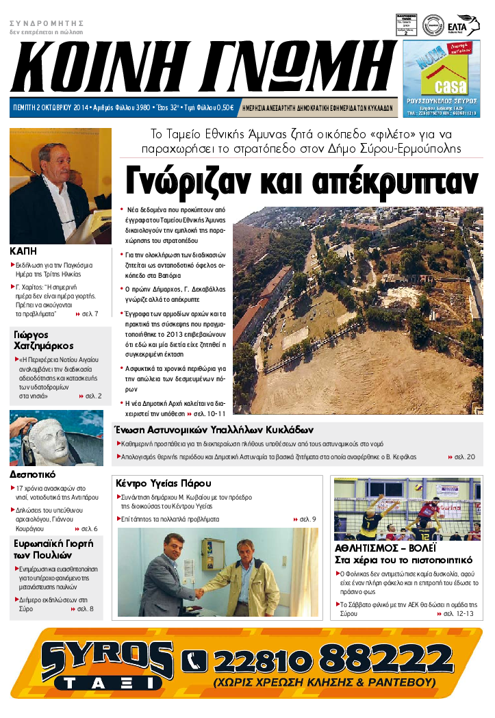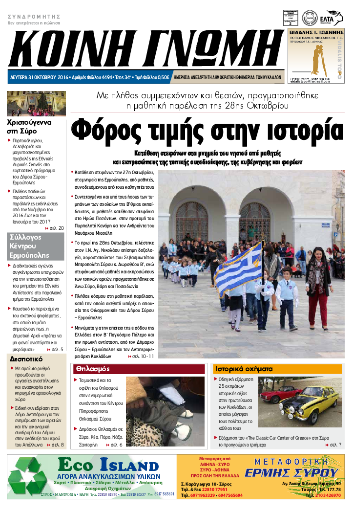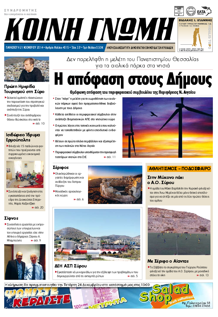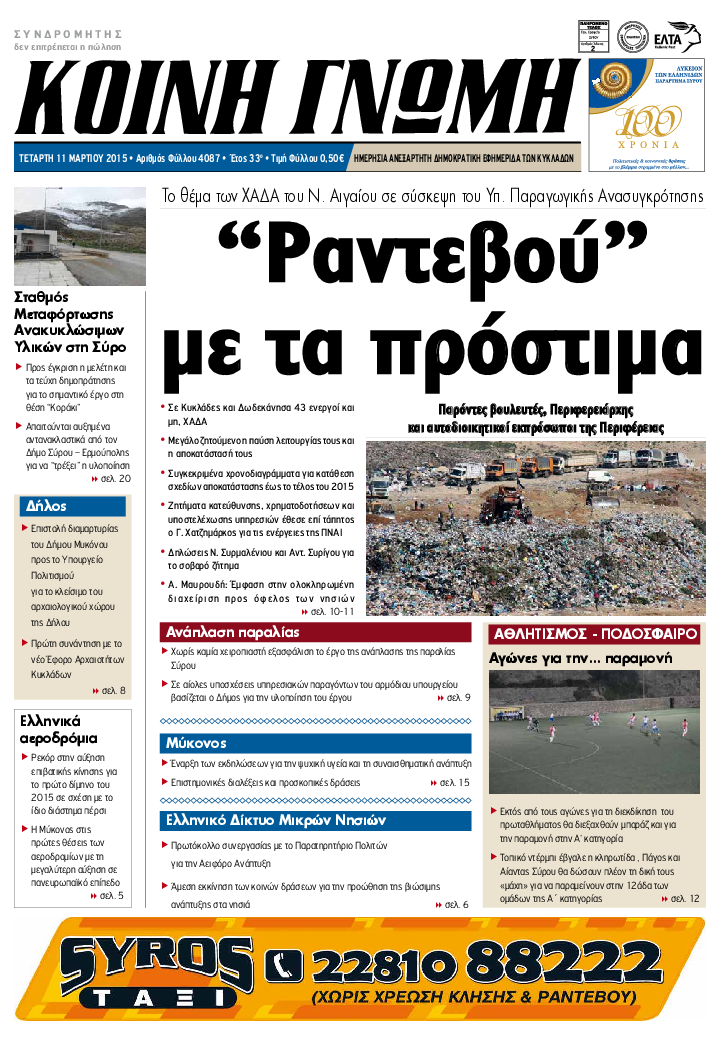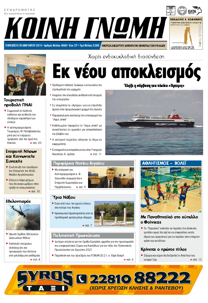 ΚΟΙΝΗ ΓΝΩΜΗ ΚΟΙΝΗ ΓΝΩΜΗ Ημερησια Εφημεριδα των Κυκλαδων