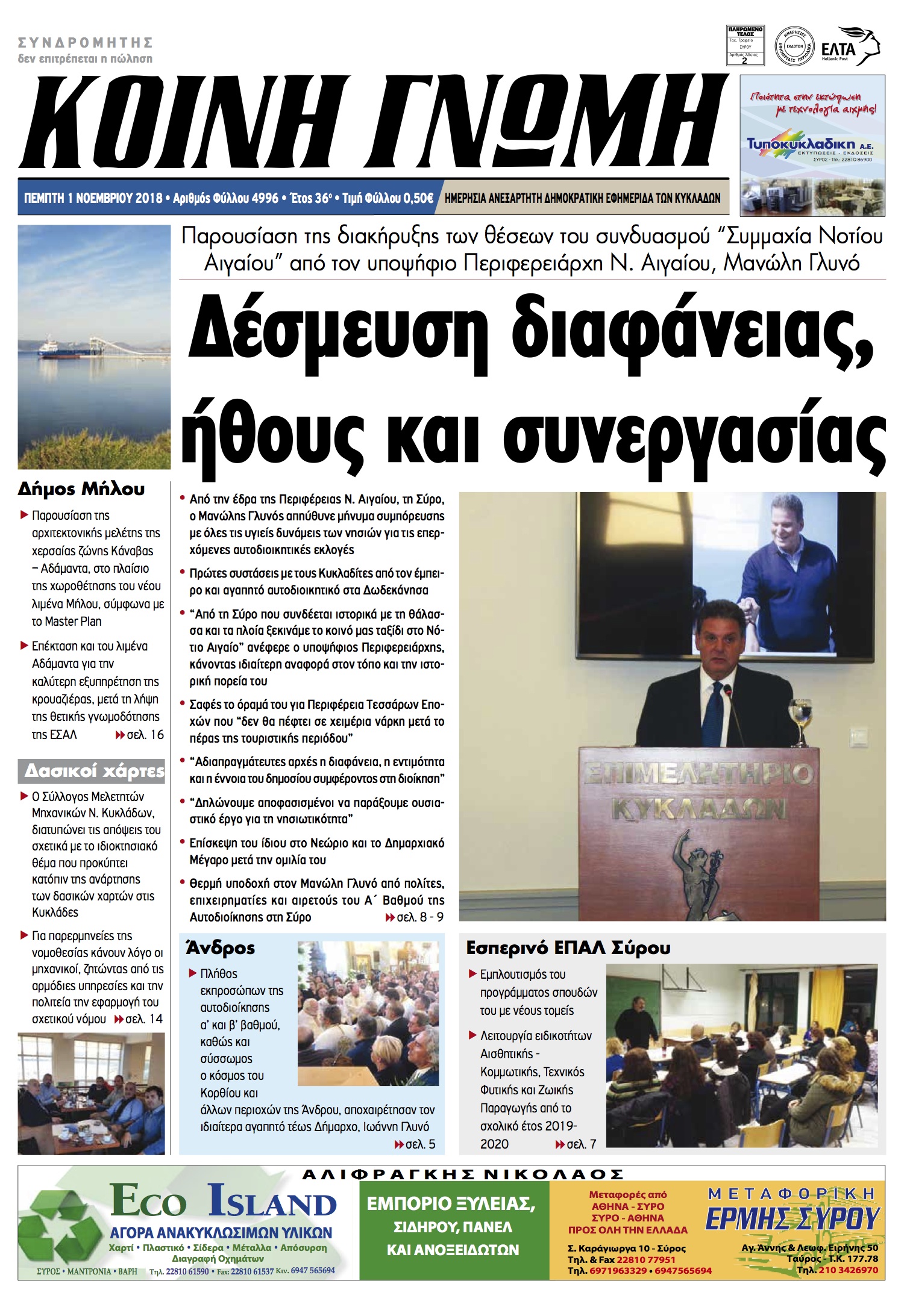 ΚΟΙΝΗ ΓΝΩΜΗ ΚΟΙΝΗ ΓΝΩΜΗ Ημερησια Εφημεριδα των Κυκλαδων