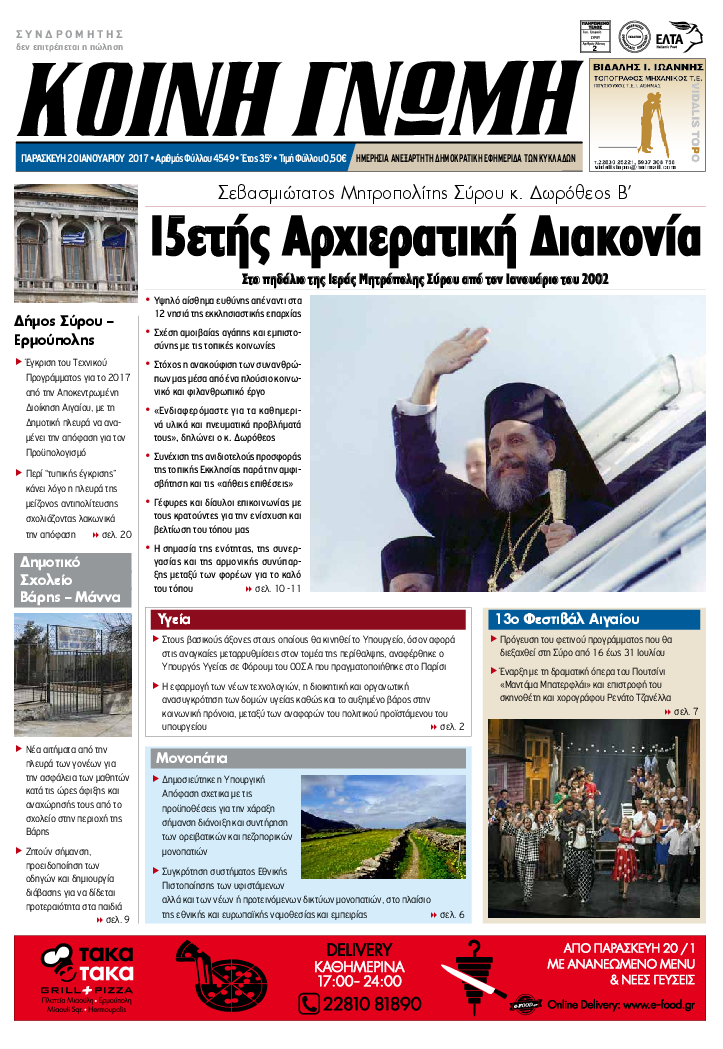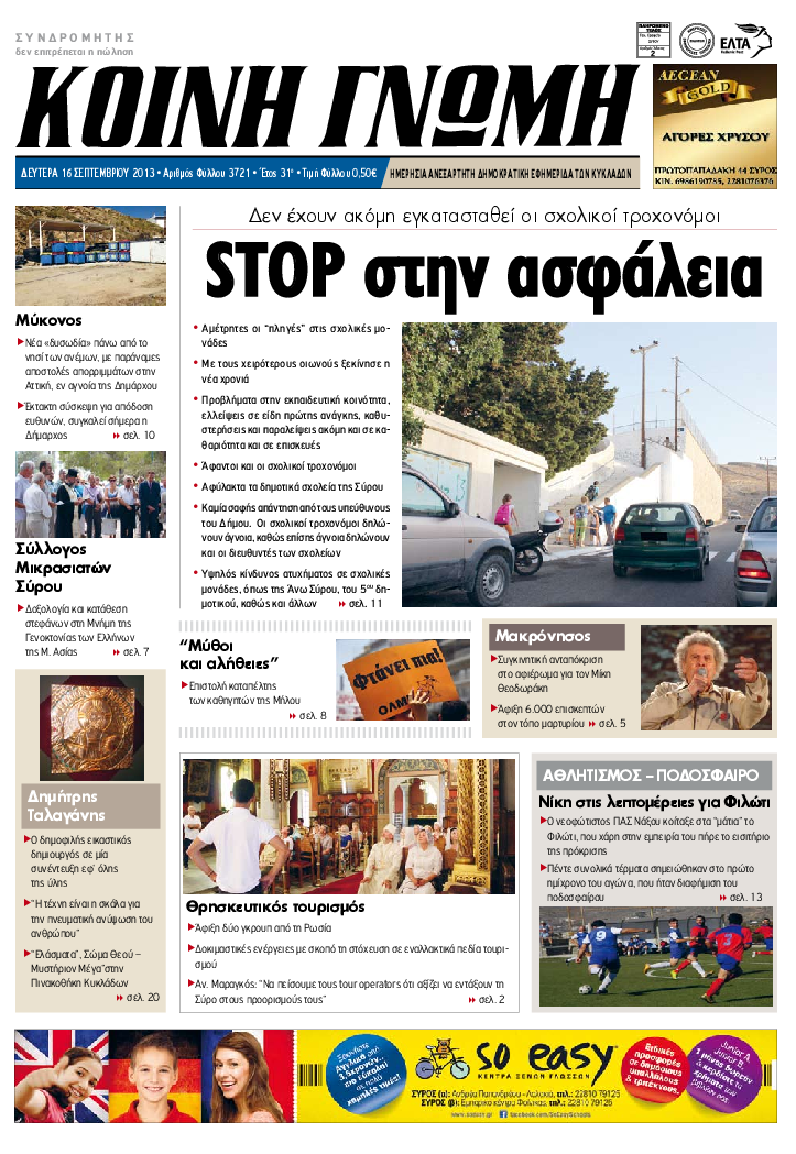 ΚΟΙΝΗ ΓΝΩΜΗ ΚΟΙΝΗ ΓΝΩΜΗ Ημερησια Εφημεριδα των Κυκλαδων