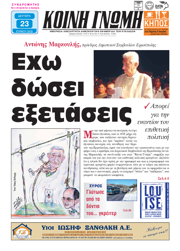 ΚΟΙΝΗ ΓΝΩΜΗ ΚΟΙΝΗ ΓΝΩΜΗ Ημερησια Εφημεριδα των Κυκλαδων