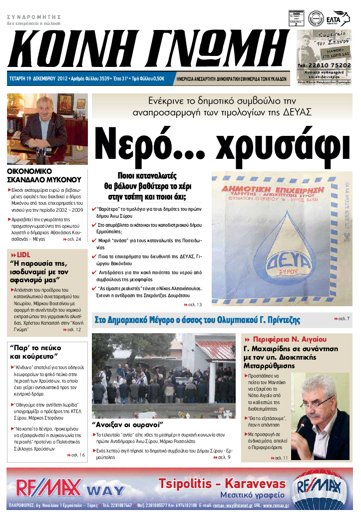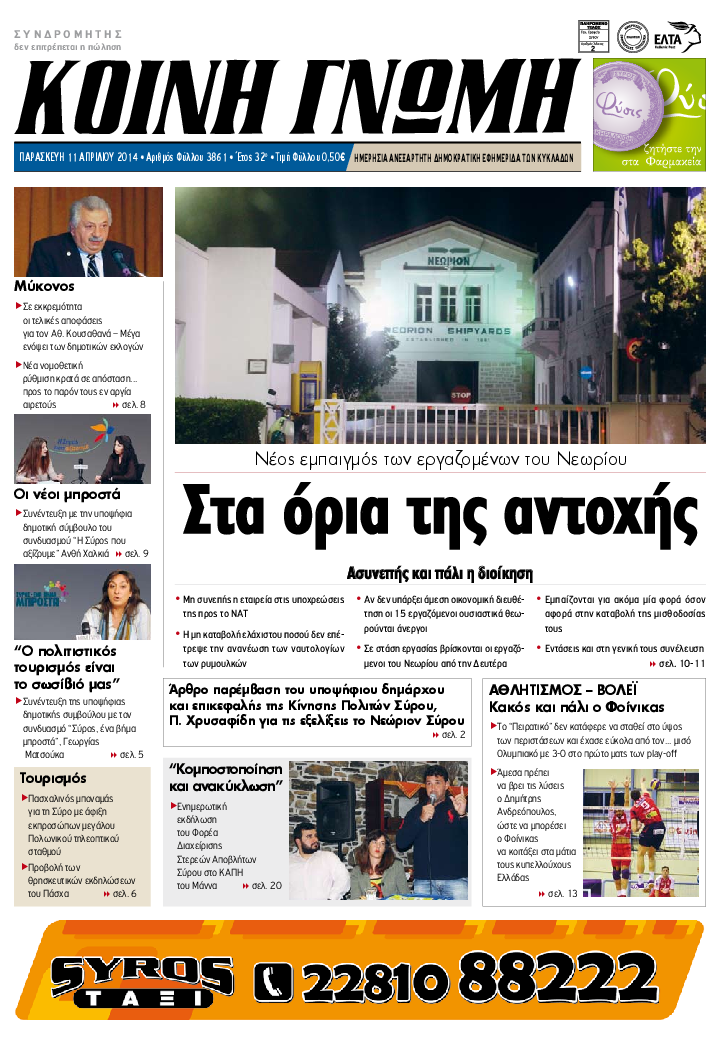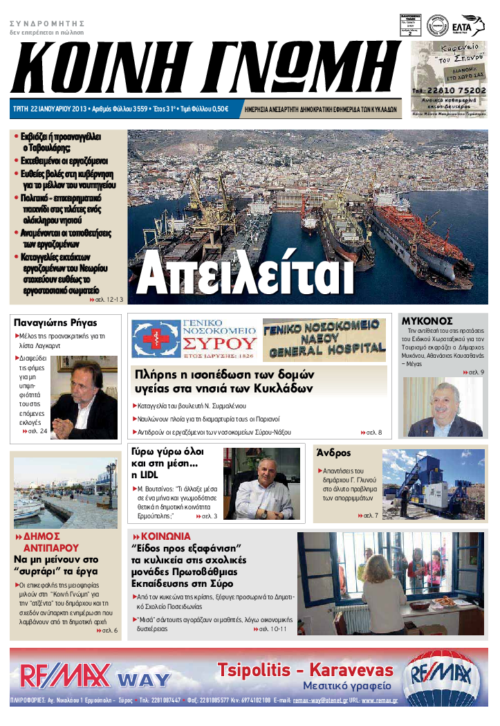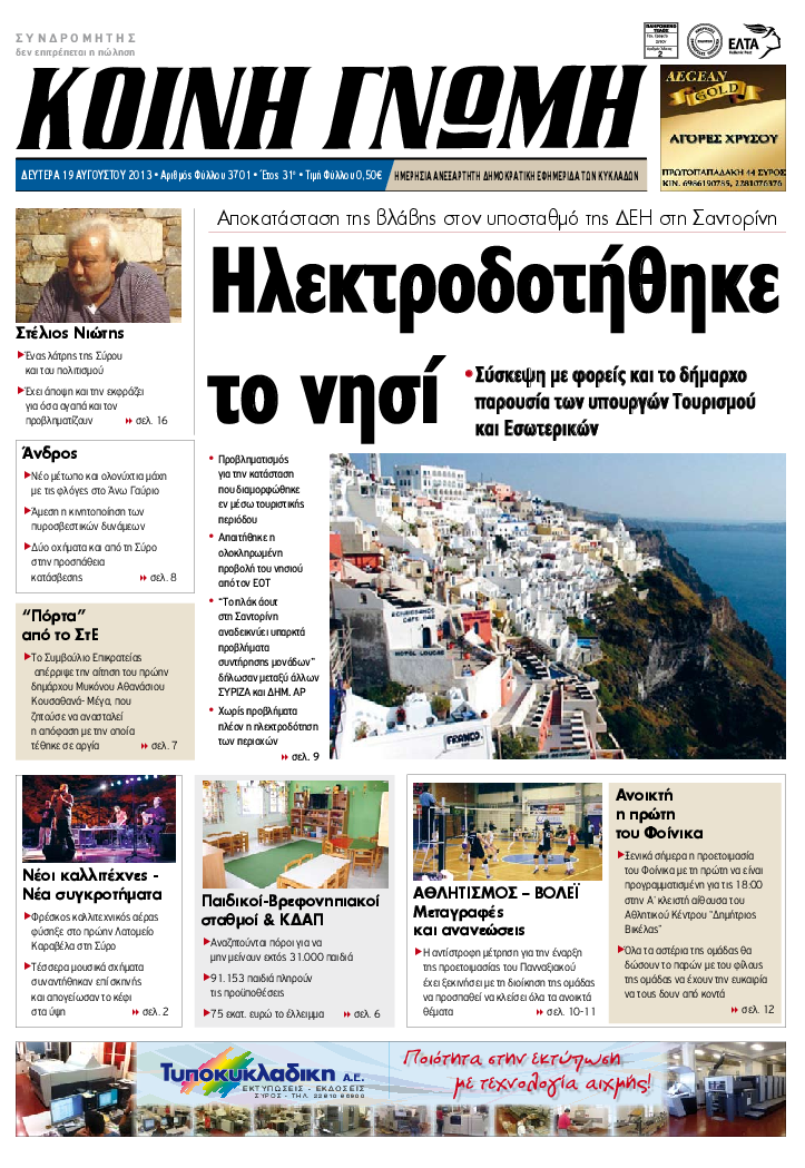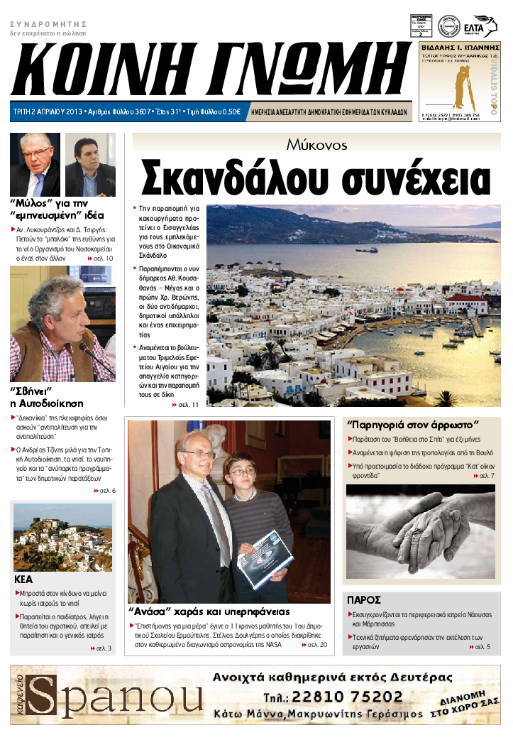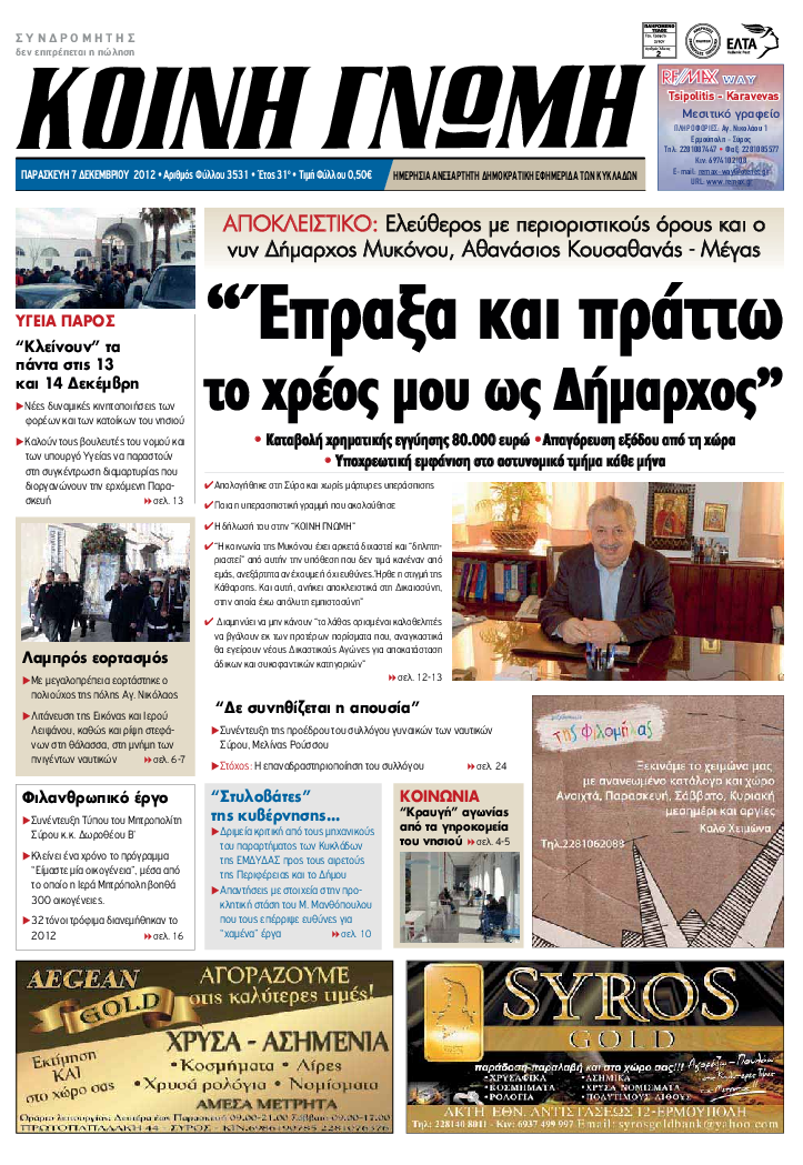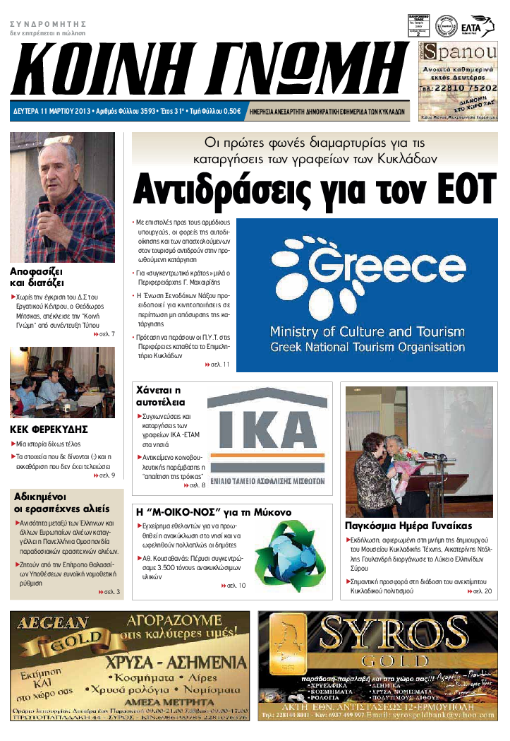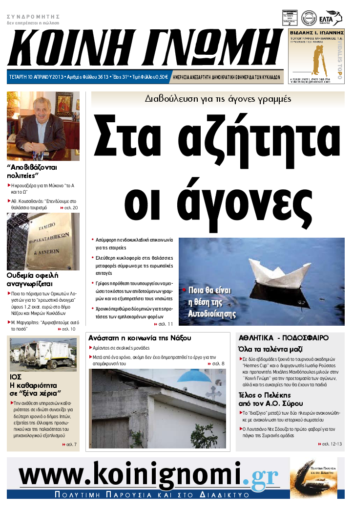 ΚΟΙΝΗ ΓΝΩΜΗ ΚΟΙΝΗ ΓΝΩΜΗ Ημερησια Εφημεριδα των Κυκλαδων
