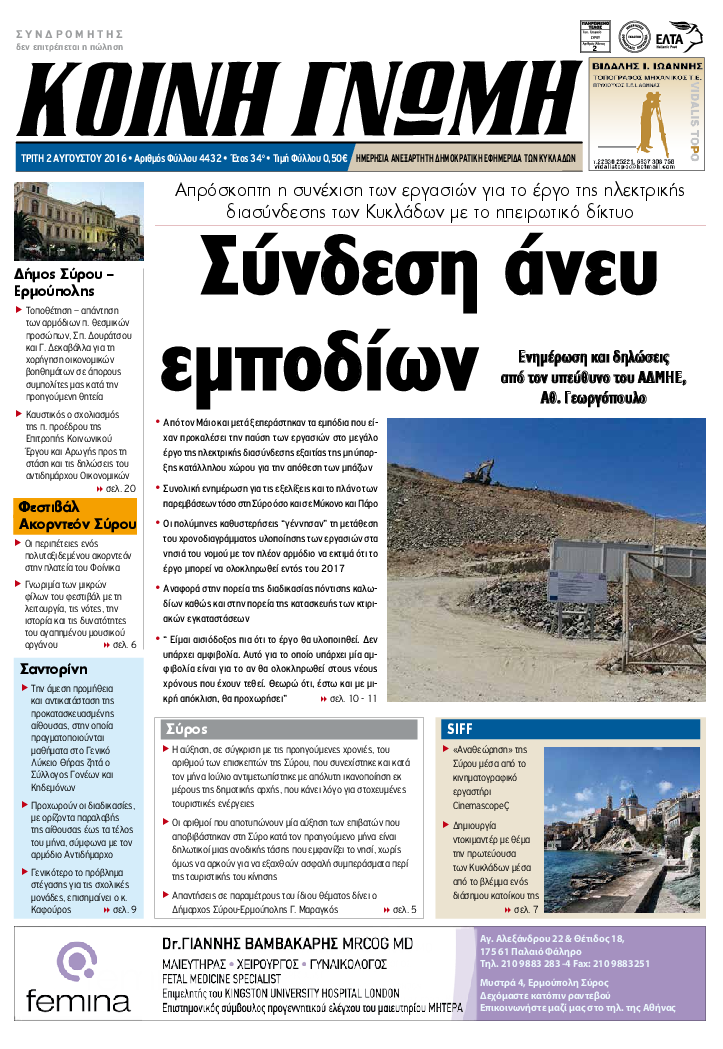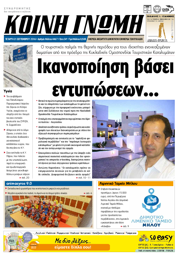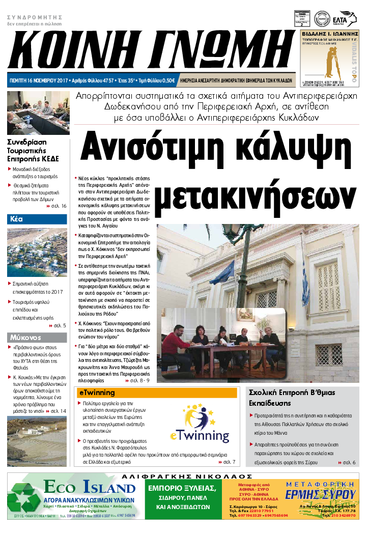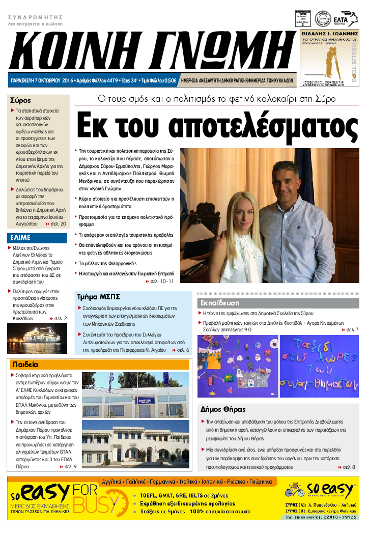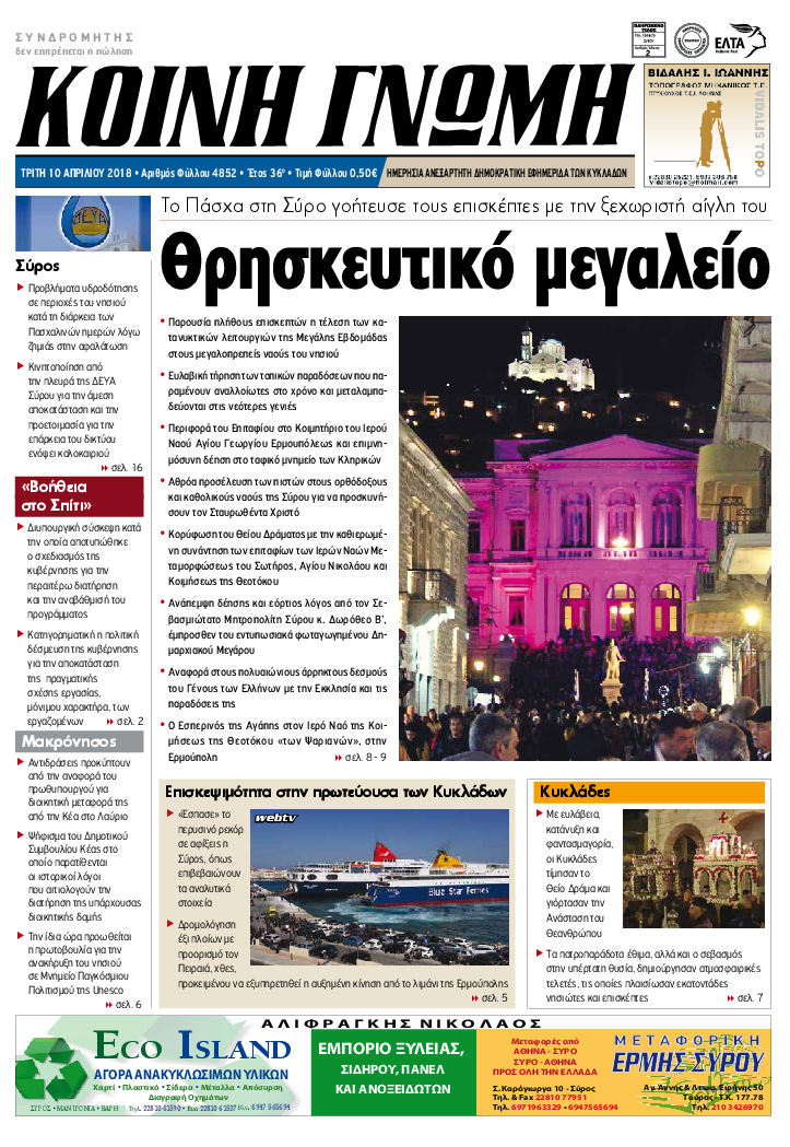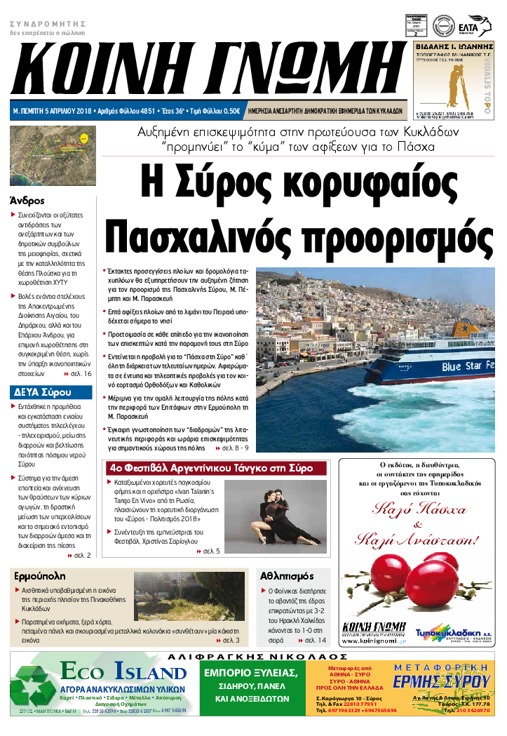 ΚΟΙΝΗ ΓΝΩΜΗ ΚΟΙΝΗ ΓΝΩΜΗ Ημερησια Εφημεριδα των Κυκλαδων