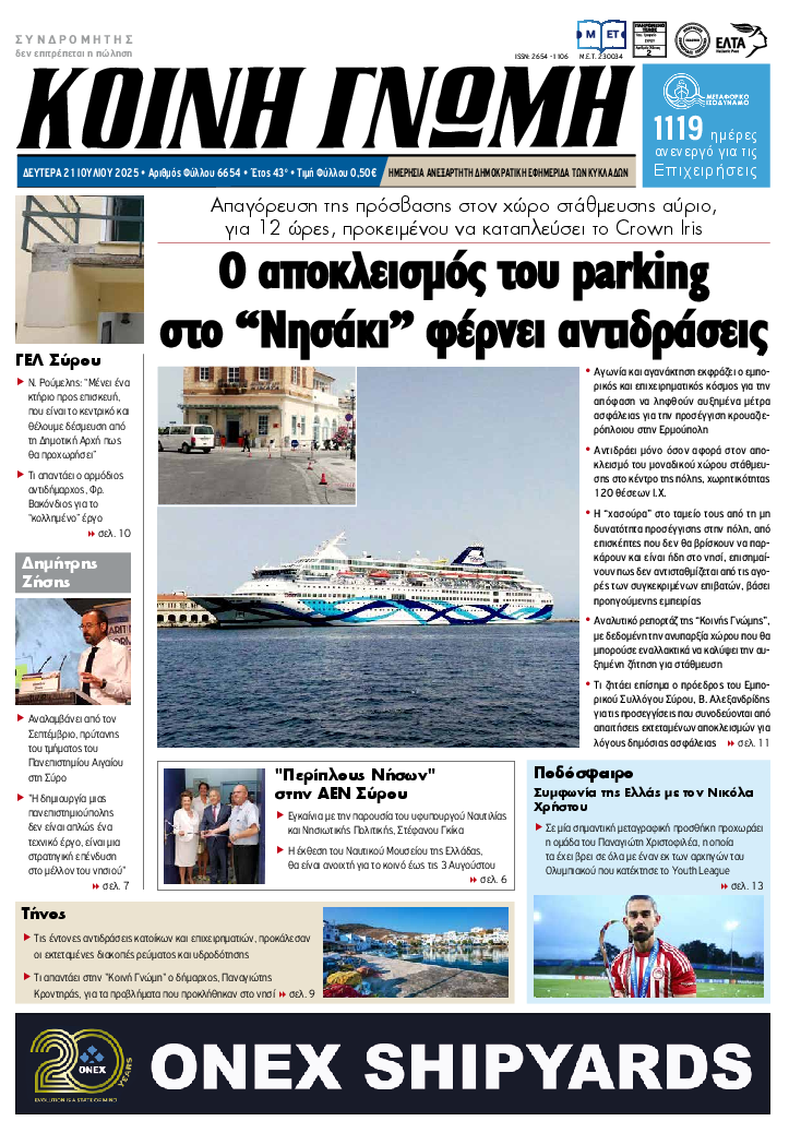 ΚΟΙΝΗ ΓΝΩΜΗ ΚΟΙΝΗ ΓΝΩΜΗ Ημερησια Εφημεριδα των Κυκλαδων