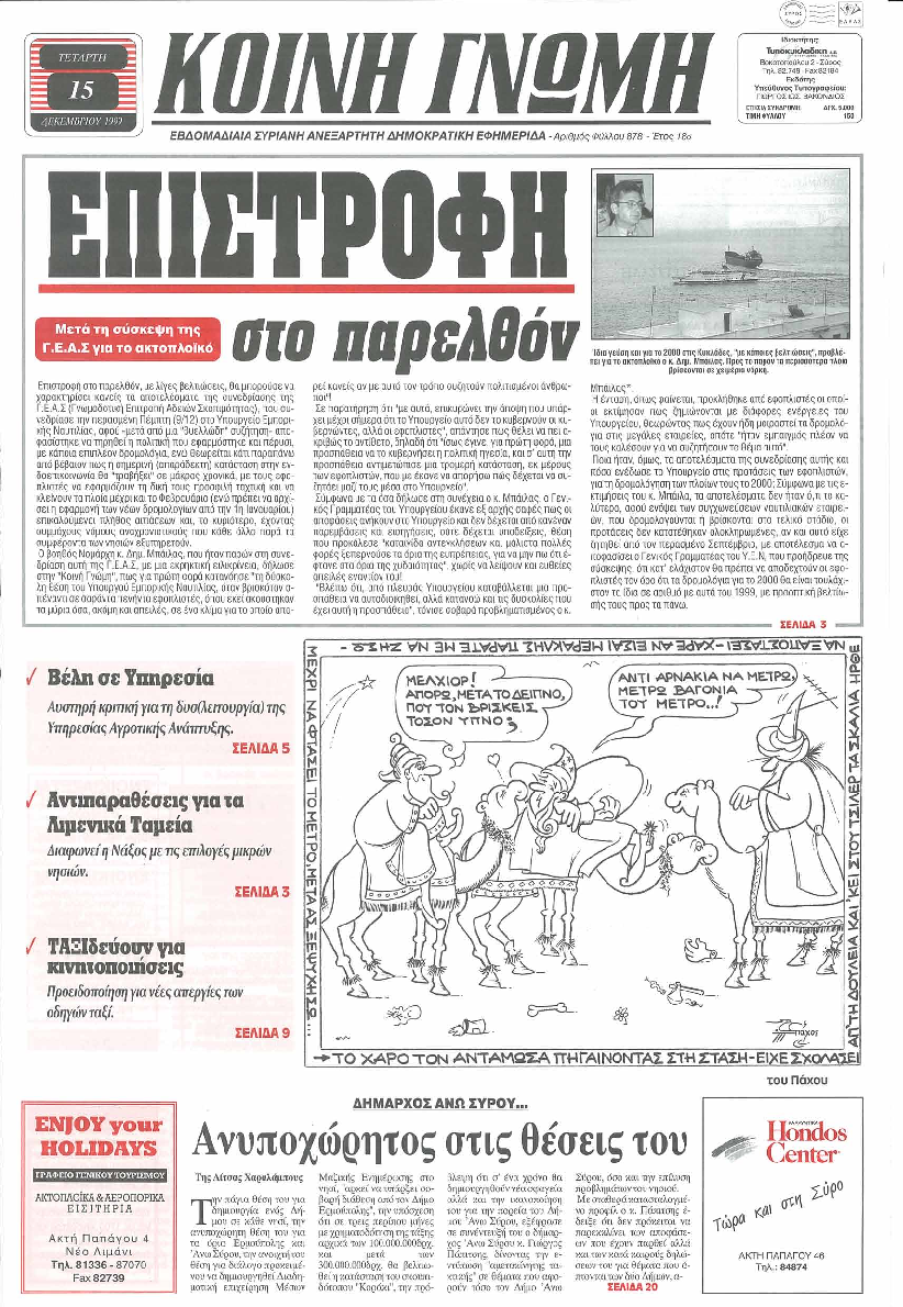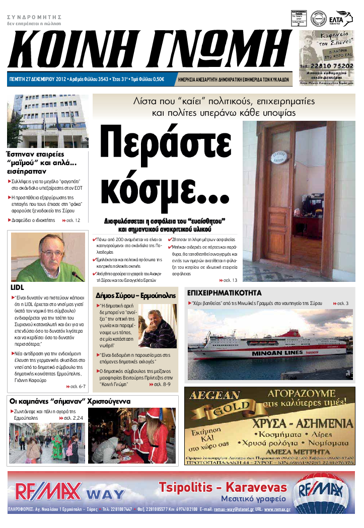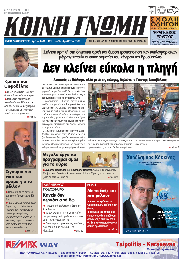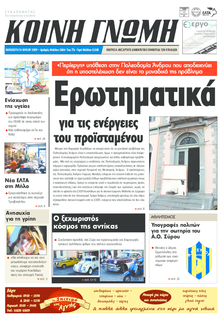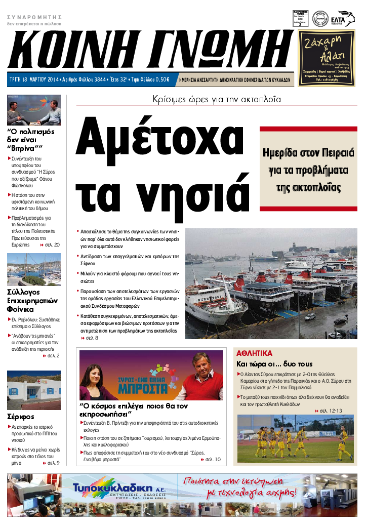 ΚΟΙΝΗ ΓΝΩΜΗ ΚΟΙΝΗ ΓΝΩΜΗ Ημερησια Εφημεριδα των Κυκλαδων