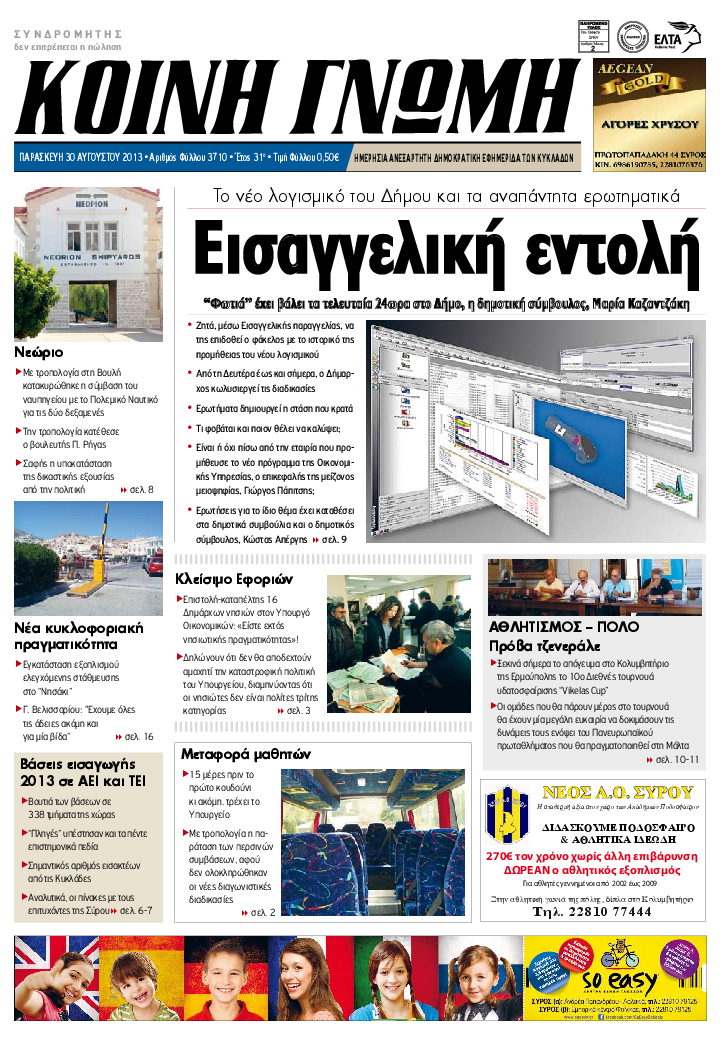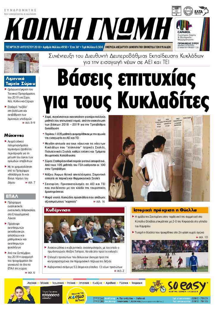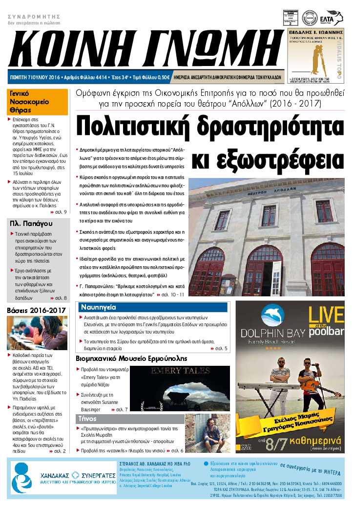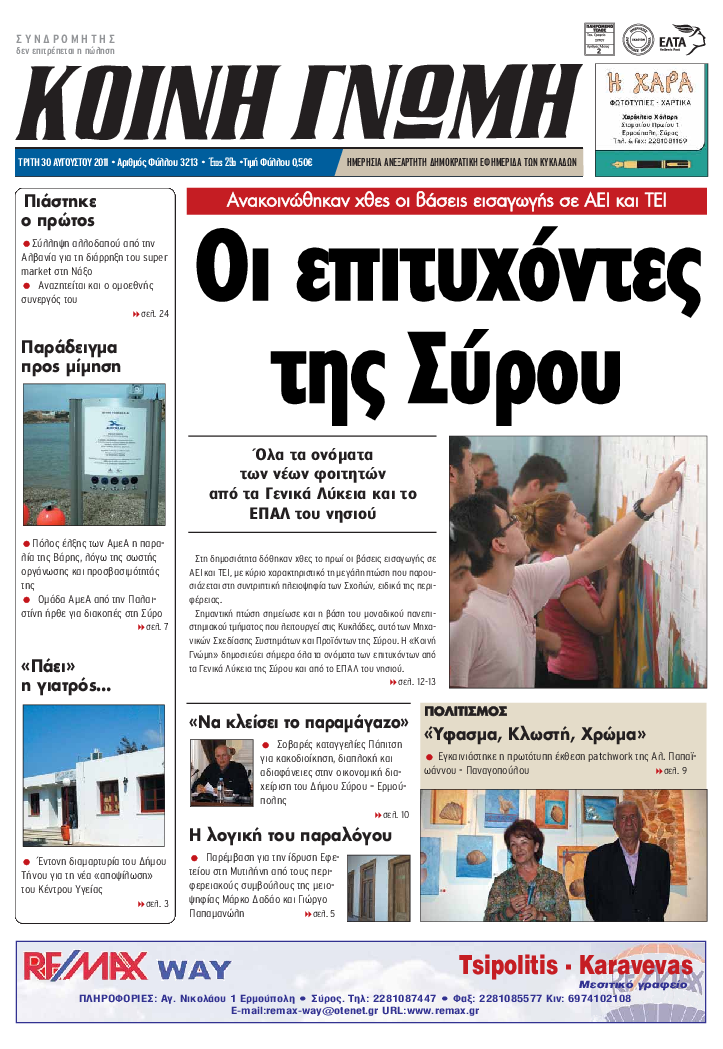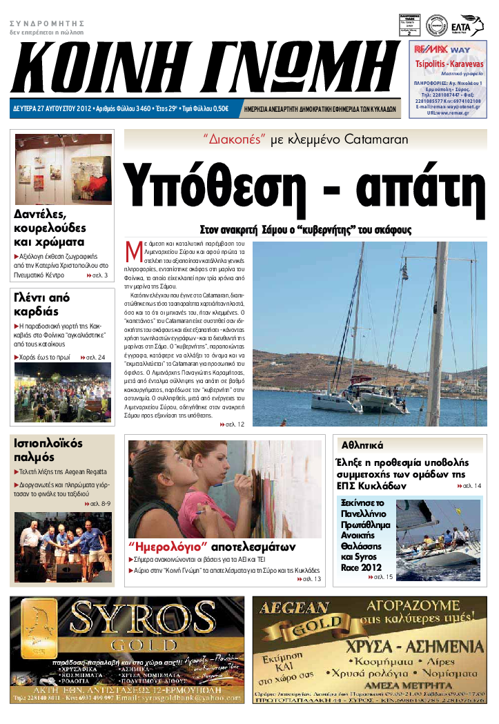 ΚΟΙΝΗ ΓΝΩΜΗ ΚΟΙΝΗ ΓΝΩΜΗ Ημερησια Εφημεριδα των Κυκλαδων