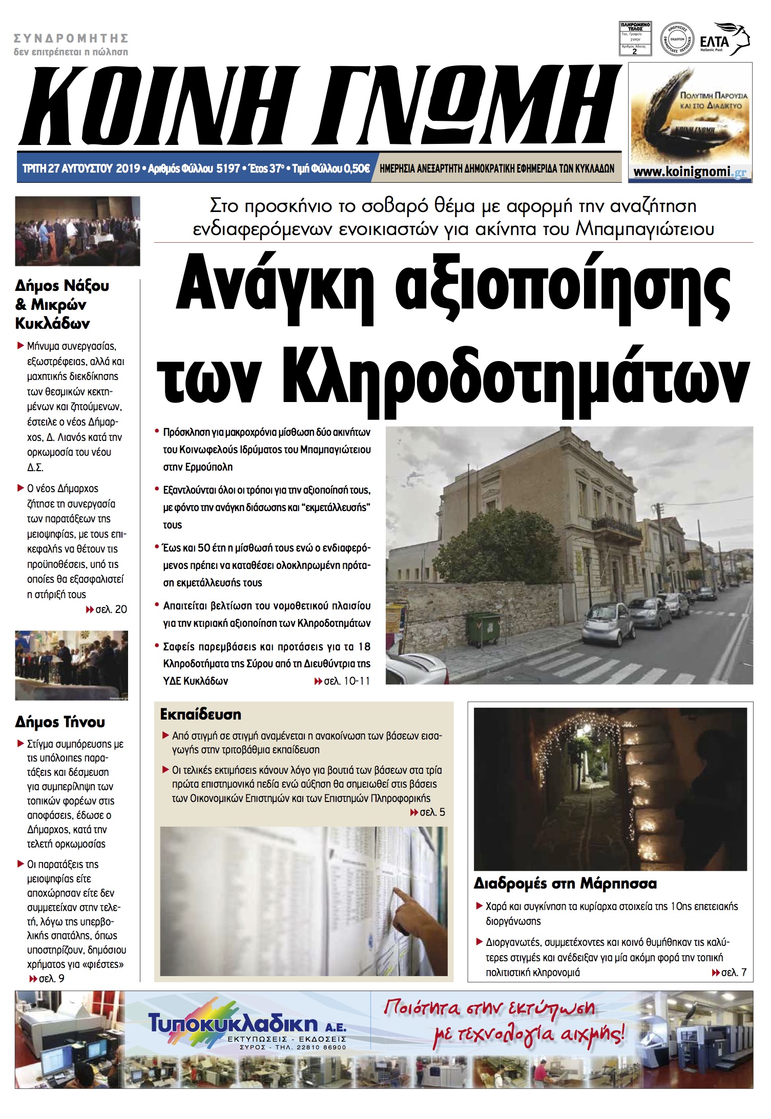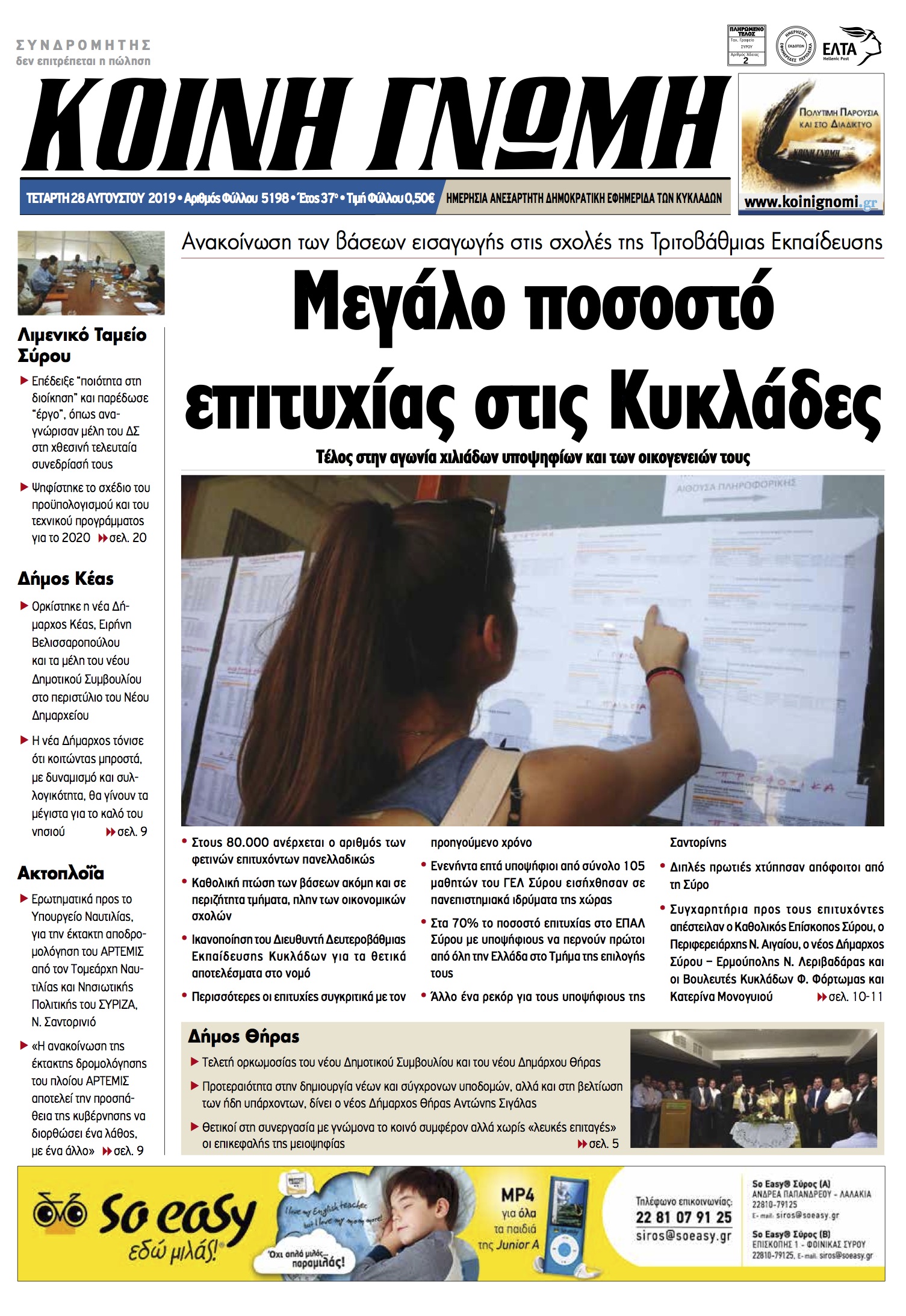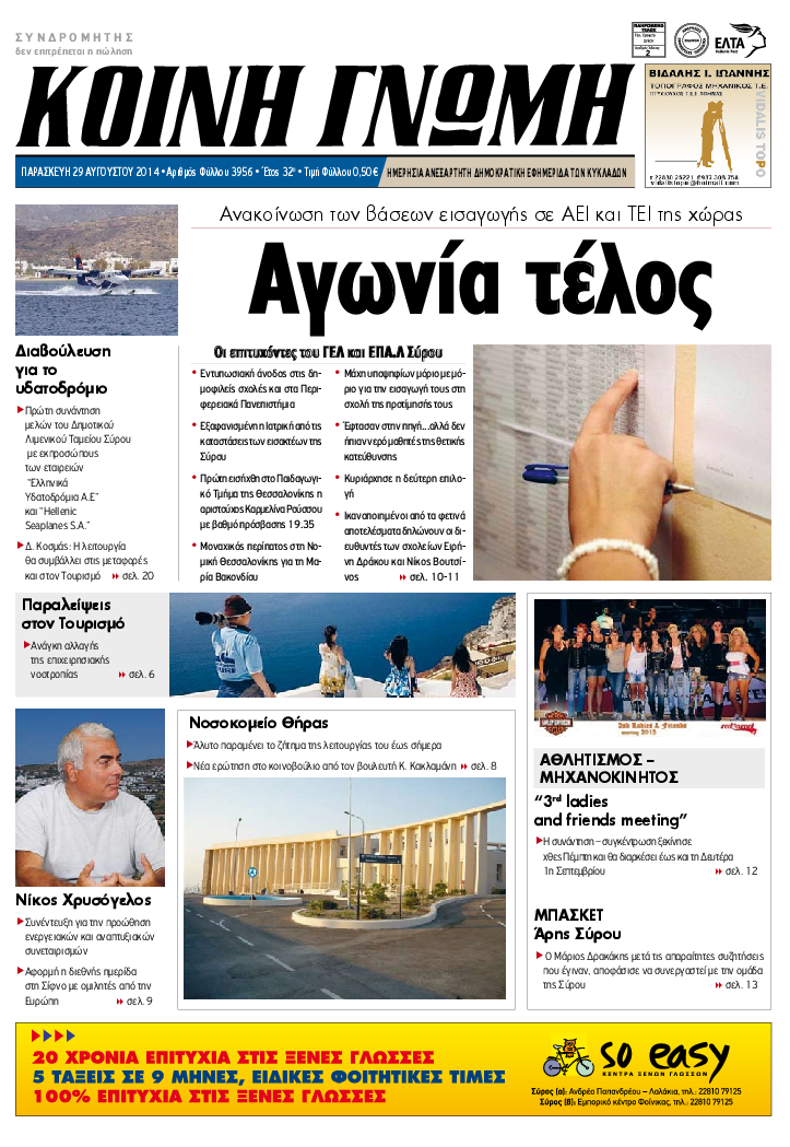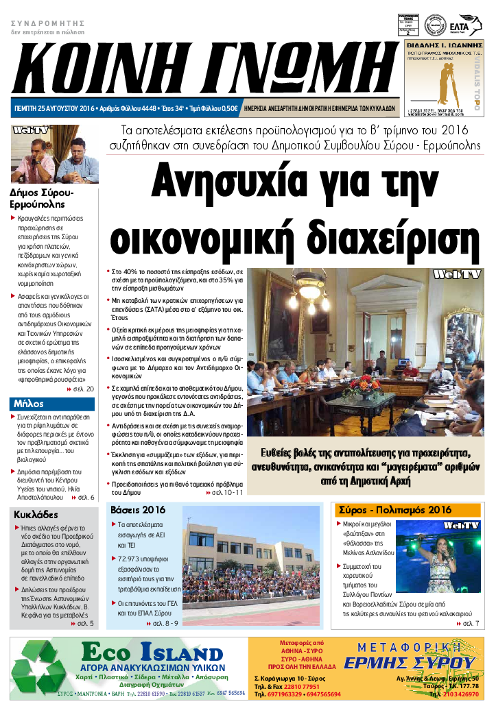 ΚΟΙΝΗ ΓΝΩΜΗ ΚΟΙΝΗ ΓΝΩΜΗ Ημερησια Εφημεριδα των Κυκλαδων