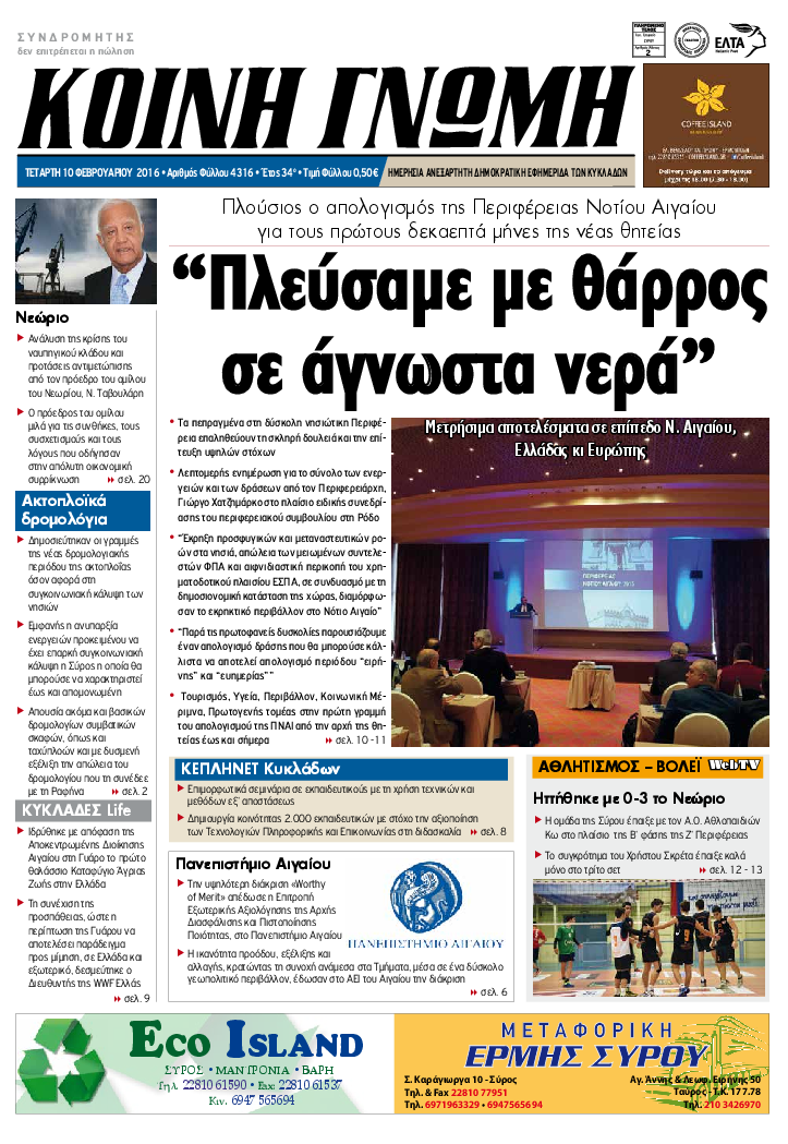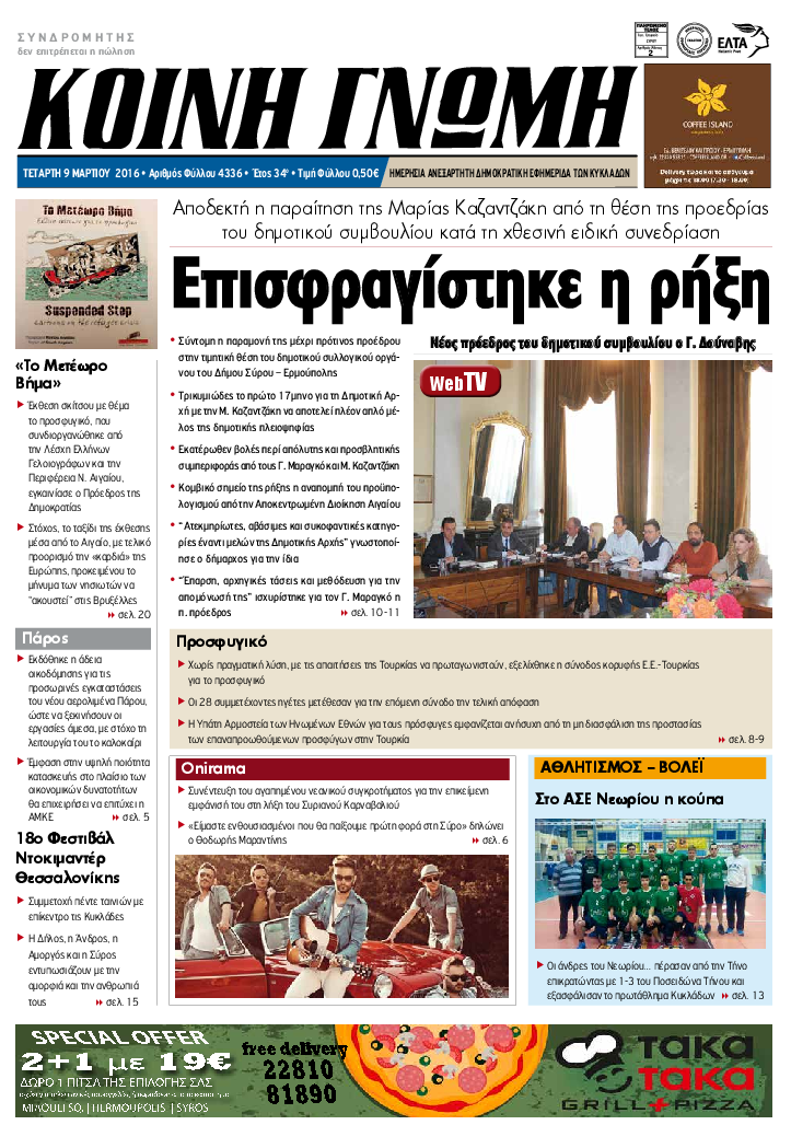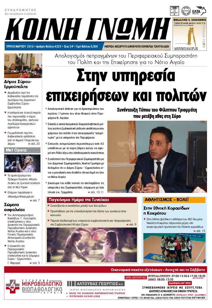 ΚΟΙΝΗ ΓΝΩΜΗ ΚΟΙΝΗ ΓΝΩΜΗ Ημερησια Εφημεριδα των Κυκλαδων