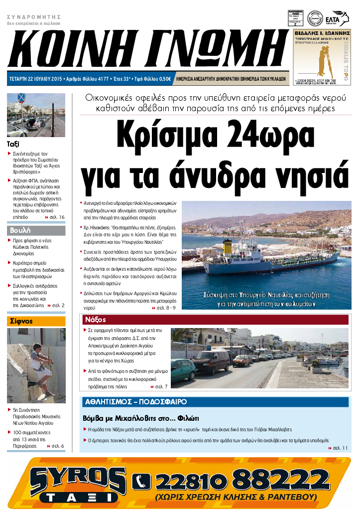 Ημερησια Εφημεριδα των Κυκλαδων