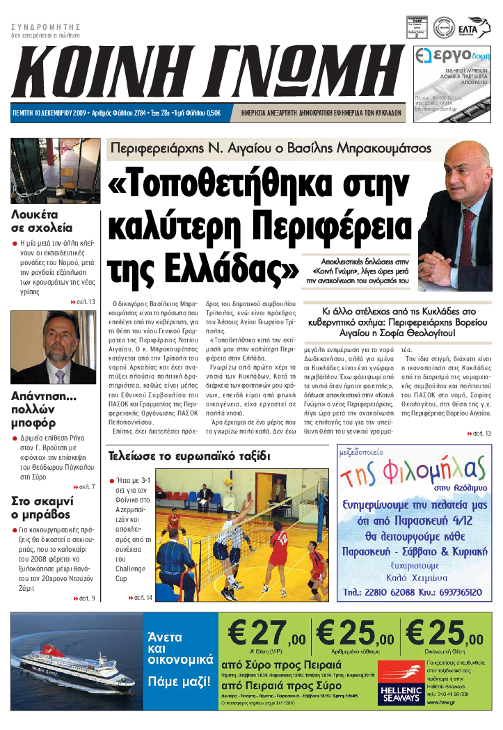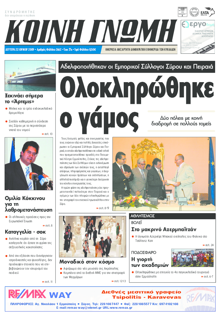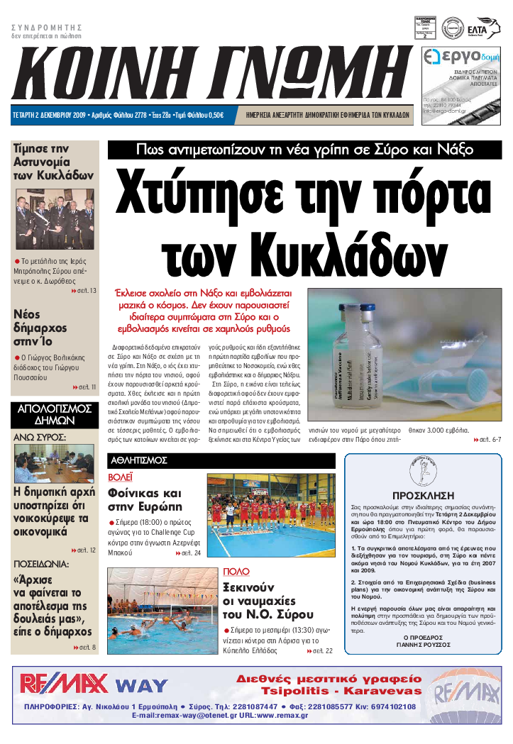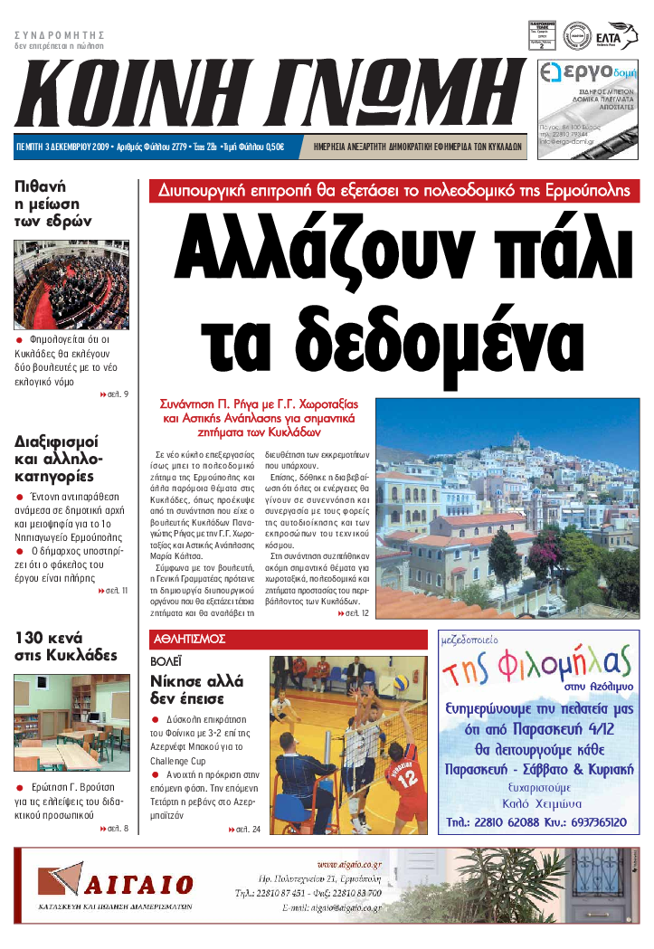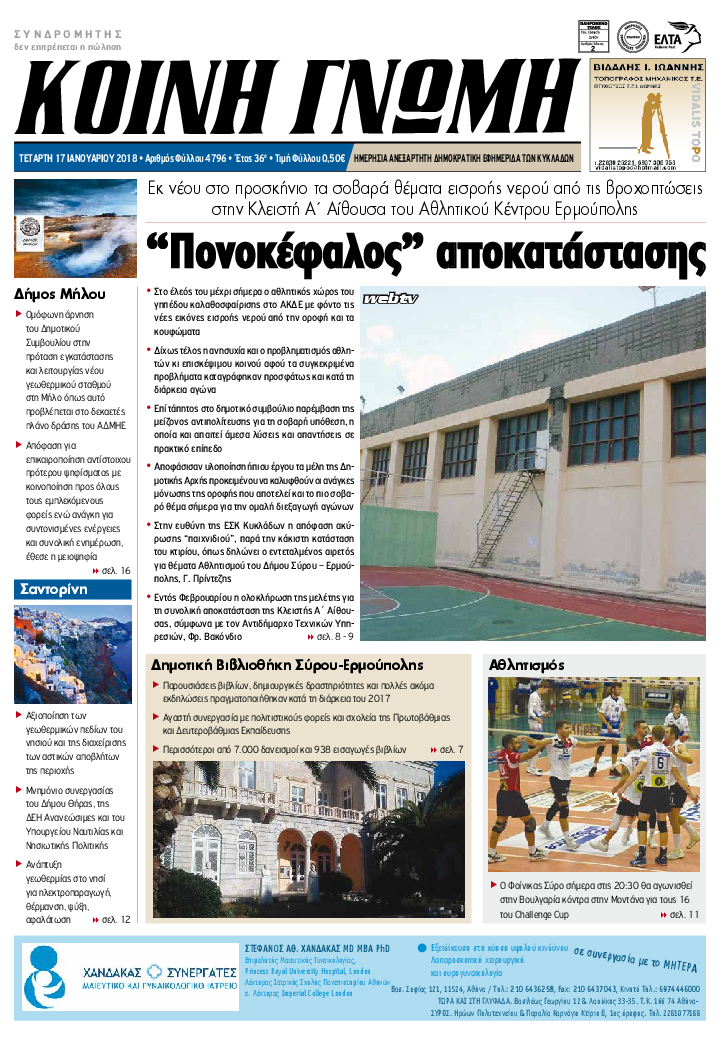 ΚΟΙΝΗ ΓΝΩΜΗ ΚΟΙΝΗ ΓΝΩΜΗ Ημερησια Εφημεριδα των Κυκλαδων