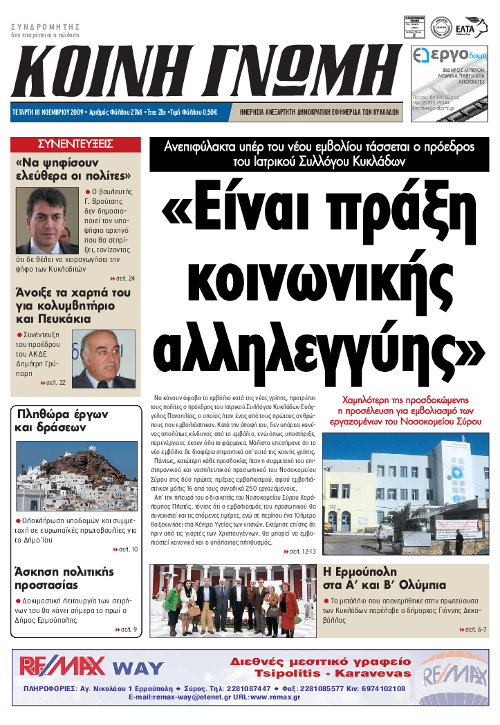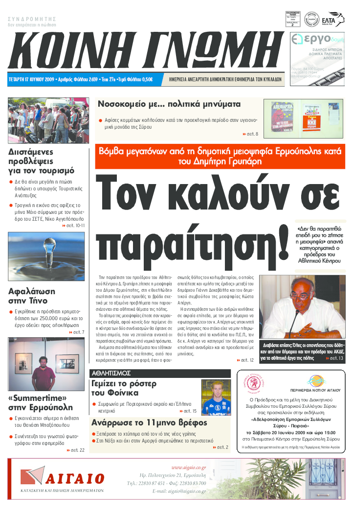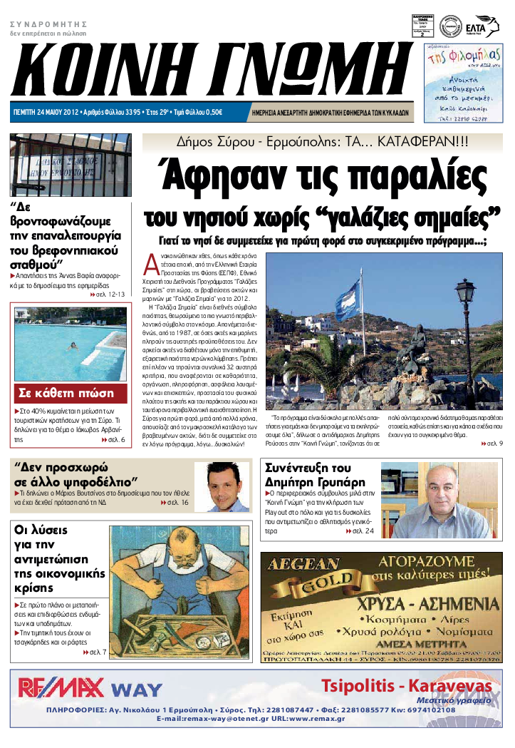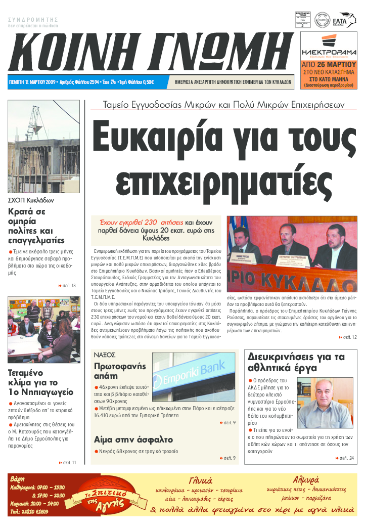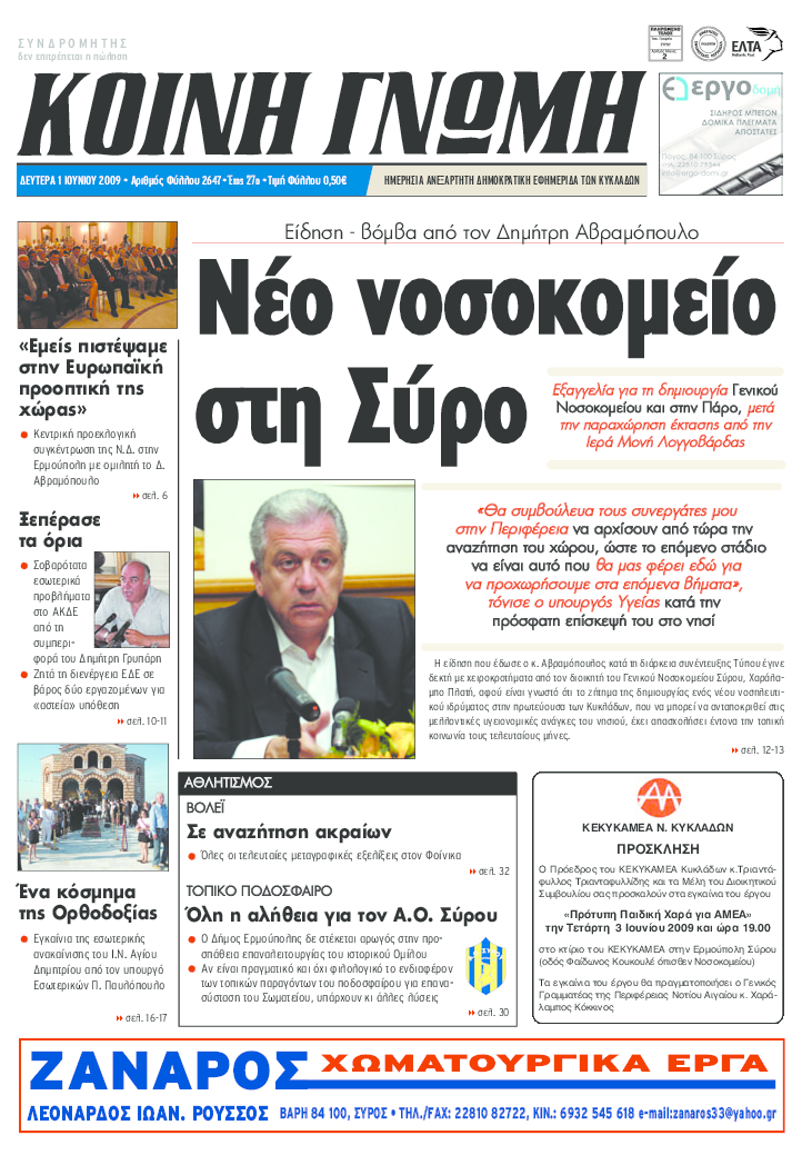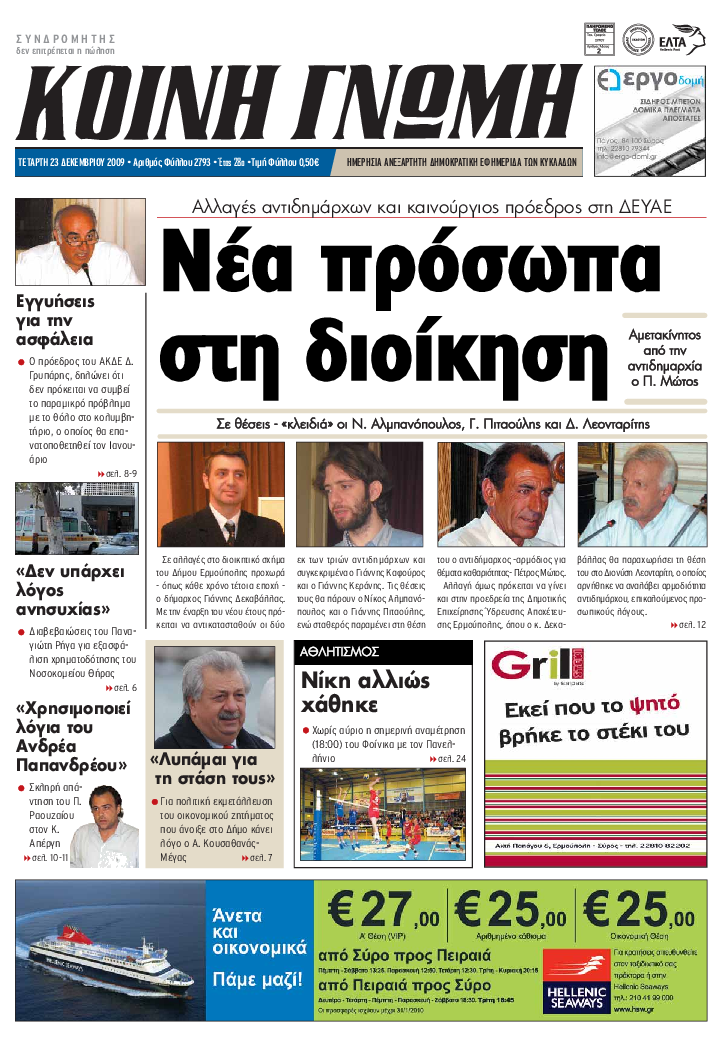 ΚΟΙΝΗ ΓΝΩΜΗ ΚΟΙΝΗ ΓΝΩΜΗ Ημερησια Εφημεριδα των Κυκλαδων