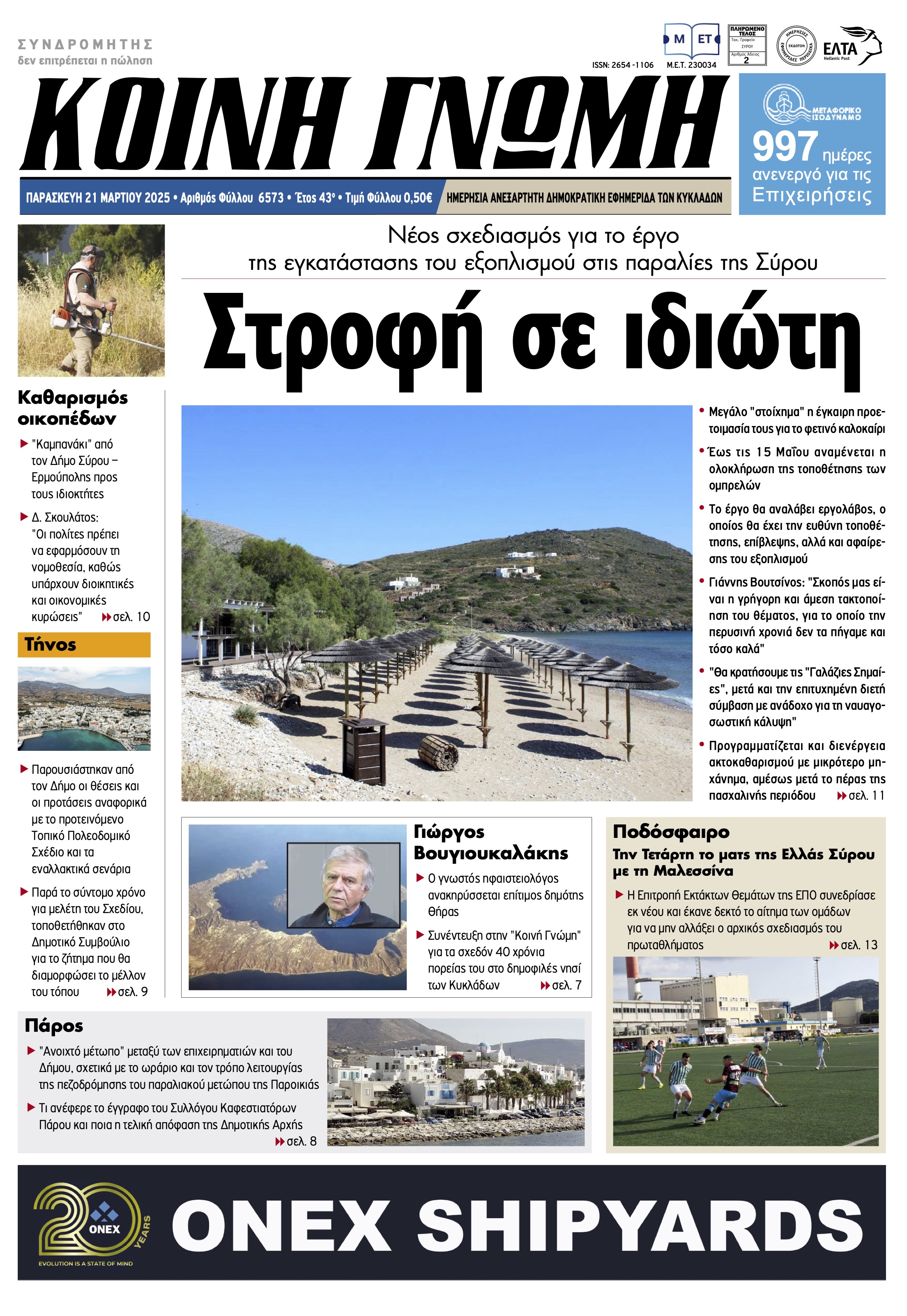ΚΟΙΝΗ ΓΝΩΜΗ ΚΟΙΝΗ ΓΝΩΜΗ Ημερησια Εφημεριδα των Κυκλαδων