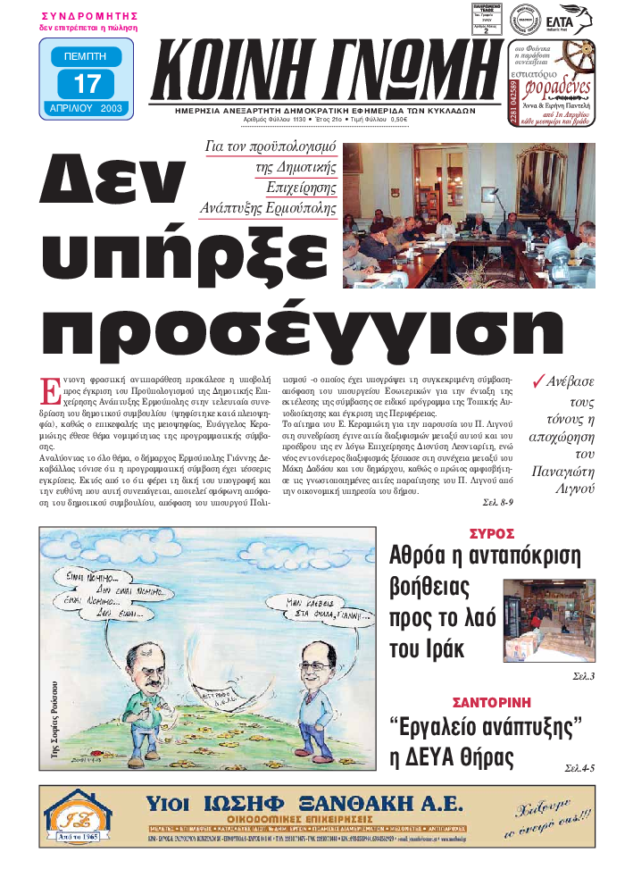 ΚΟΙΝΗ ΓΝΩΜΗ ΚΟΙΝΗ ΓΝΩΜΗ Ημερησια Εφημεριδα των Κυκλαδων