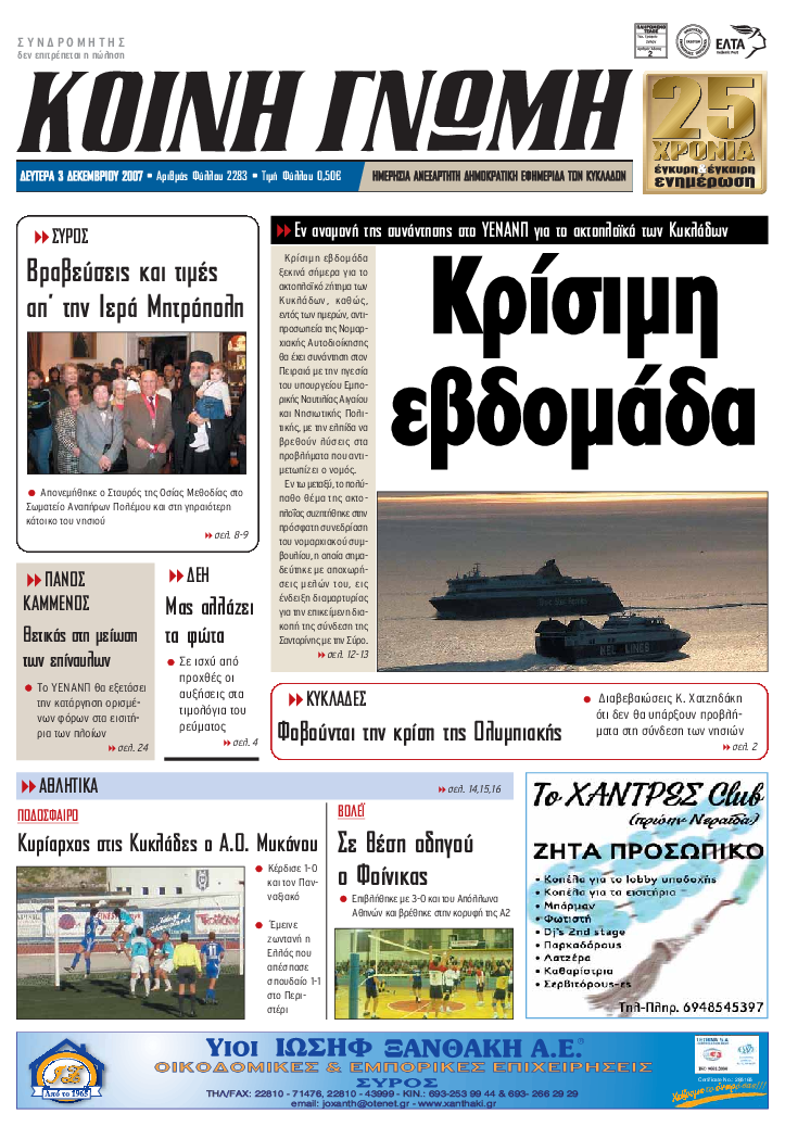 Ημερησια Εφημεριδα των Κυκλαδων