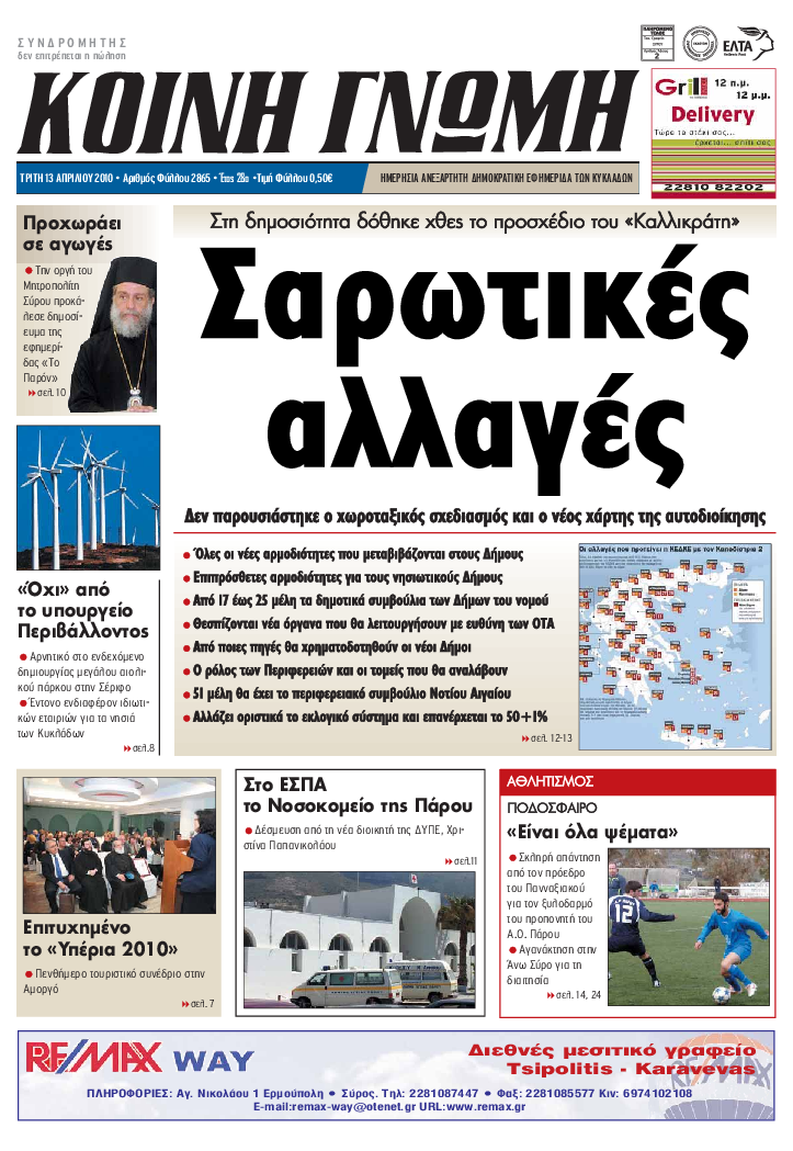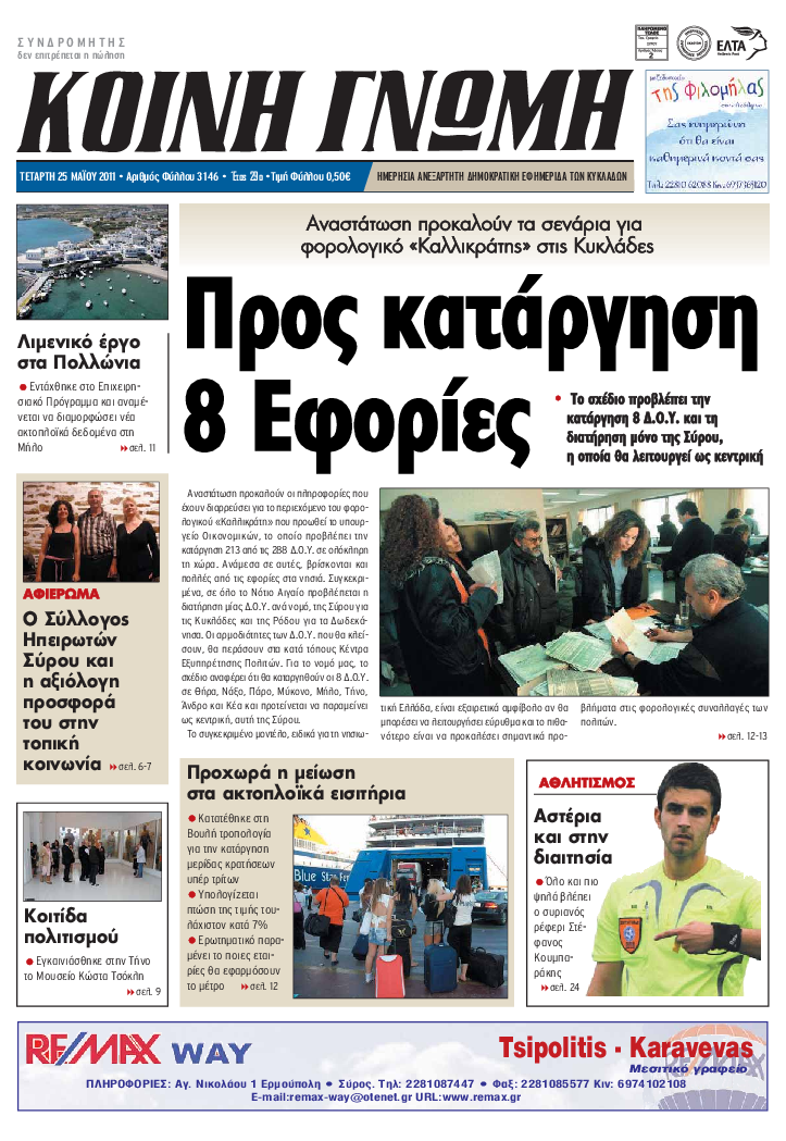 ΚΟΙΝΗ ΓΝΩΜΗ ΚΟΙΝΗ ΓΝΩΜΗ Ημερησια Εφημεριδα των Κυκλαδων