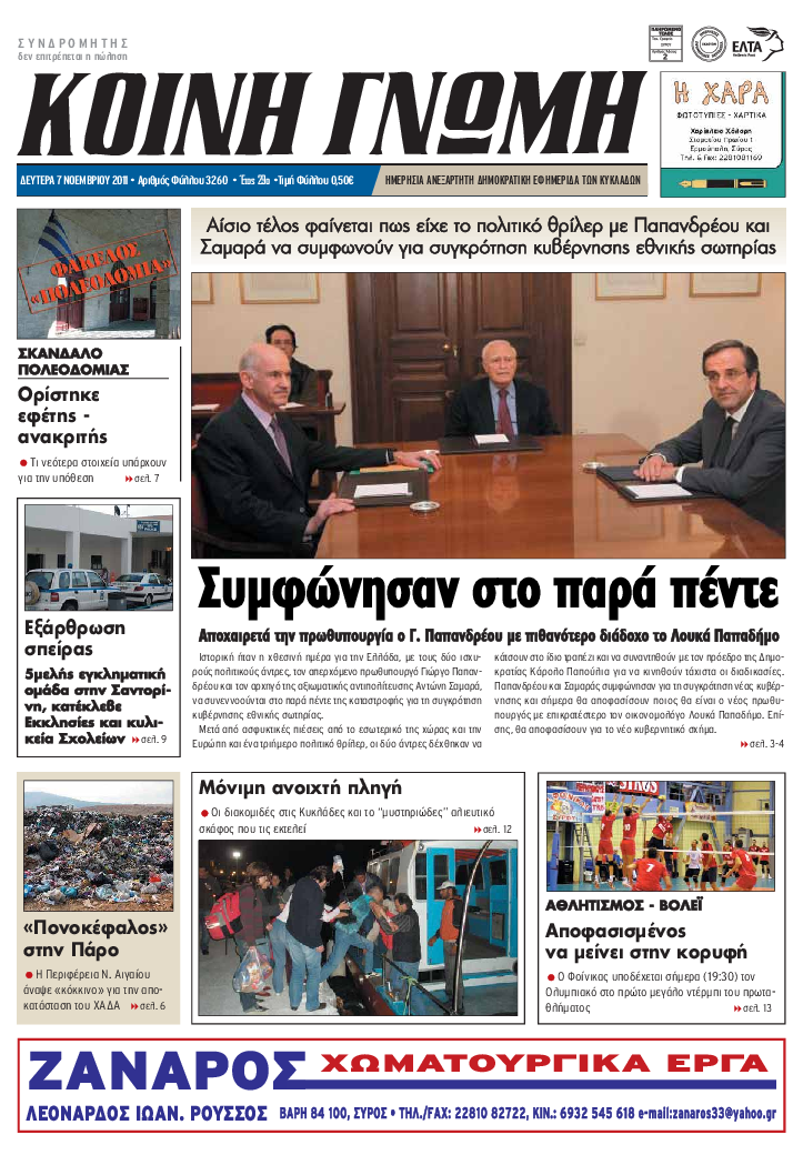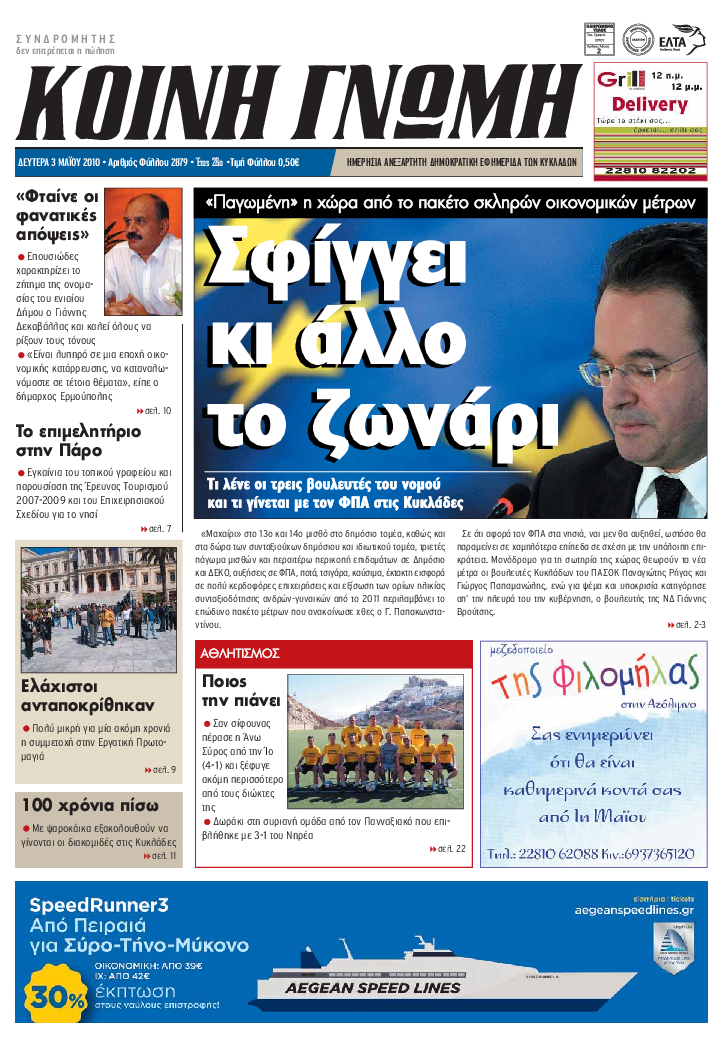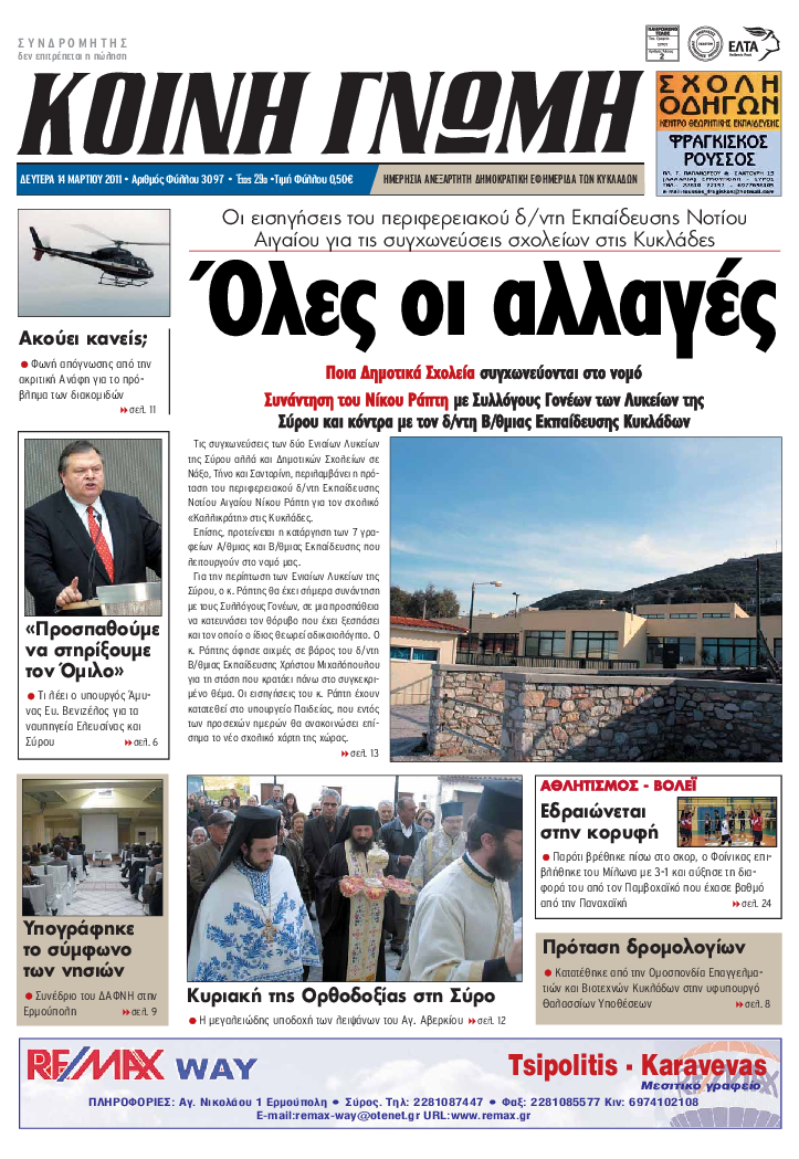ΚΟΙΝΗ ΓΝΩΜΗ ΚΟΙΝΗ ΓΝΩΜΗ Ημερησια Εφημεριδα των Κυκλαδων