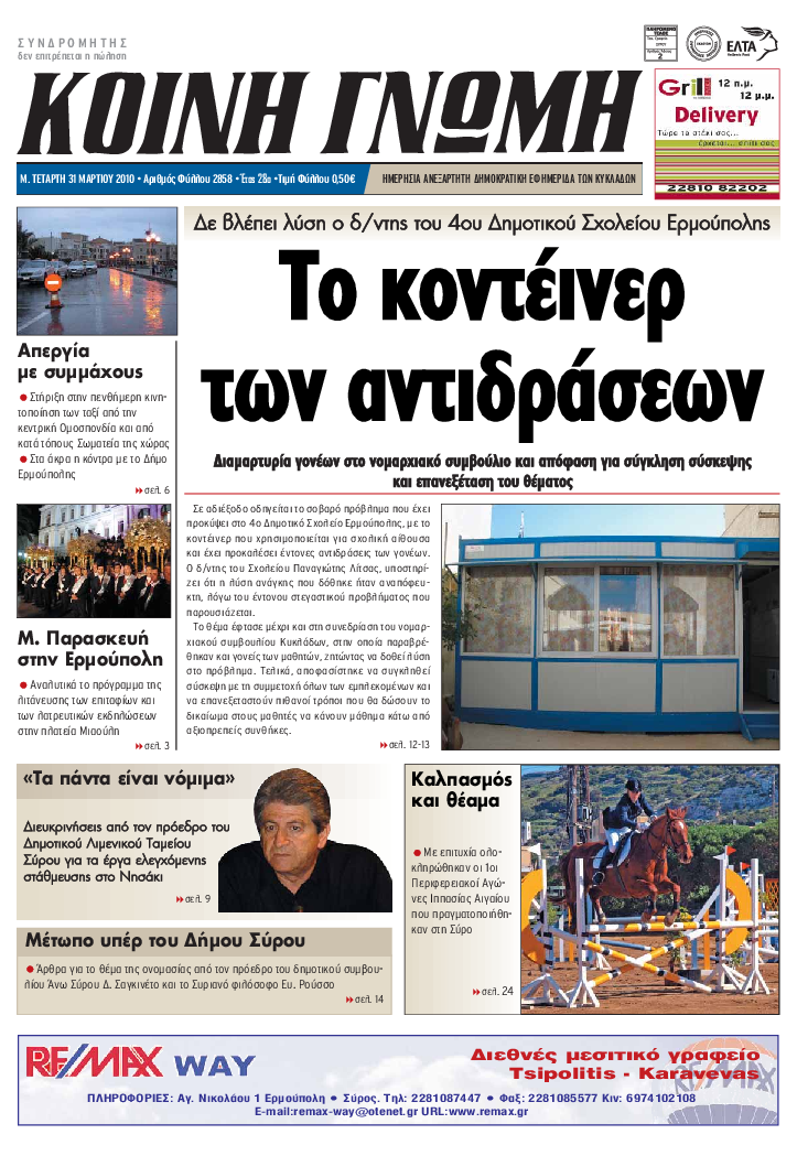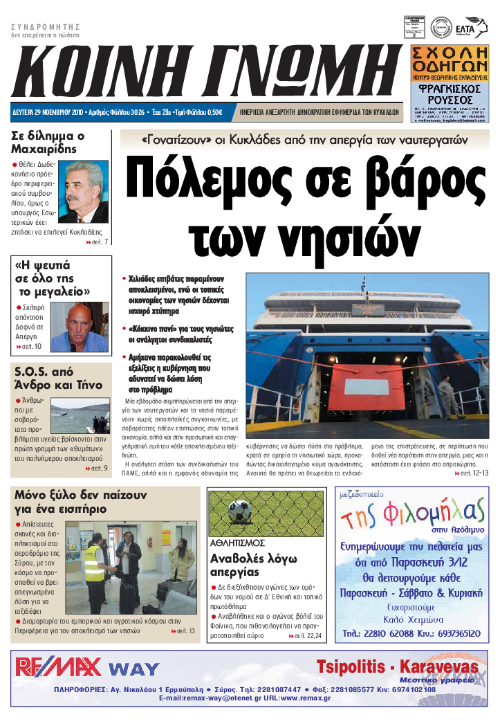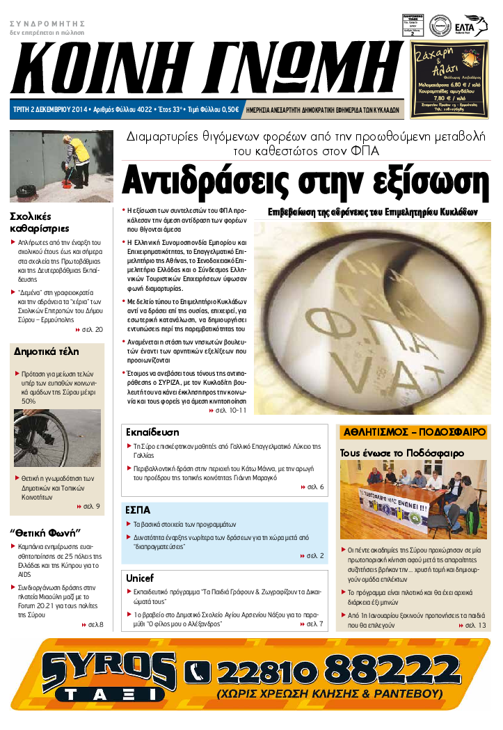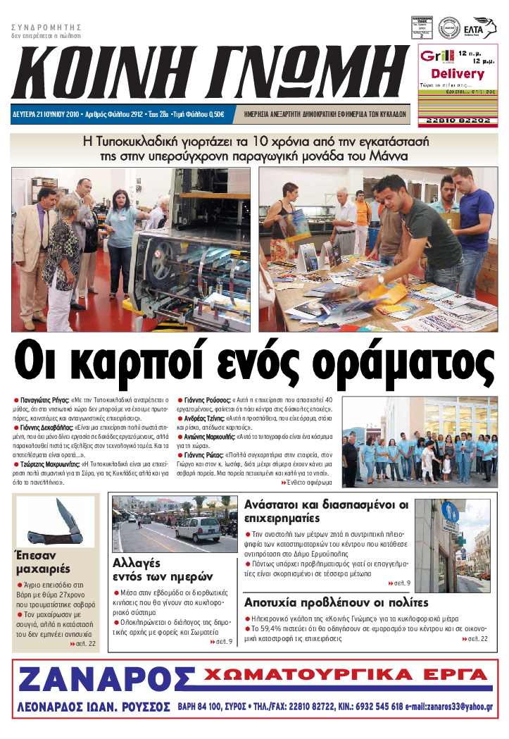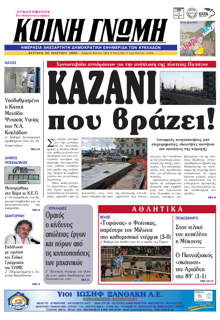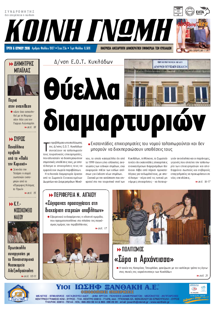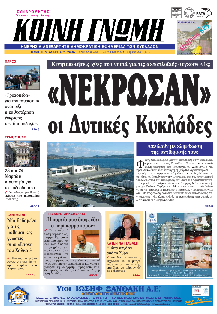 ΚΟΙΝΗ ΓΝΩΜΗ ΚΟΙΝΗ ΓΝΩΜΗ Ημερησια Εφημεριδα των Κυκλαδων