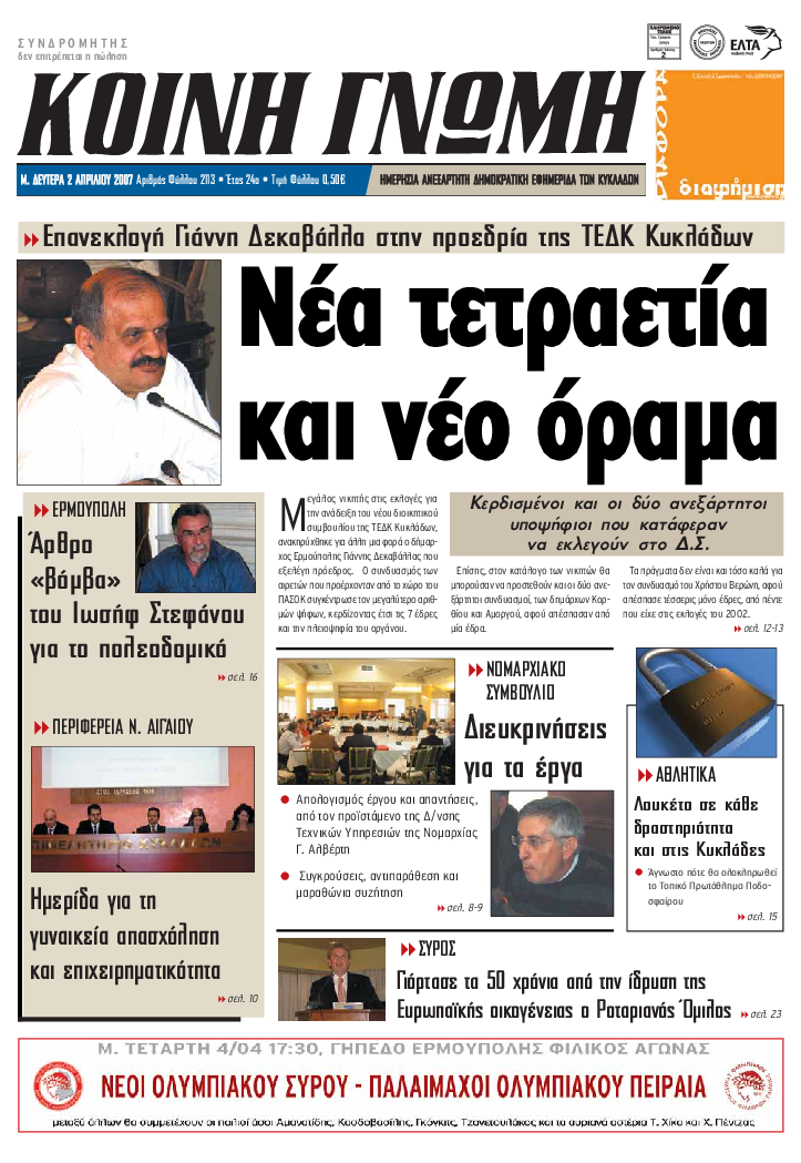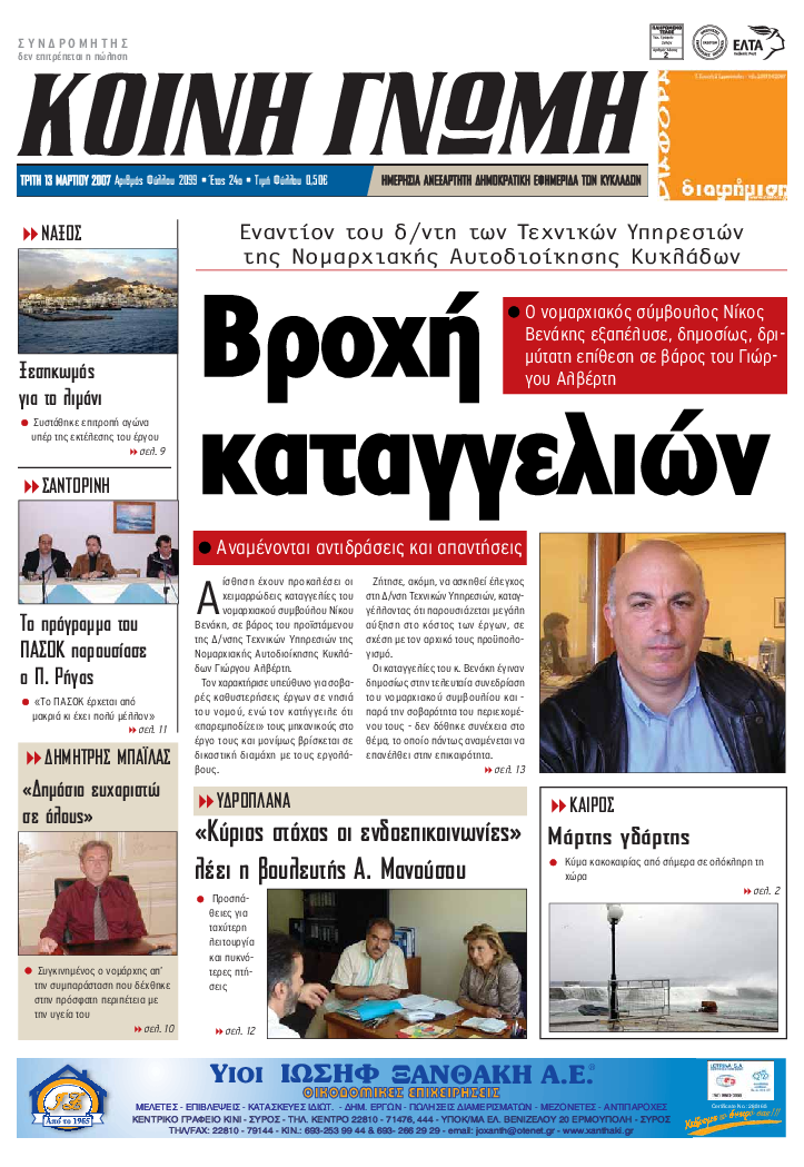ΚΟΙΝΗ ΓΝΩΜΗ ΚΟΙΝΗ ΓΝΩΜΗ Ημερησια Εφημεριδα των Κυκλαδων