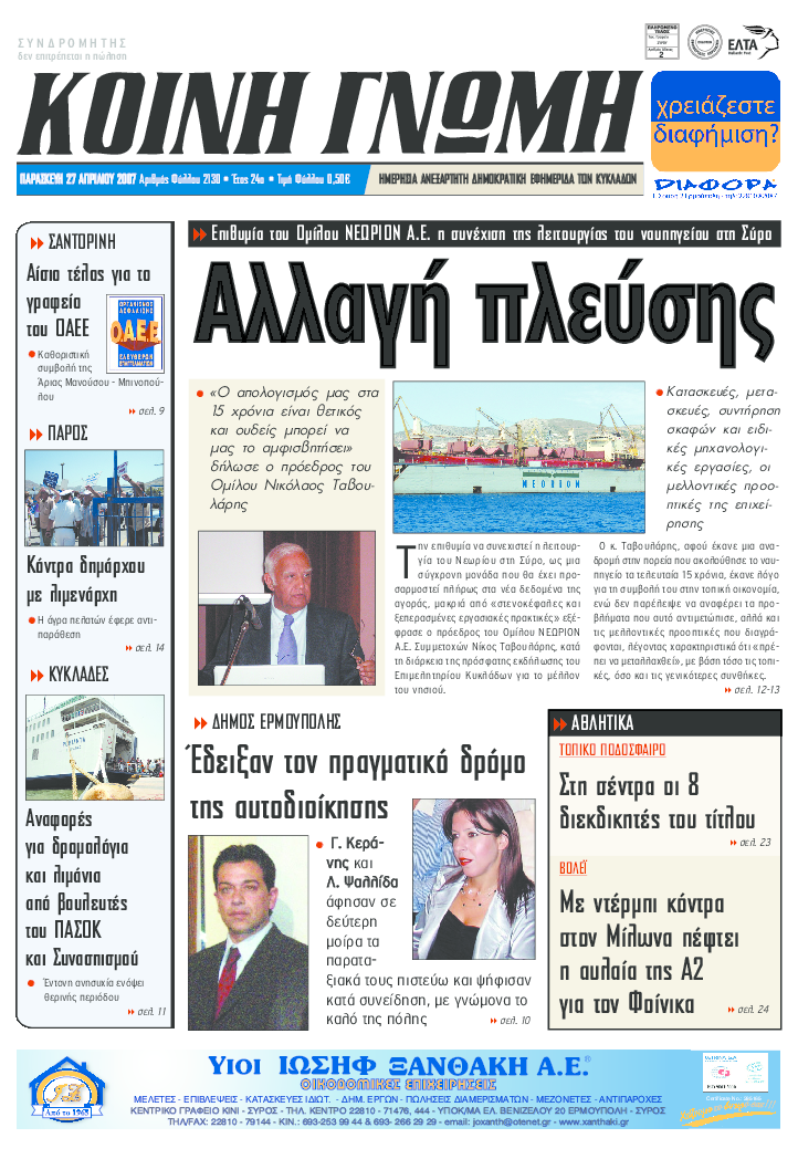 Ημερησια Εφημεριδα των Κυκλαδων