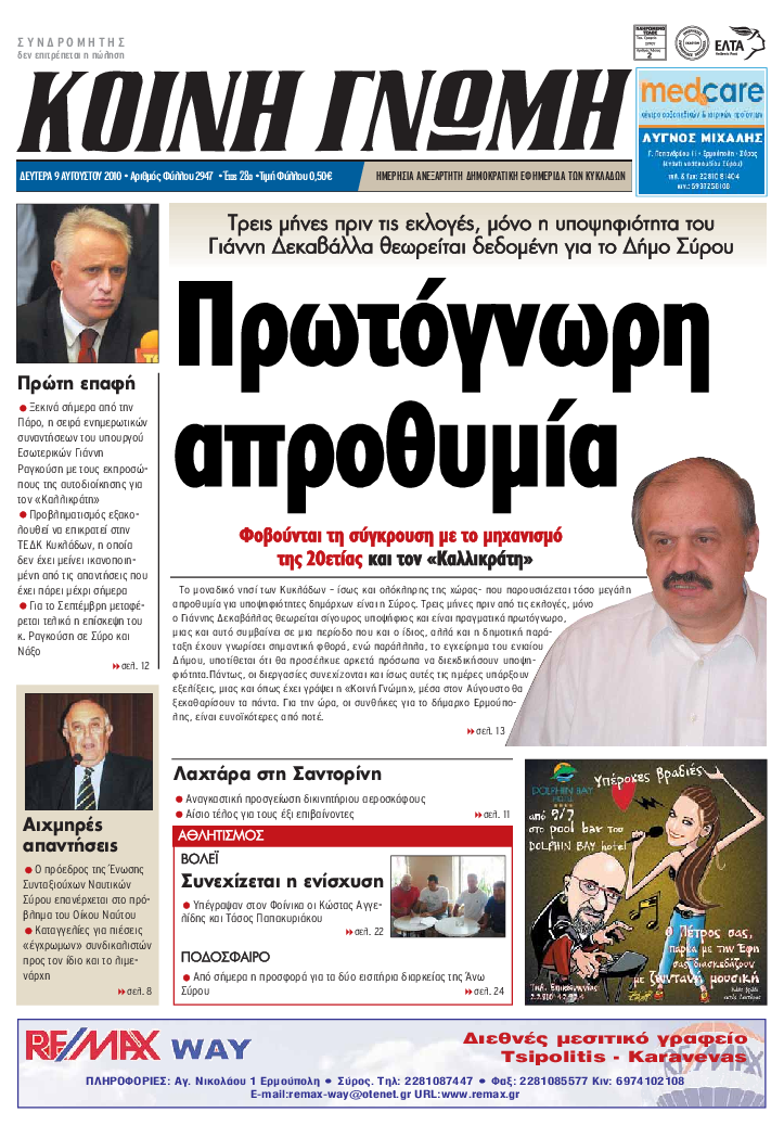 ΚΟΙΝΗ ΓΝΩΜΗ ΚΟΙΝΗ ΓΝΩΜΗ Ημερησια Εφημεριδα των Κυκλαδων