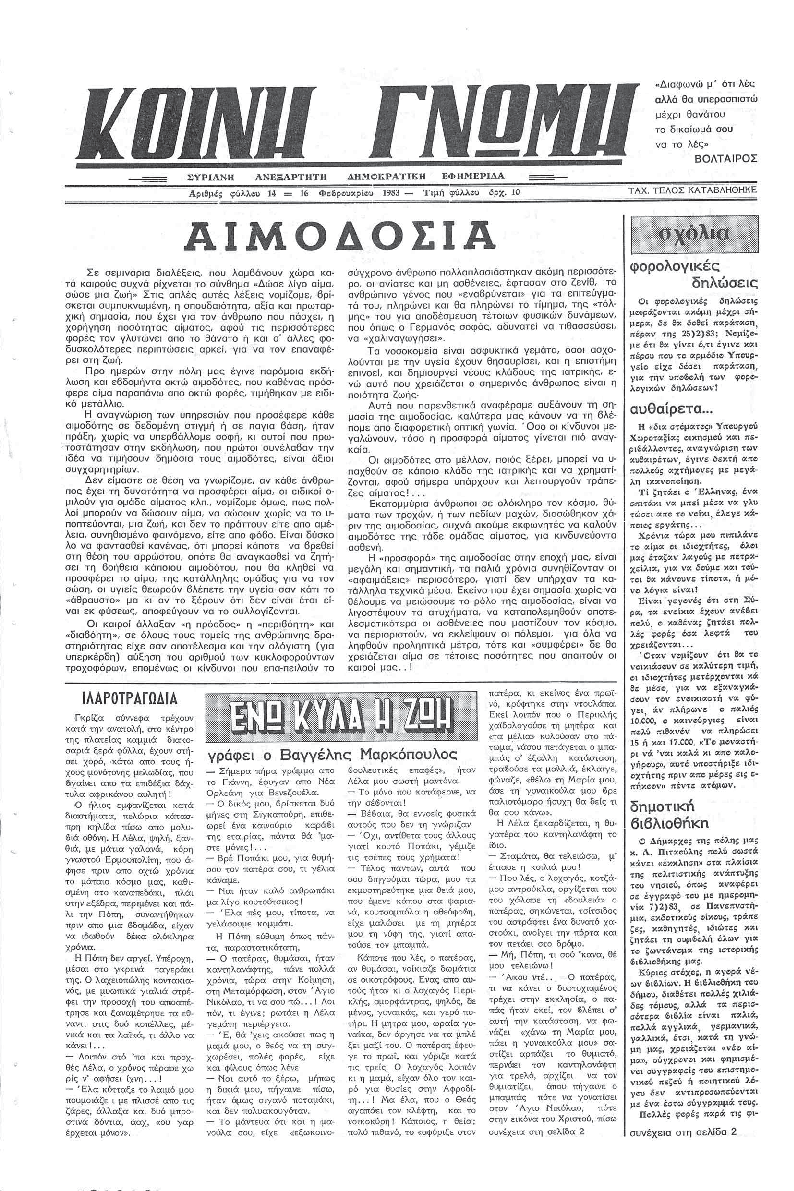 ΚΟΙΝΗ ΓΝΩΜΗ ΚΟΙΝΗ ΓΝΩΜΗ Ημερησια Εφημεριδα των Κυκλαδων