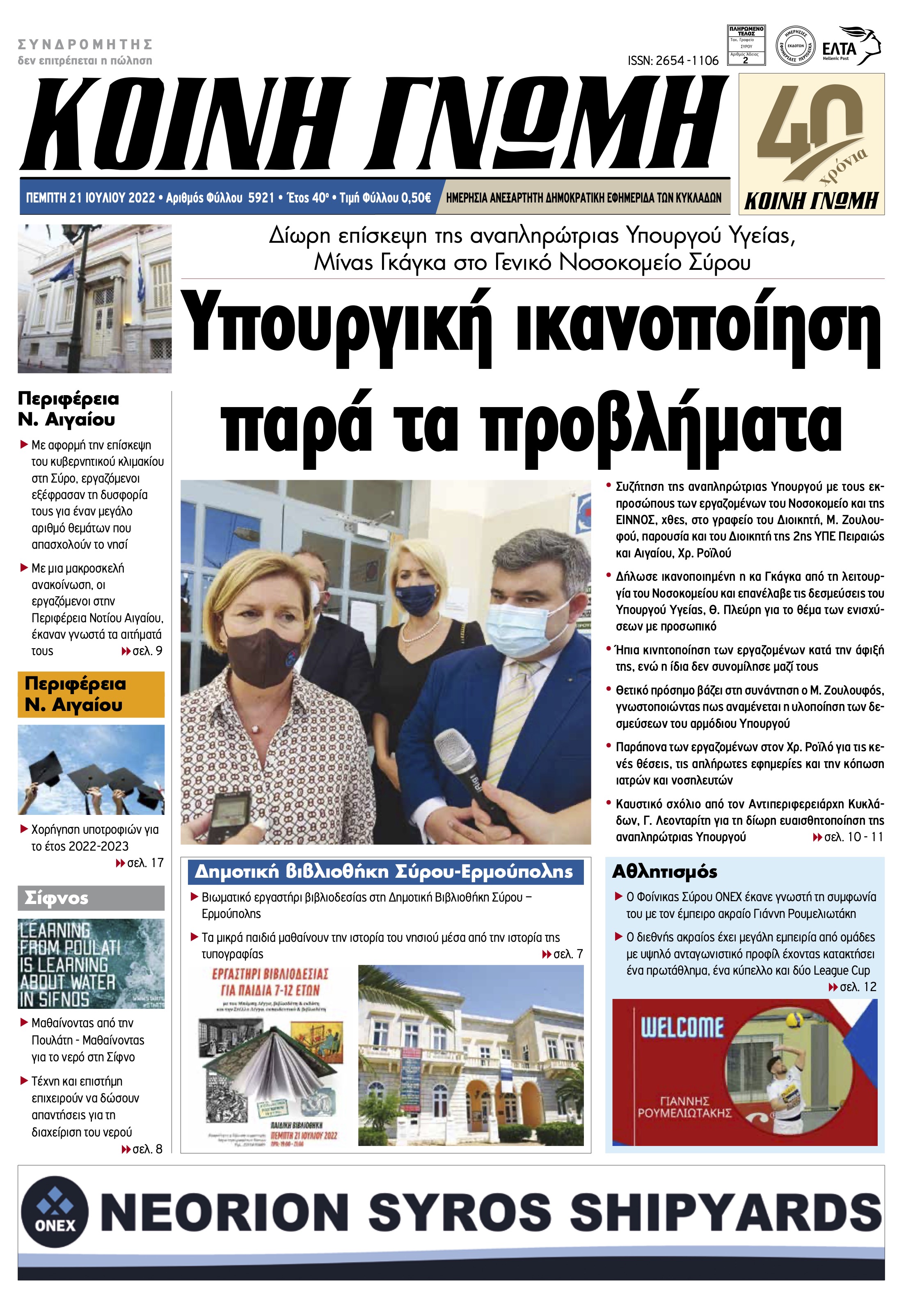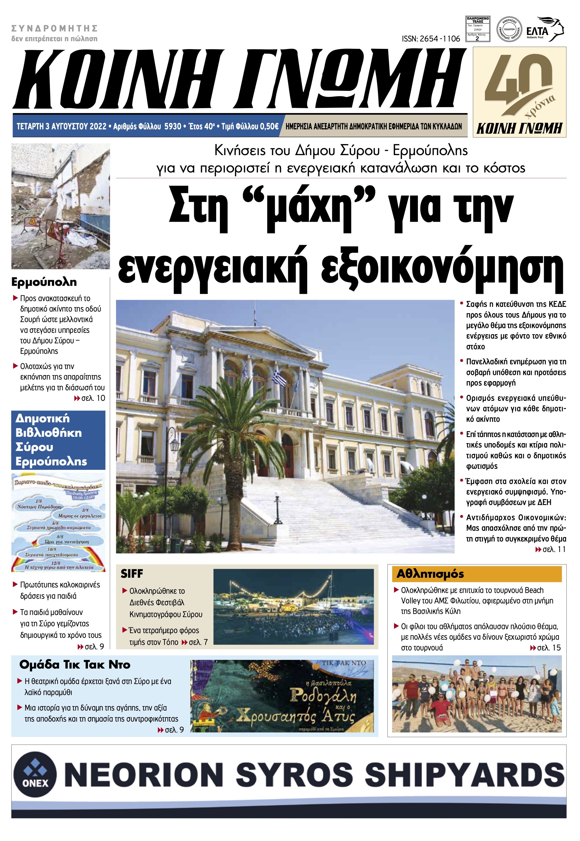 ΚΟΙΝΗ ΓΝΩΜΗ ΚΟΙΝΗ ΓΝΩΜΗ Ημερησια Εφημεριδα των Κυκλαδων