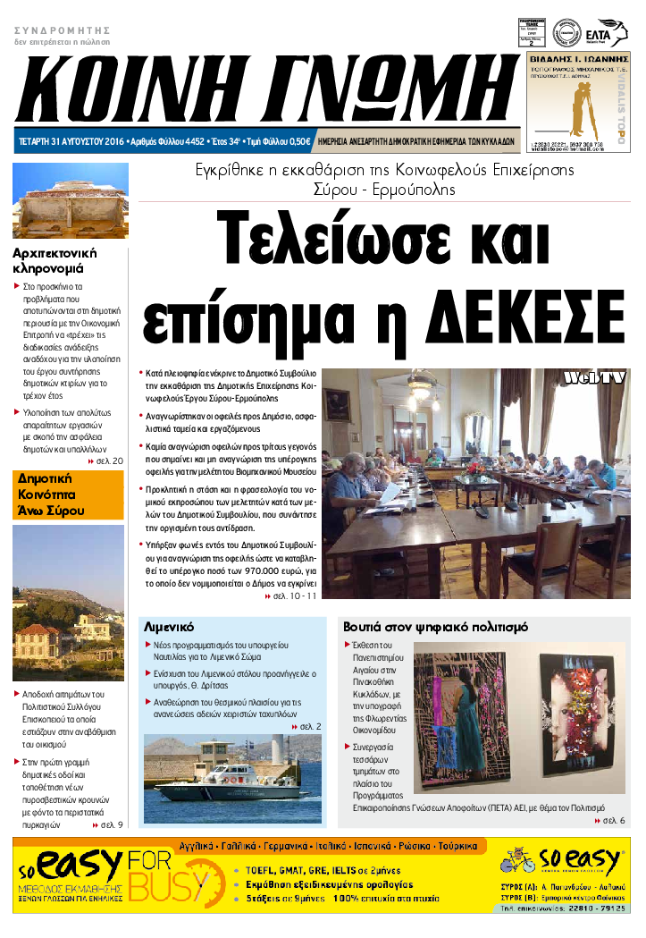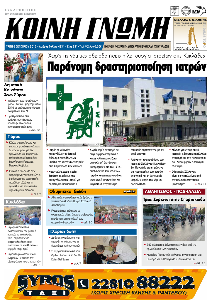ΚΟΙΝΗ ΓΝΩΜΗ ΚΟΙΝΗ ΓΝΩΜΗ Ημερησια Εφημεριδα των Κυκλαδων