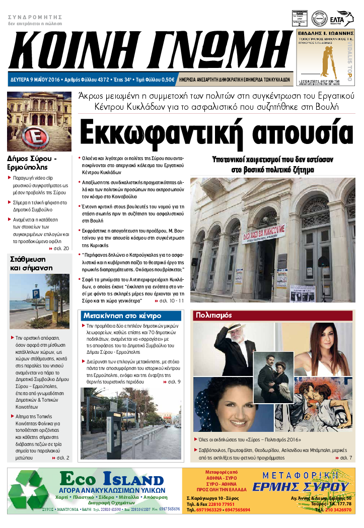 ΚΟΙΝΗ ΓΝΩΜΗ ΚΟΙΝΗ ΓΝΩΜΗ Ημερησια Εφημεριδα των Κυκλαδων